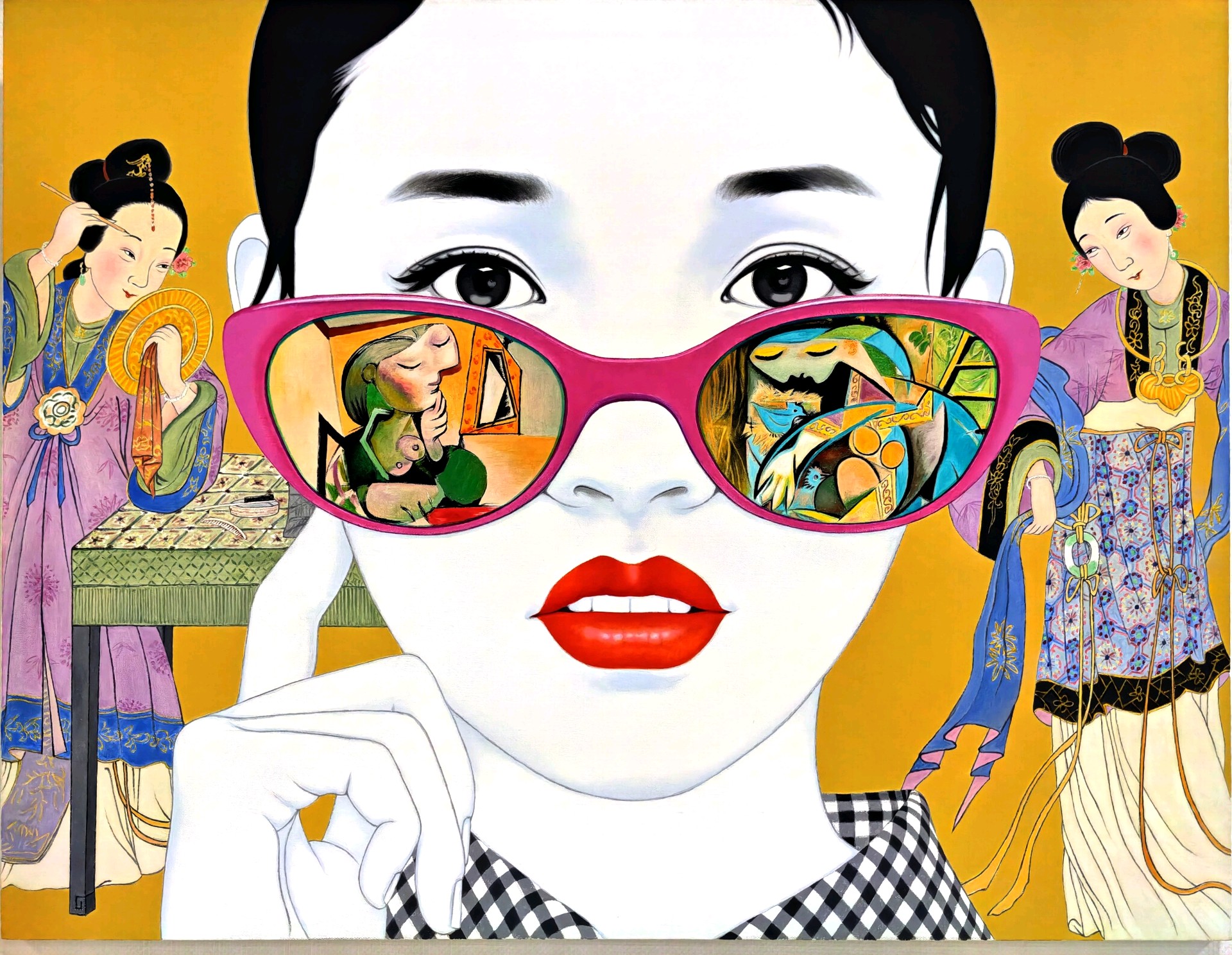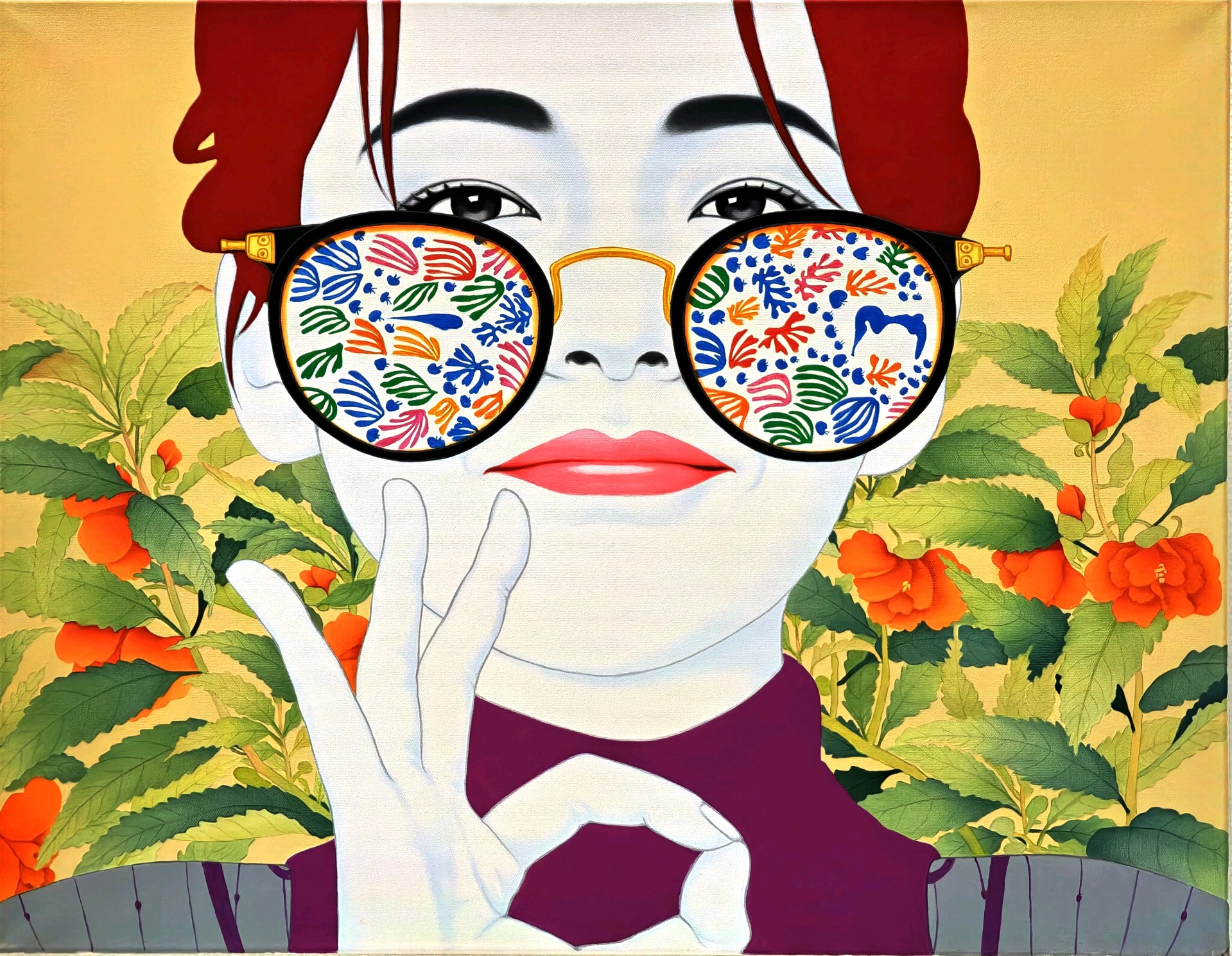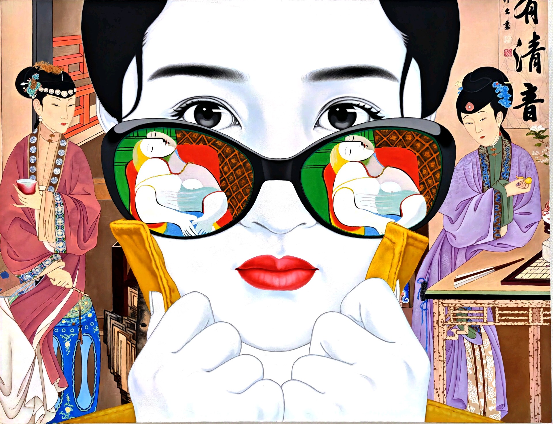 在这个五彩斑斓的世界里, 我透过眼镜看到了另一个世界。 那些抽象的线条和色彩, 仿佛在诉说着一个神秘的故事。