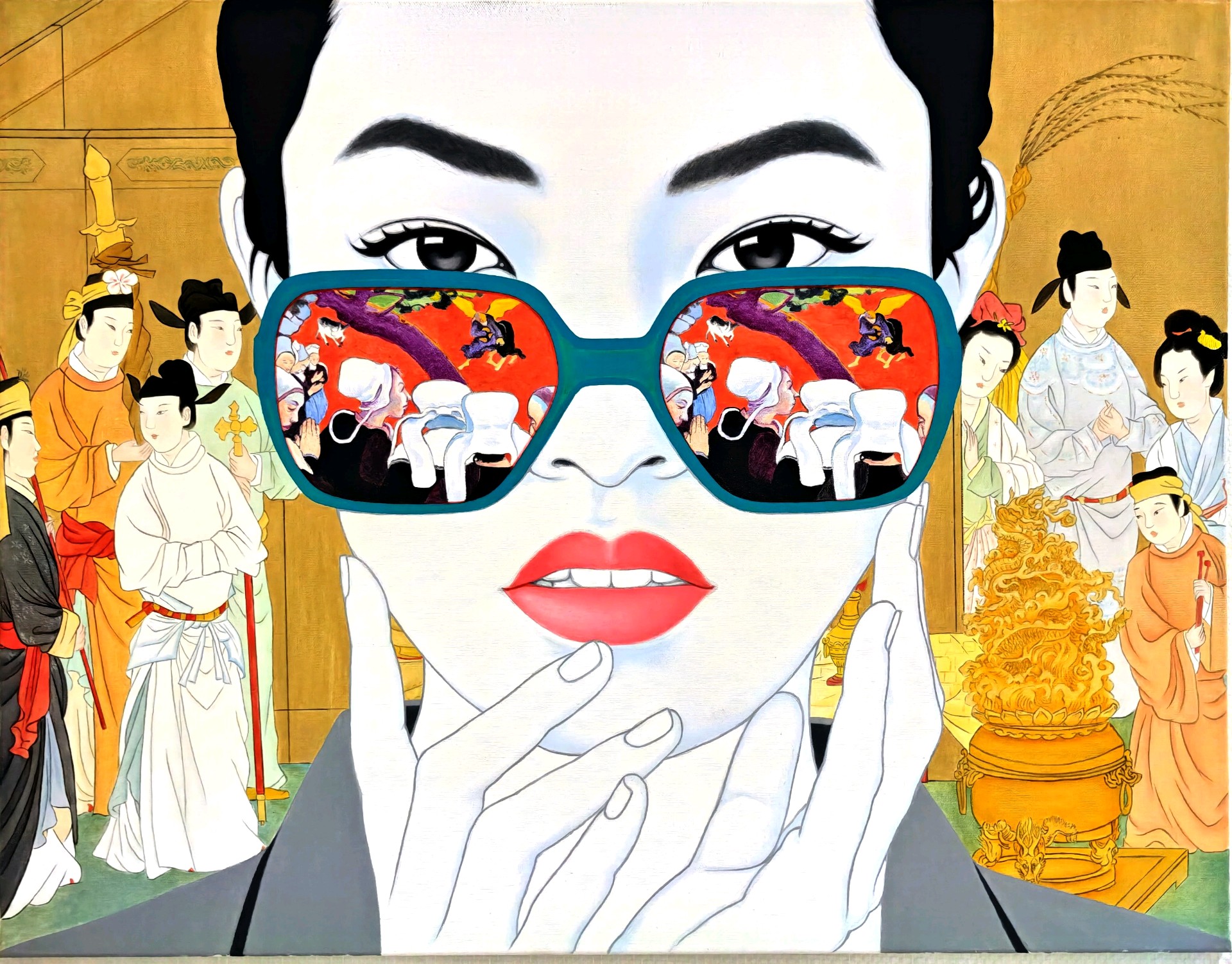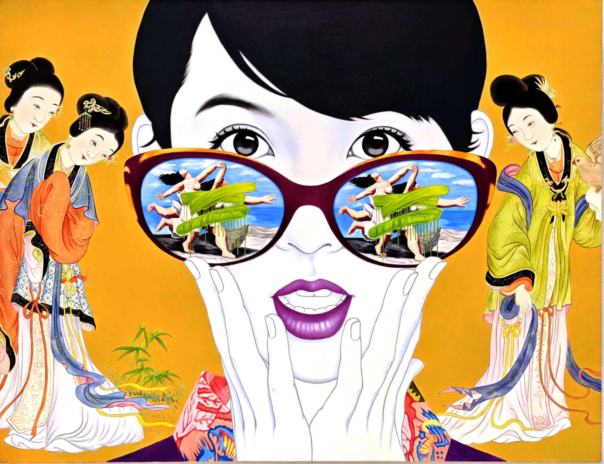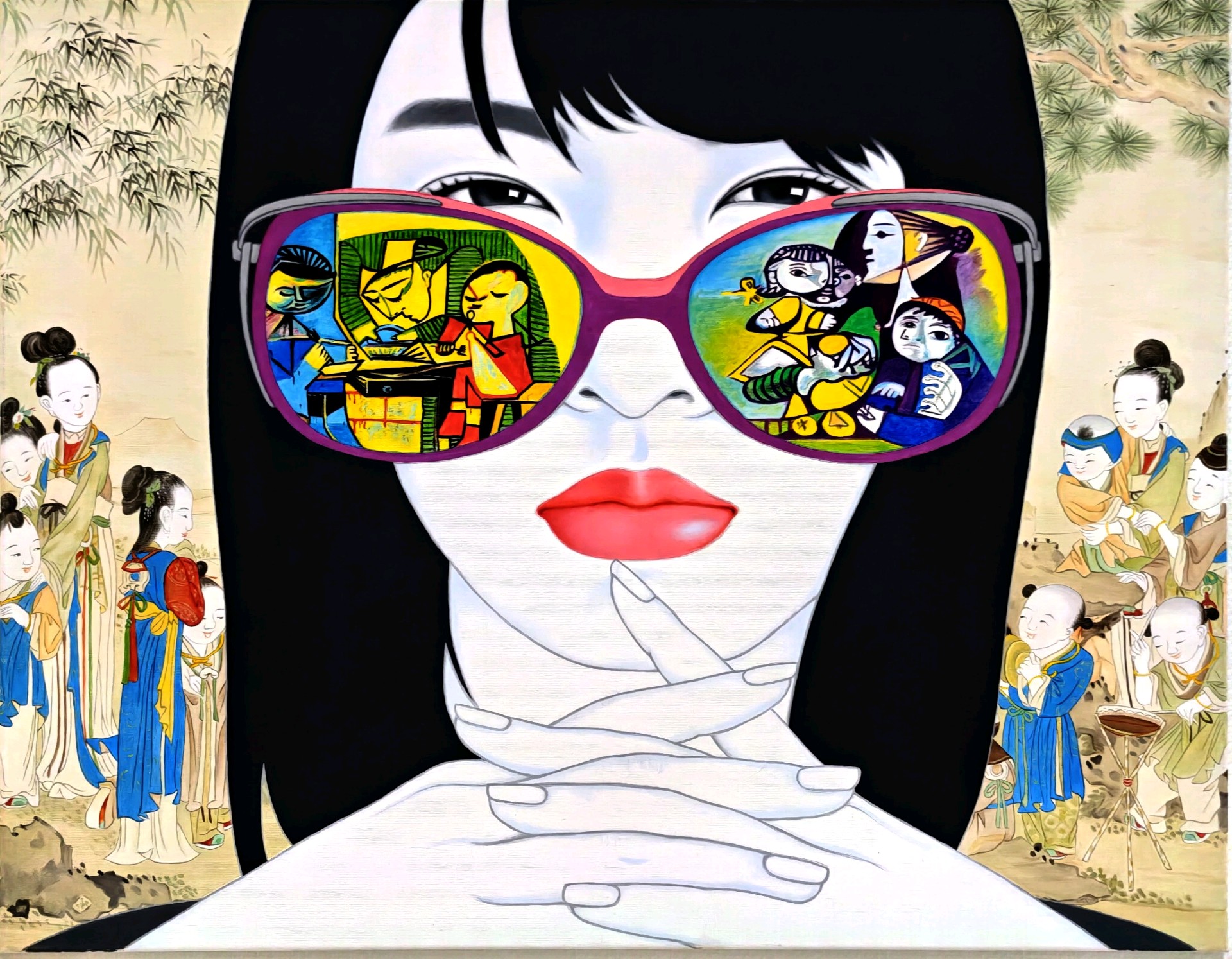 在这个五彩斑斓的世界里, 我透过眼镜看到了另一个世界。 那些抽象的线条和色彩, 仿佛在诉说着一个神秘的故事。