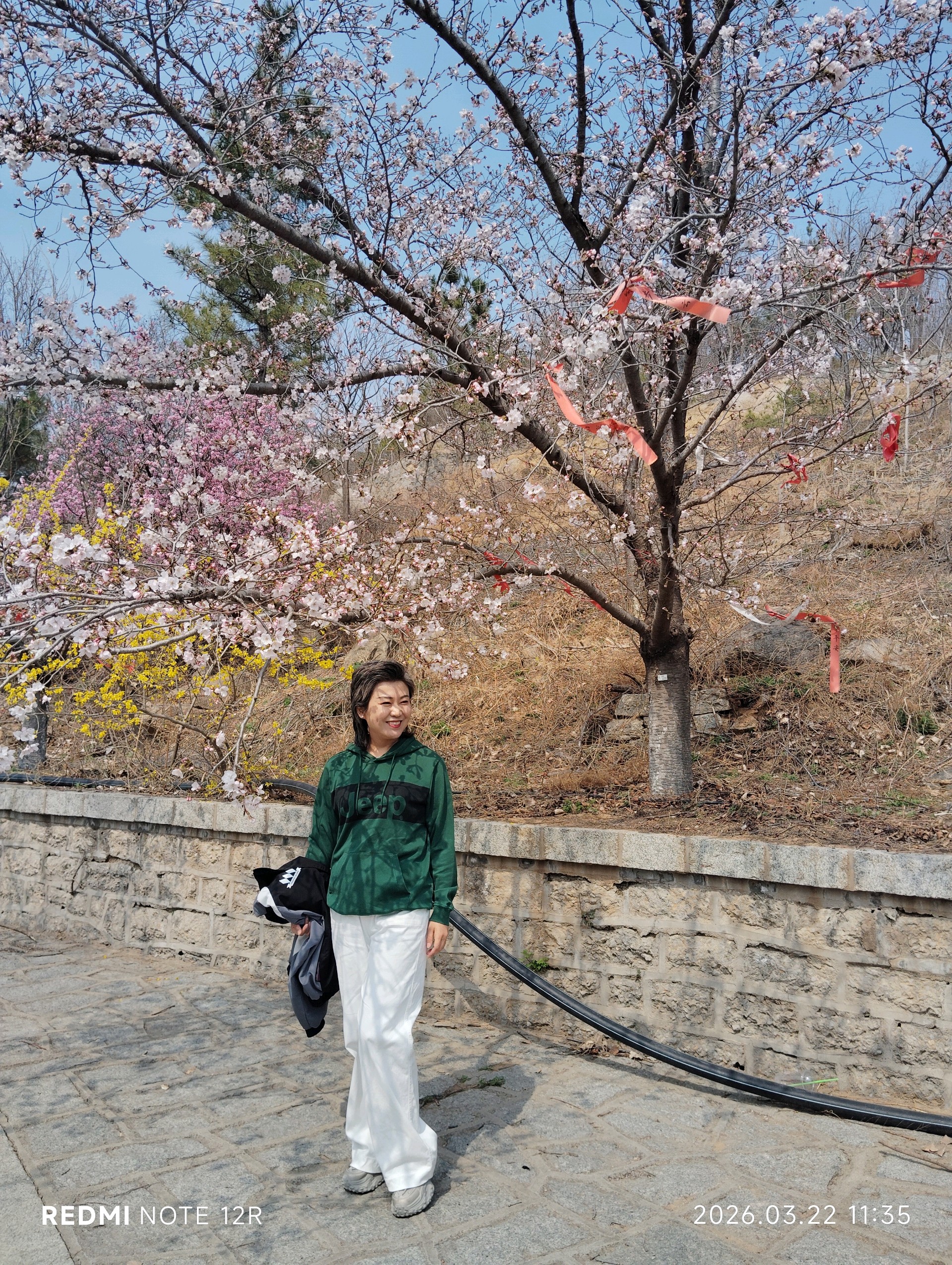 在济南乘坐G6909次列车,经济南东中转,到达邹平樱花山风景区南门(正门),已经是9时10分(3月22日),扫码验卷,樱花阁广场(樱花城)的“春满邹平,樱启新程”的开幕式,已经启动——