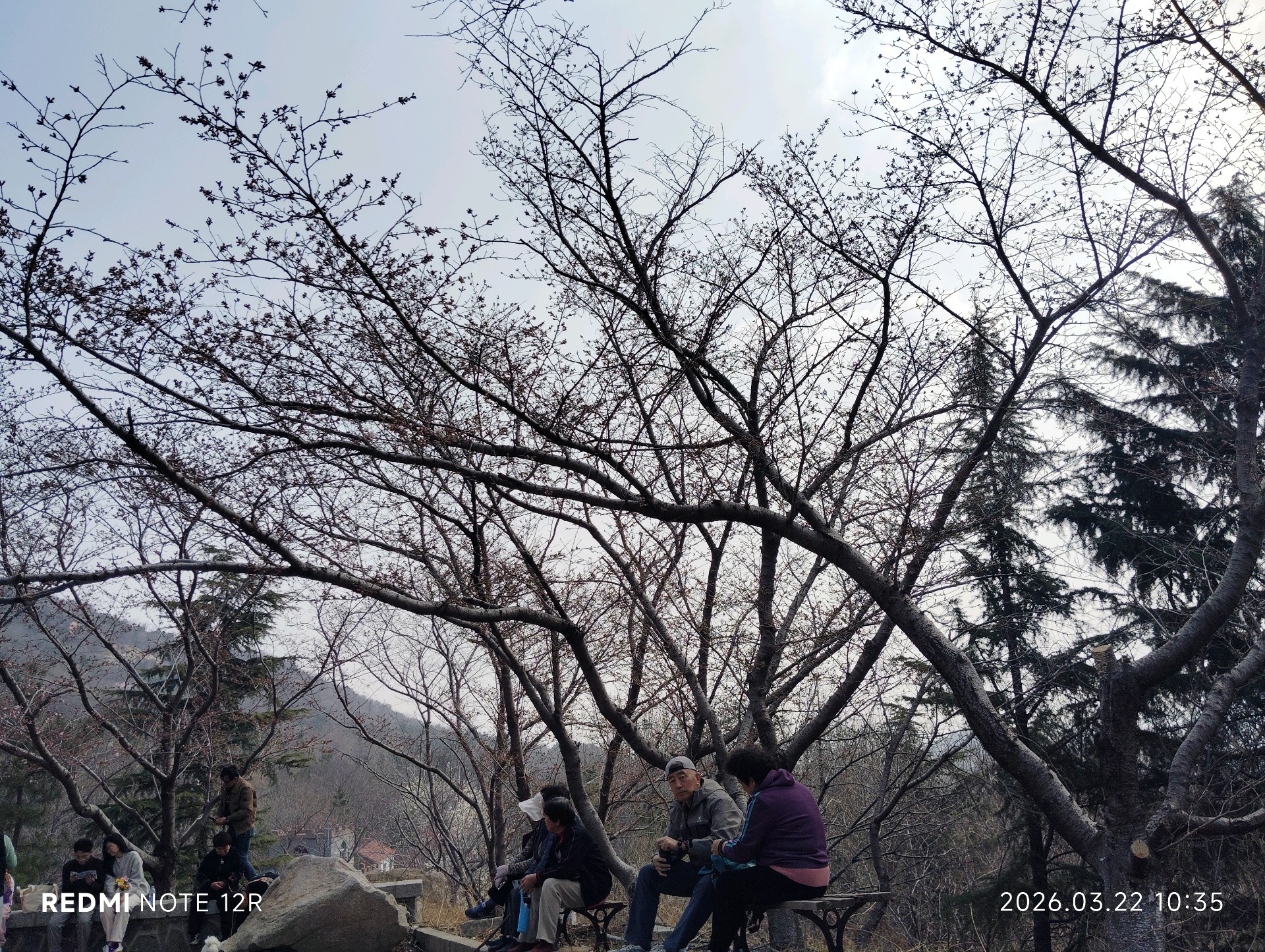 山风吹过,满山遍野的樱花树枝,一片一片的粉白,却难以见到,姹紫嫣红。