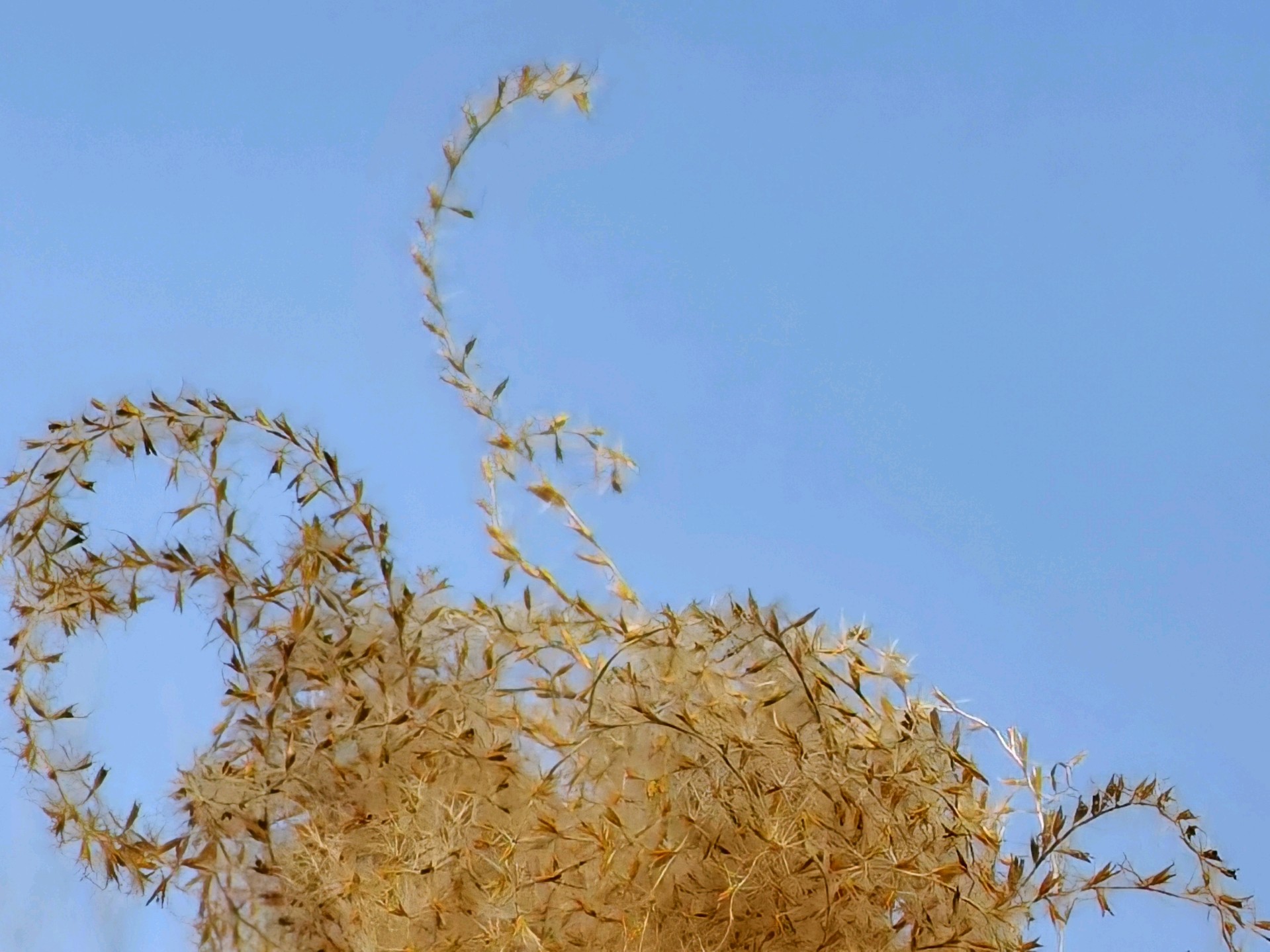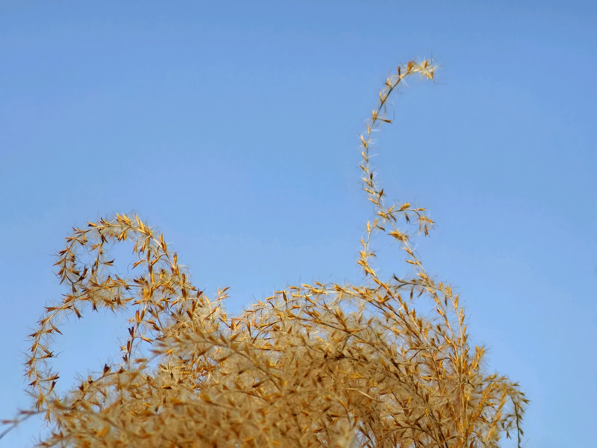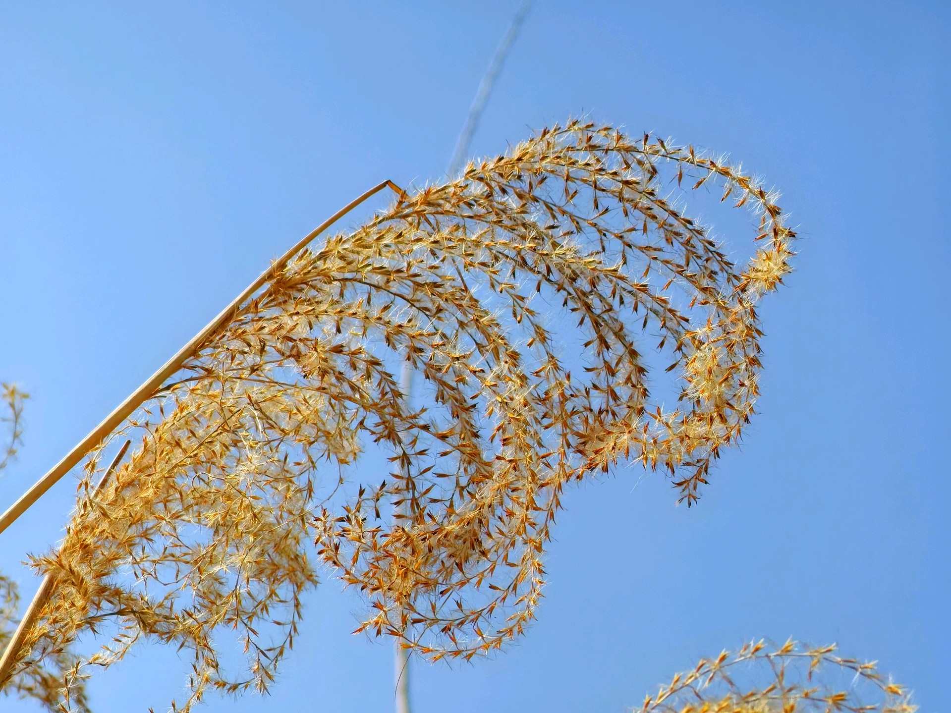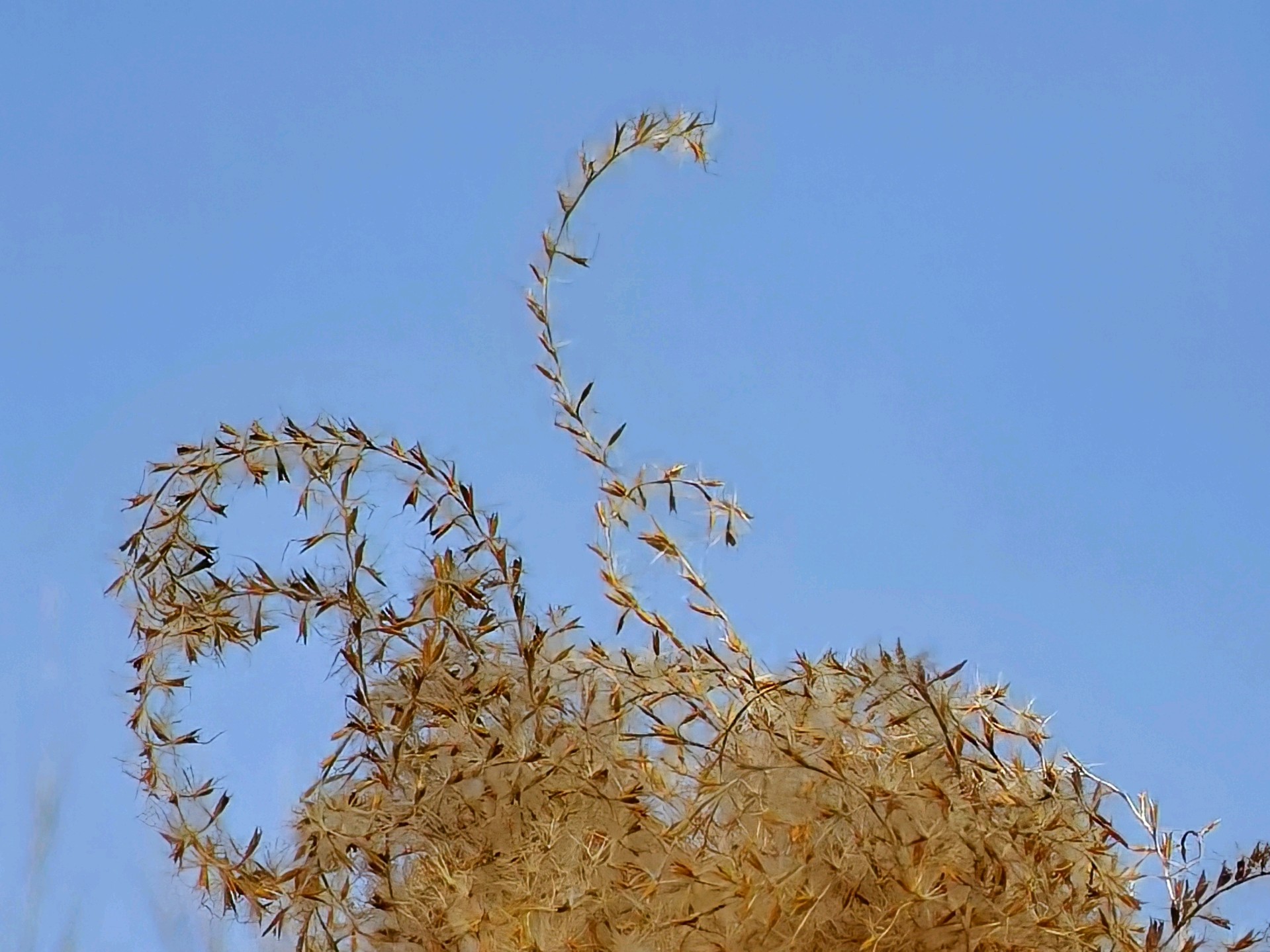 澄澈如洗的蓝天是最干净的画布,晴空下的金芒诗篇,而这丛芦苇便是风写下的温柔诗行。它们褪去了春夏的鲜绿,换上一身暖金色的绒羽,在晴空里舒展着卷曲的穗芒,像无数细碎的星光落进了人间。阳光穿过蓬松的花穗,把每一根纤弱的茎秆都镀上了暖亮的轮廓,让枯荣的质感也变得温柔而有力量。风过时,金浪与蓝天轻轻相拥,没有喧嚣,只有一种沉静又治愈的美。这是属于季节的浪漫,也是自然写给城市的温柔情书,让寻常的草木,在晴空下也成了动人的风景。