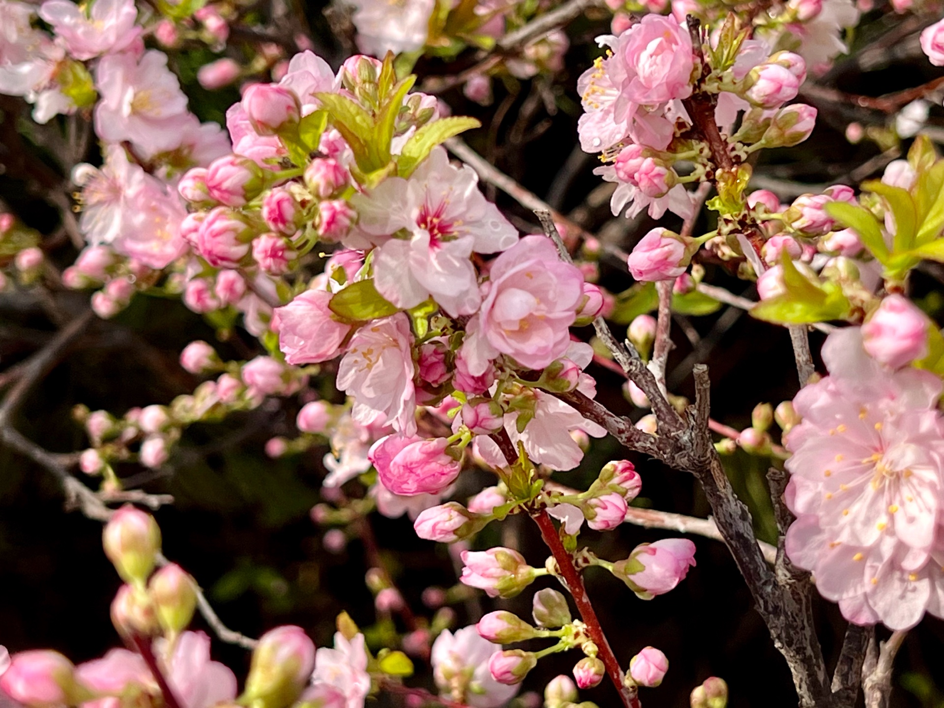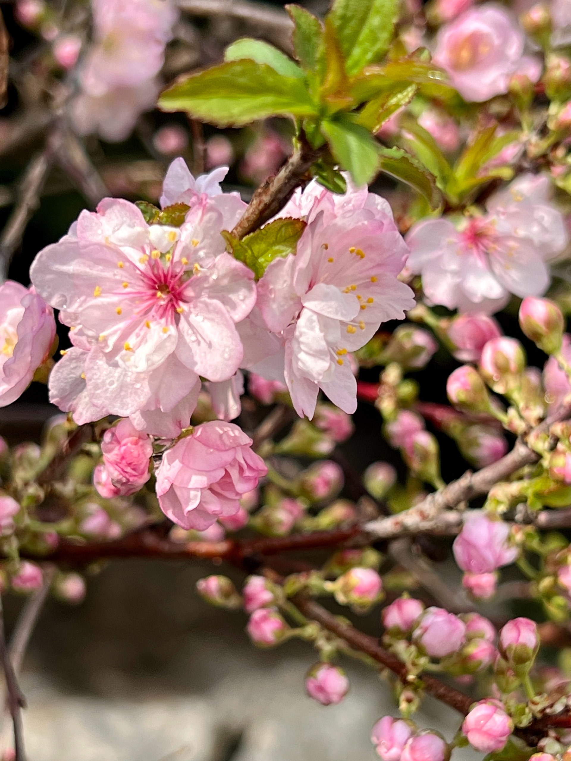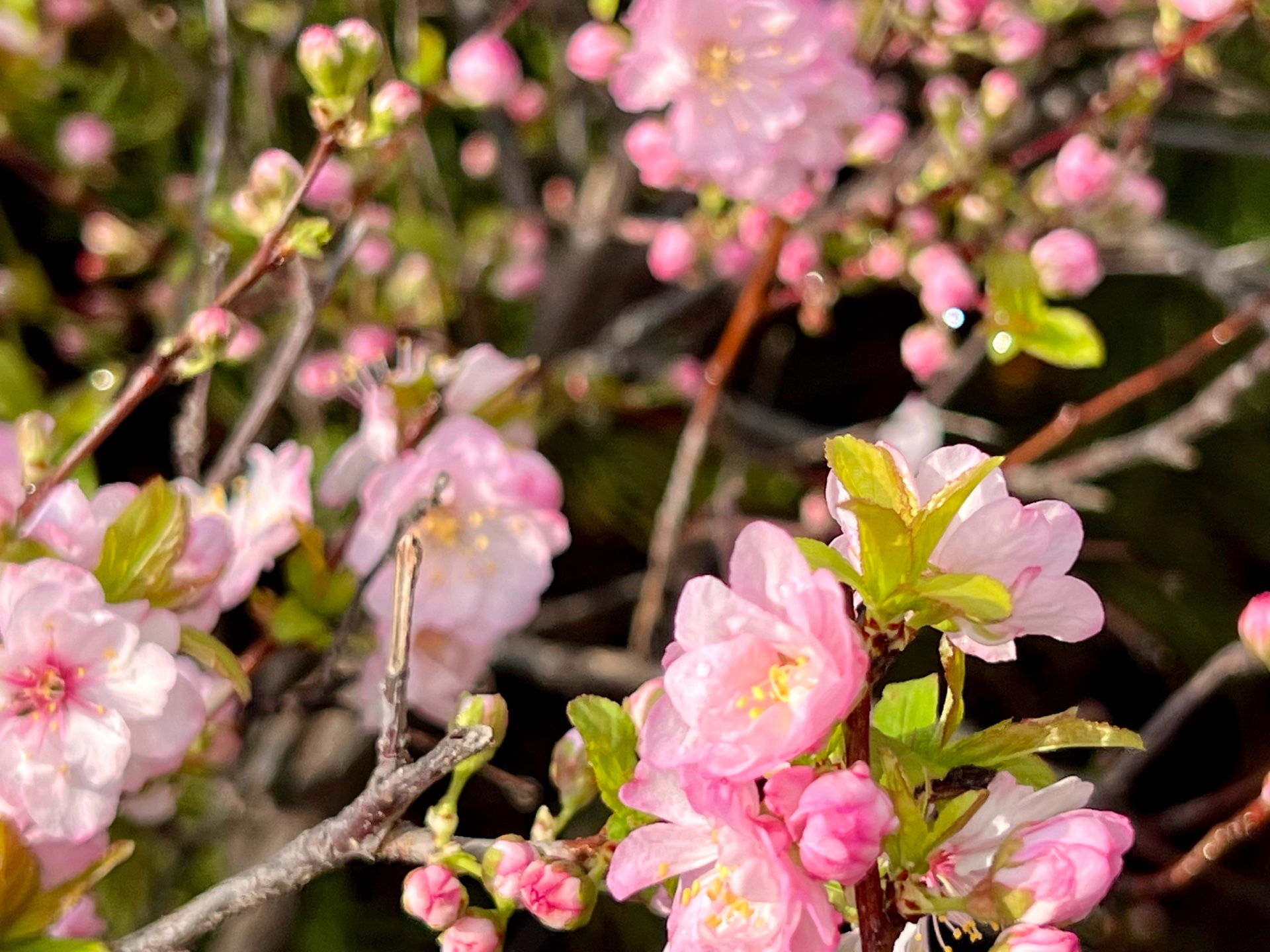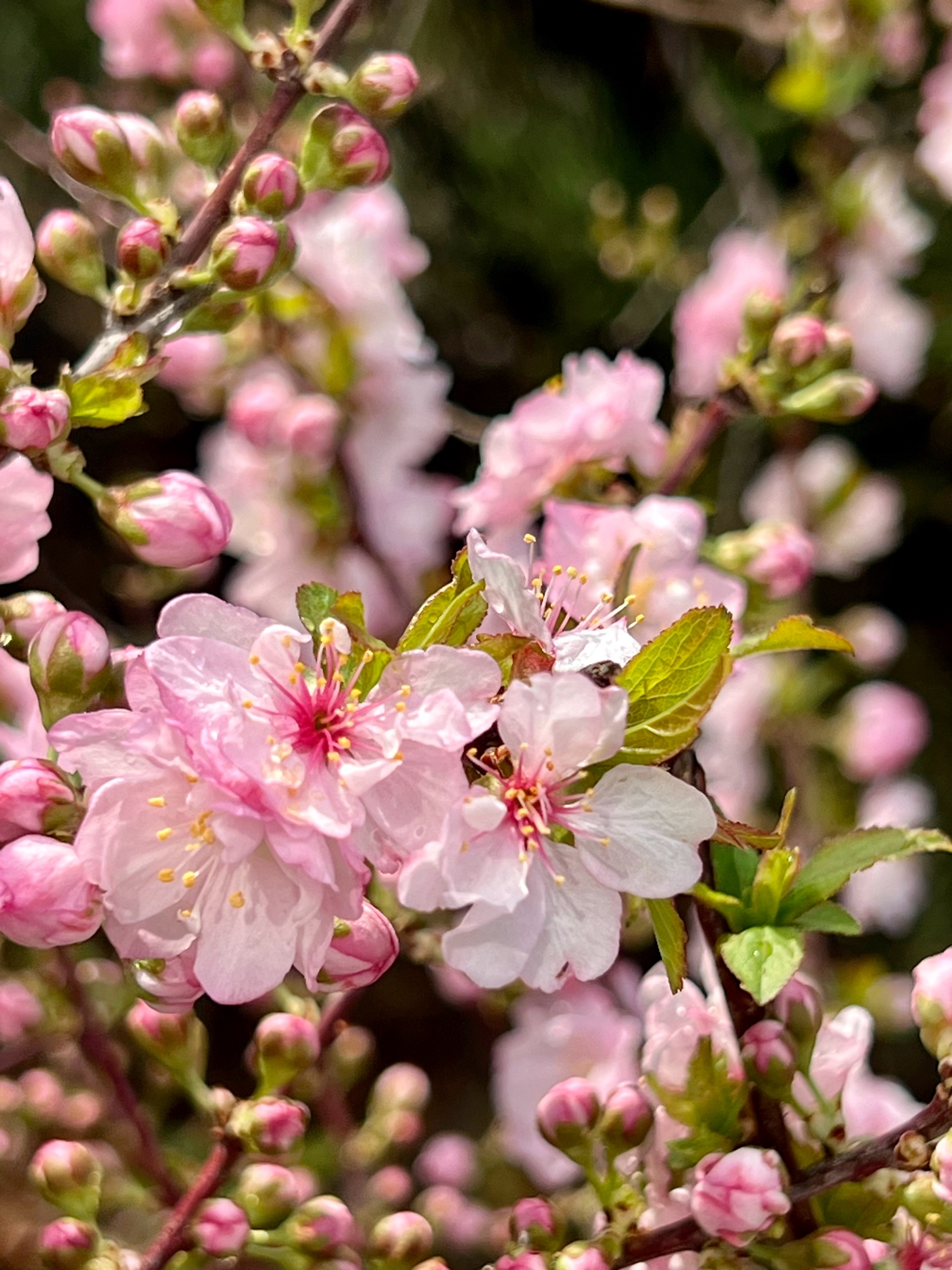 春花烂漫枝头绽放,红花麦李花开满枝桠