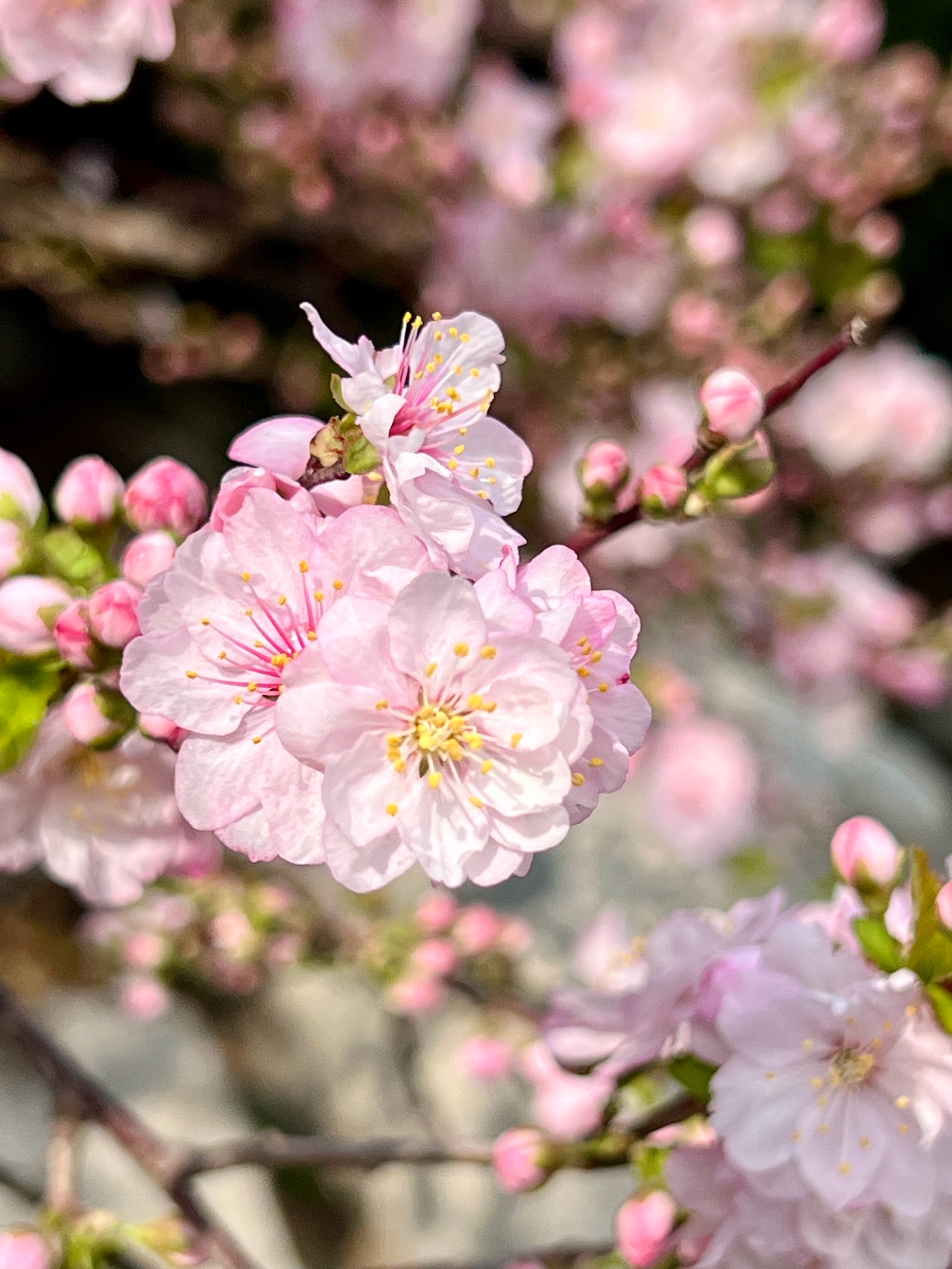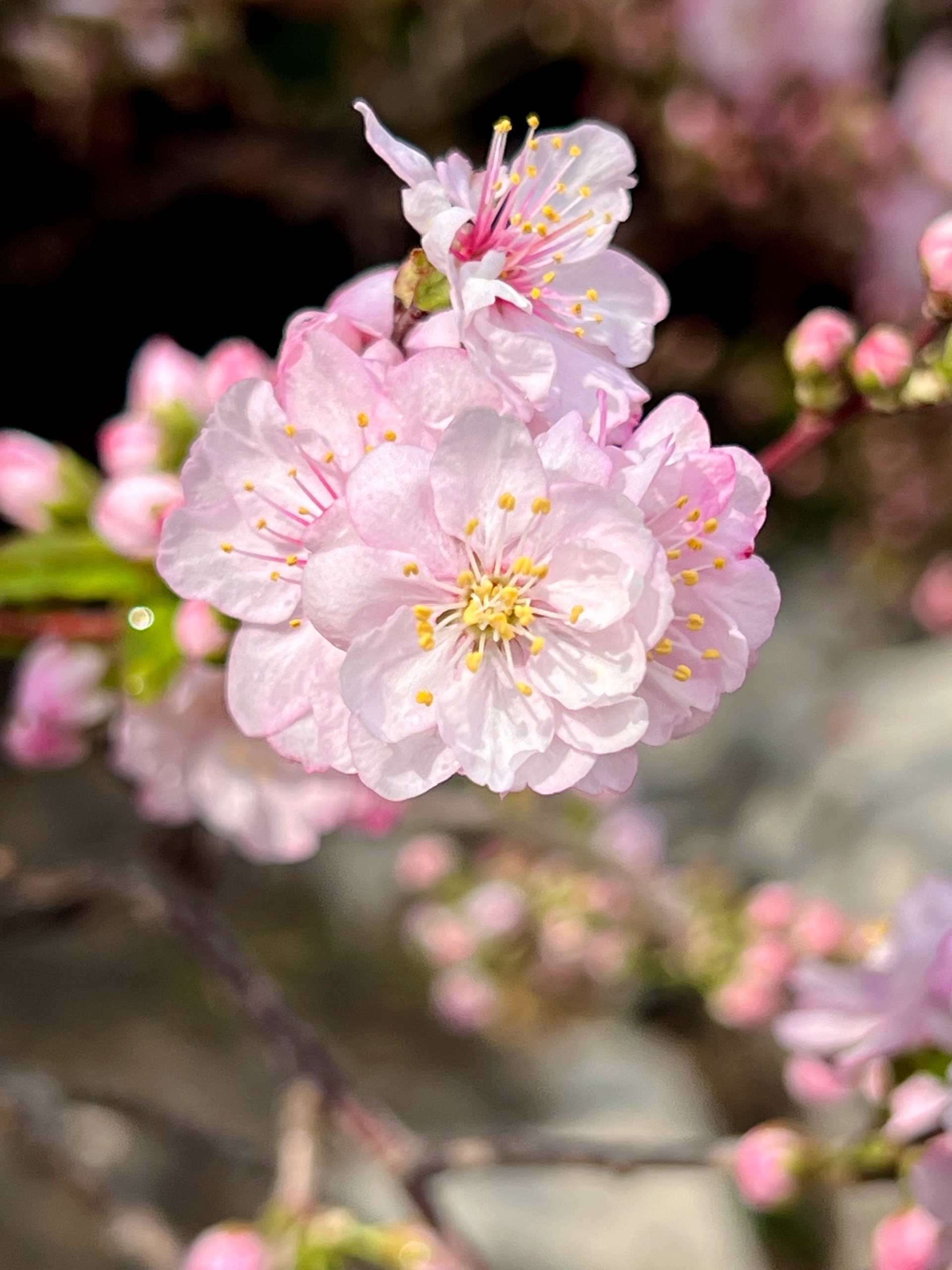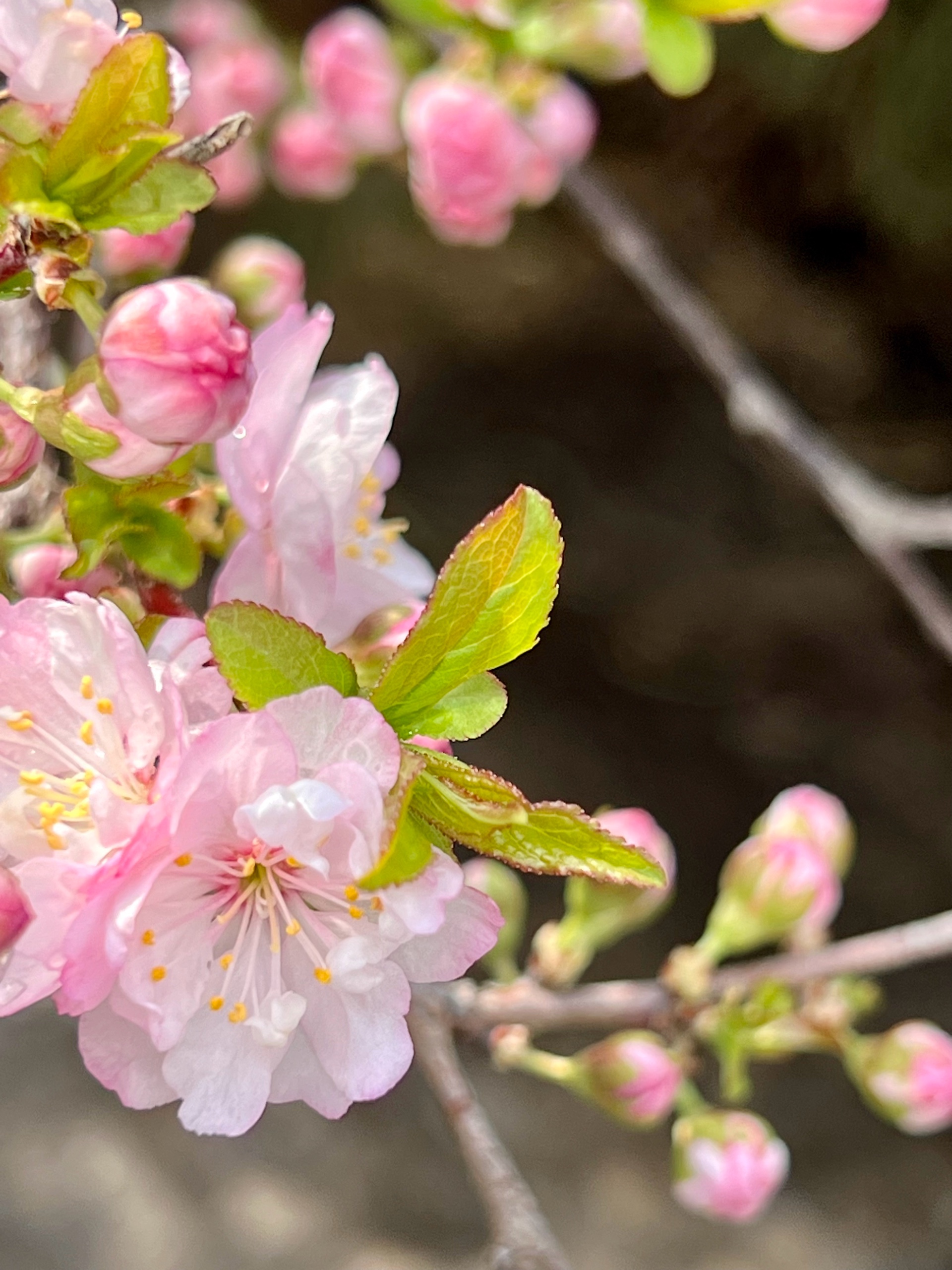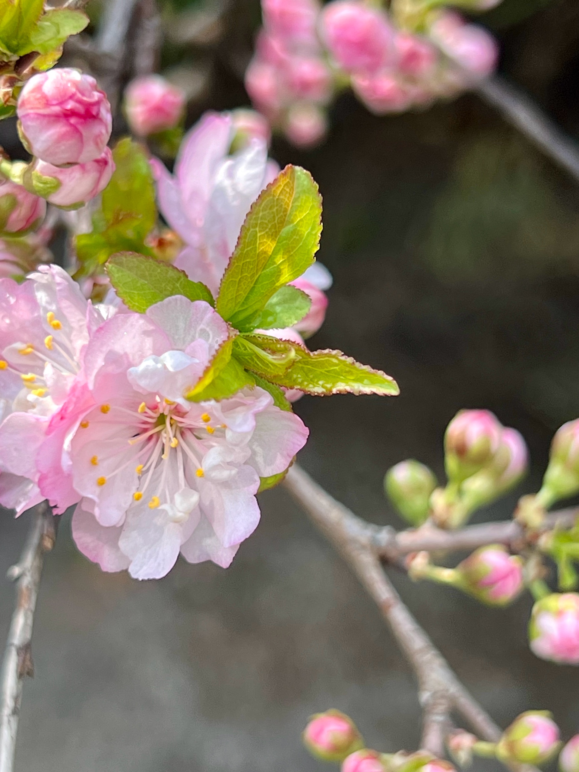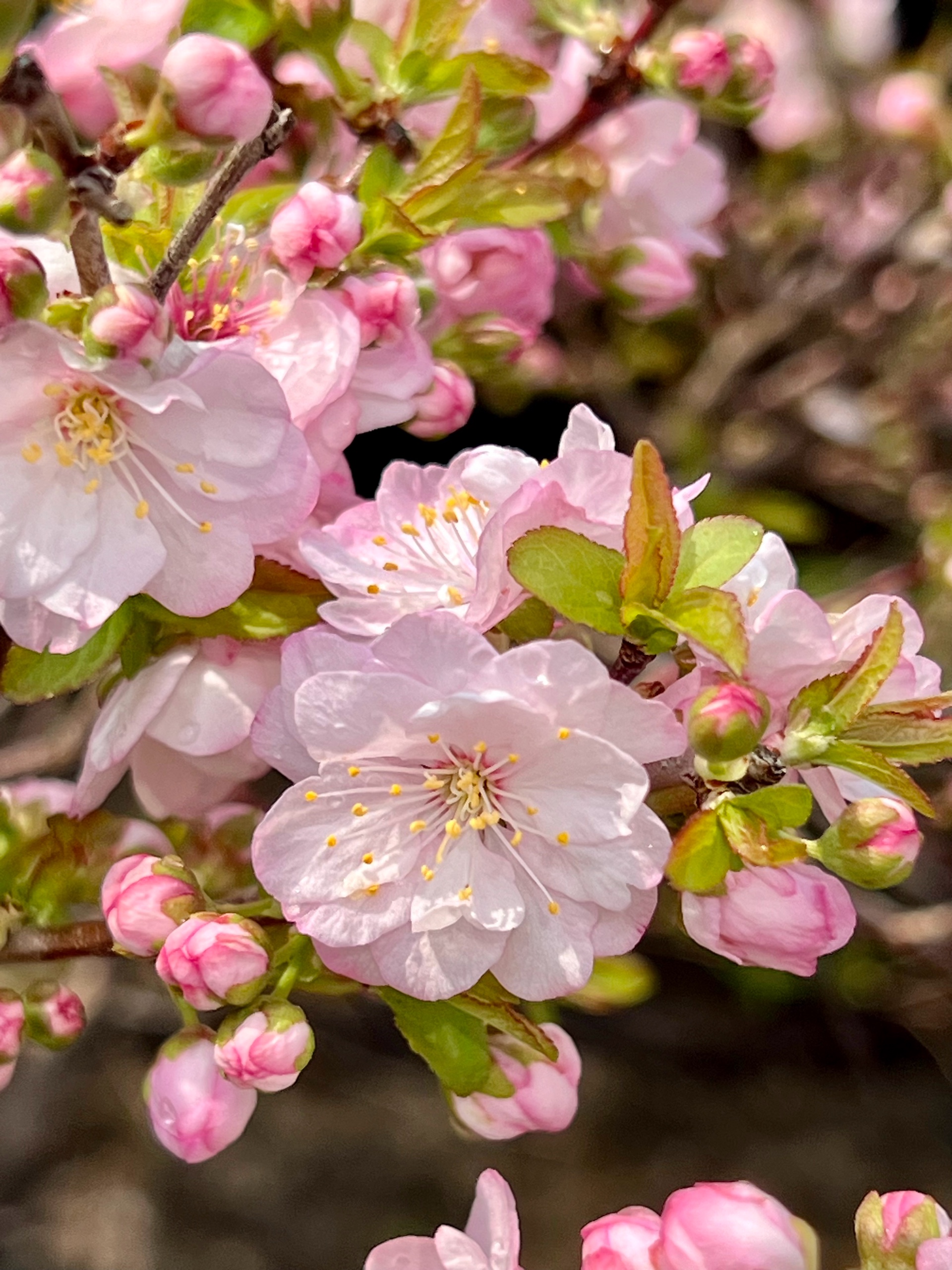 春花烂漫枝头绽放,红花麦李花开满枝桠