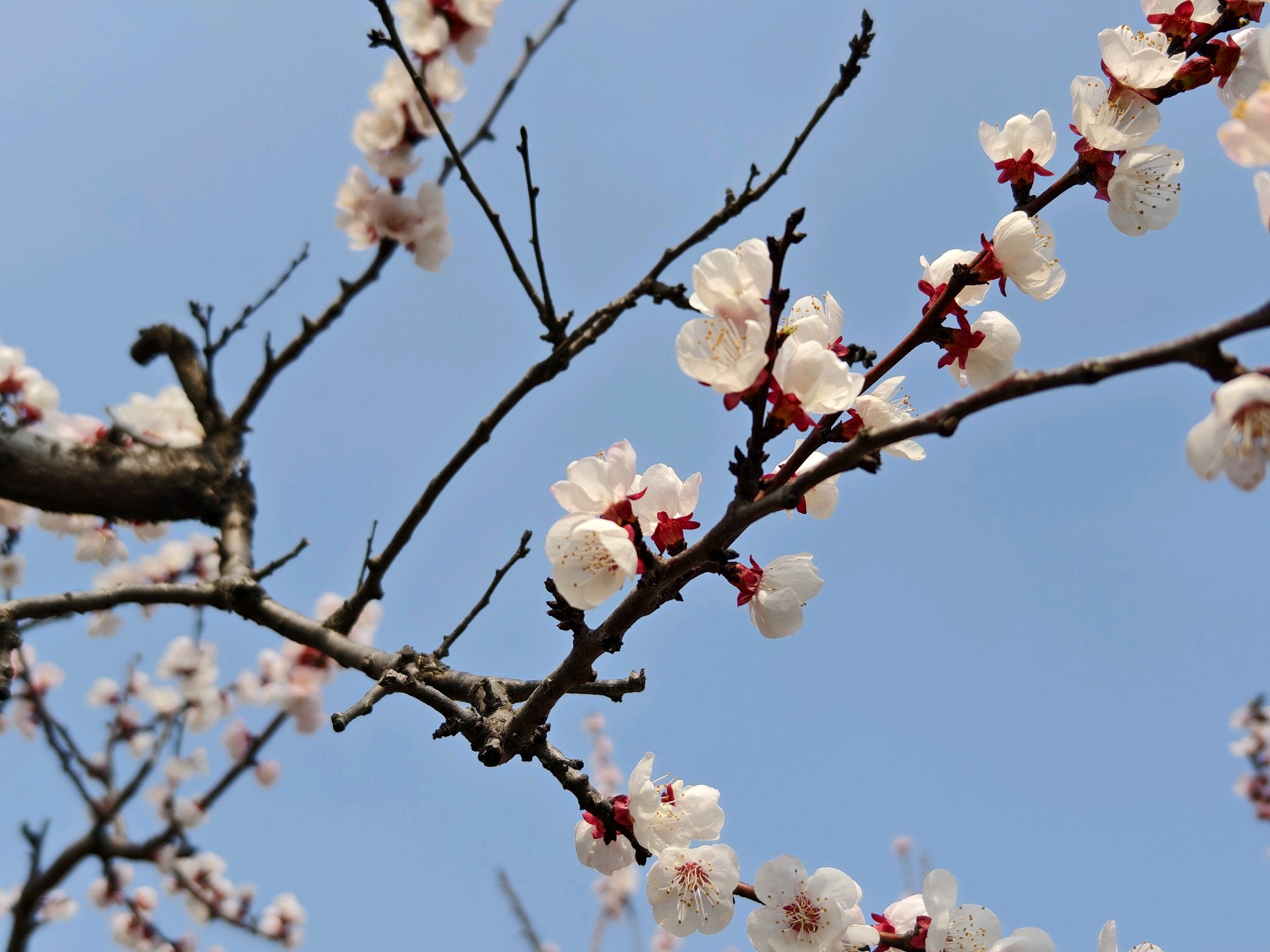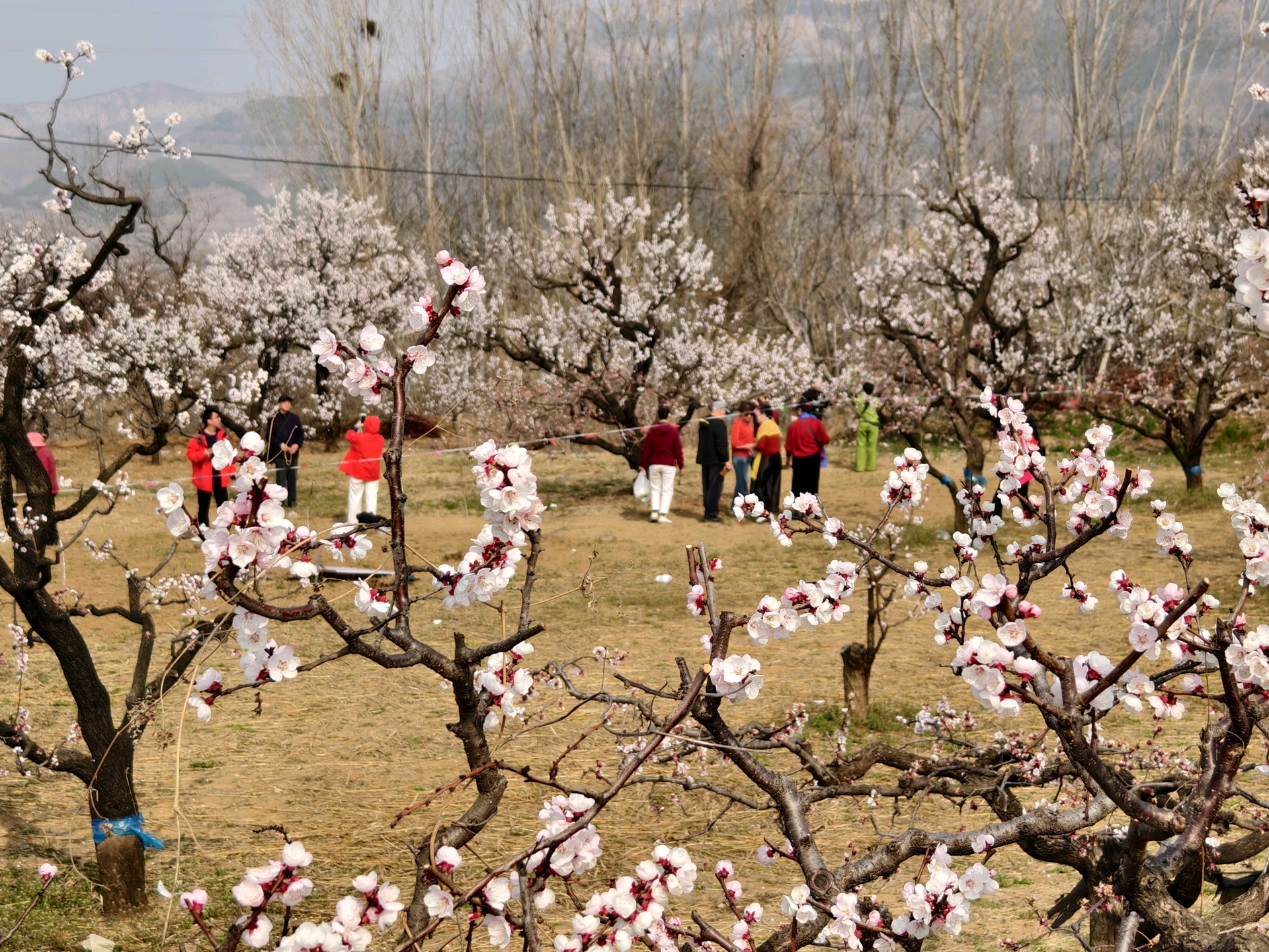 长清区张夏街道万亩杏花花开正盛,粉白朵朵,游人依依。春光明媚,赏花正当时。