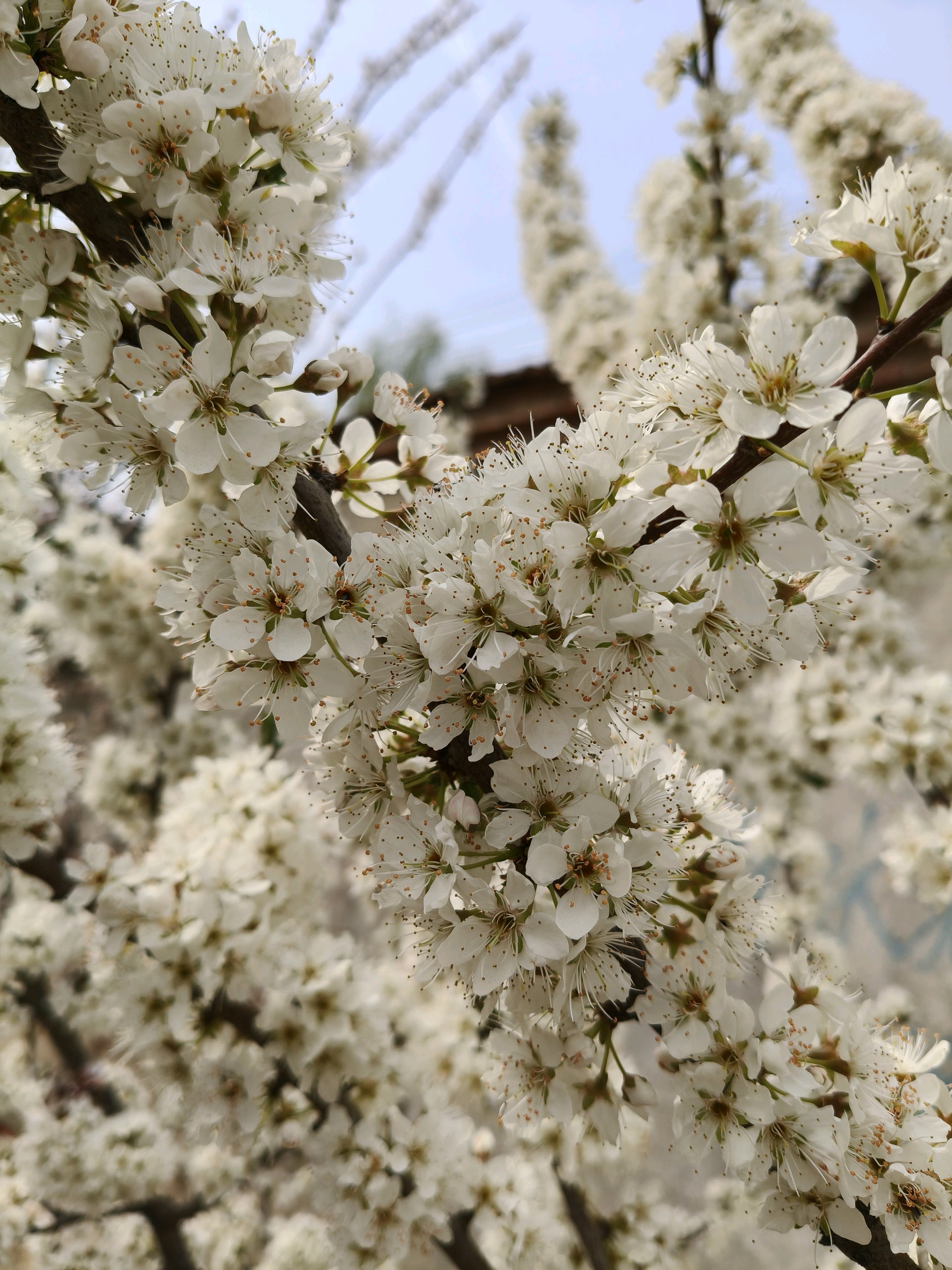 如此密集的李子花像雪一样挤满枝头,基本看不到枝条,花多的基本把枝条包裹住,百花盛开的时刻陆续到来了!