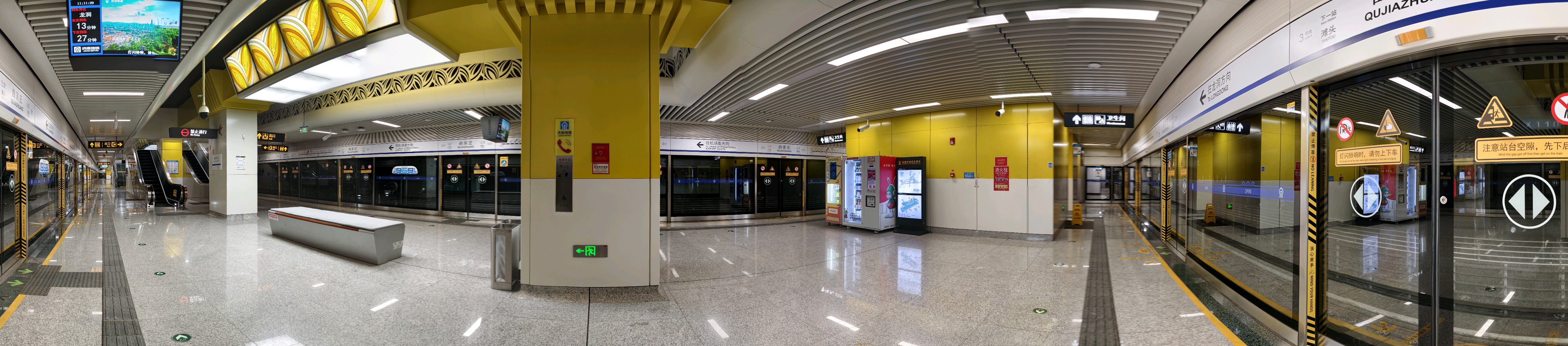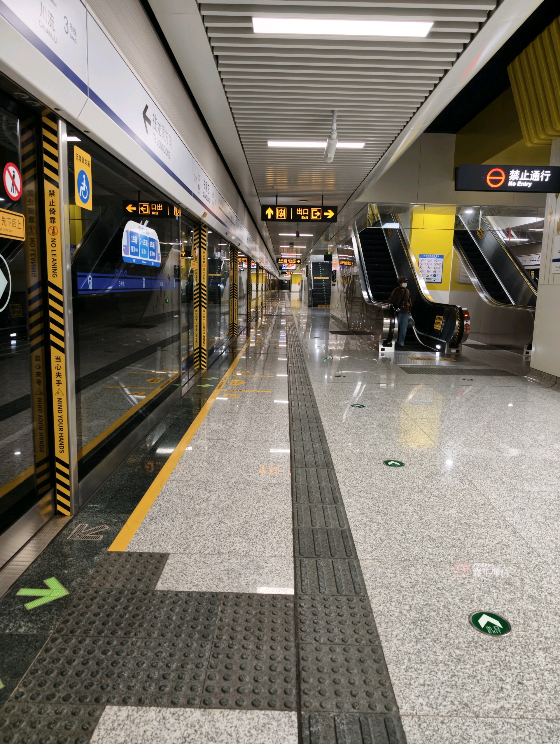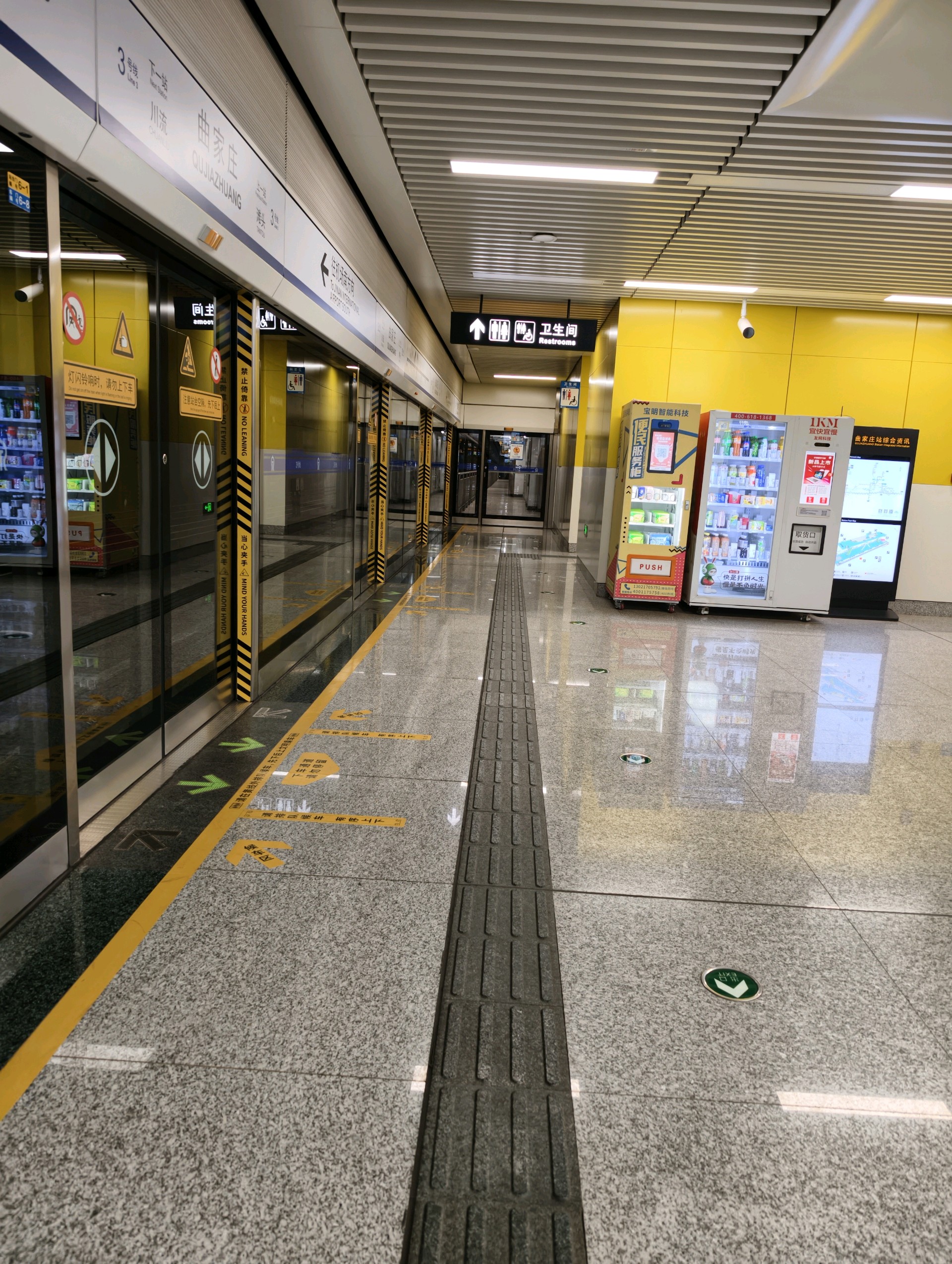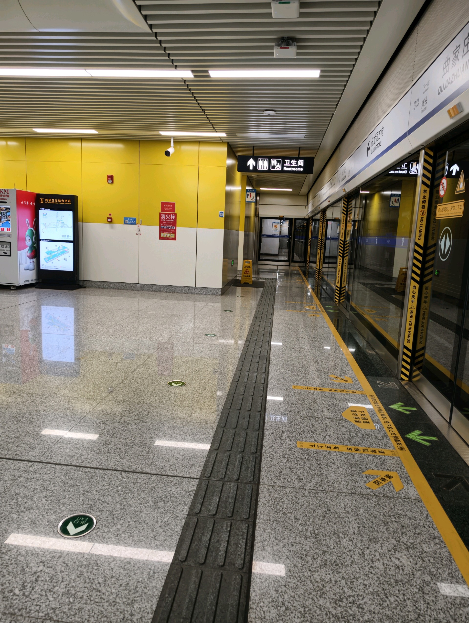 今天乘坐4号地铁到奥体中心转乘3号地铁到天成家园,中午返回时步入地铁曲家庄站内,发现站台内冷冷清清……