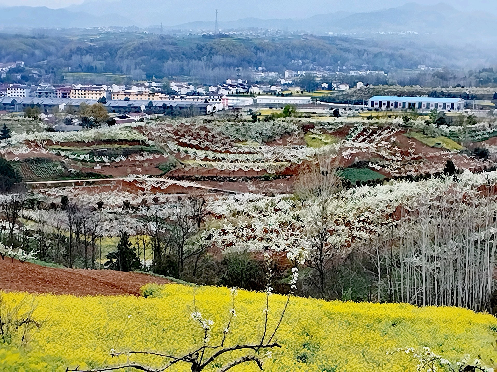 3月25日,陕西省汉中市洋县万亩春花盛开,吸引了摄影爱好者、游客前来拍照、打卡。王东元 摄影