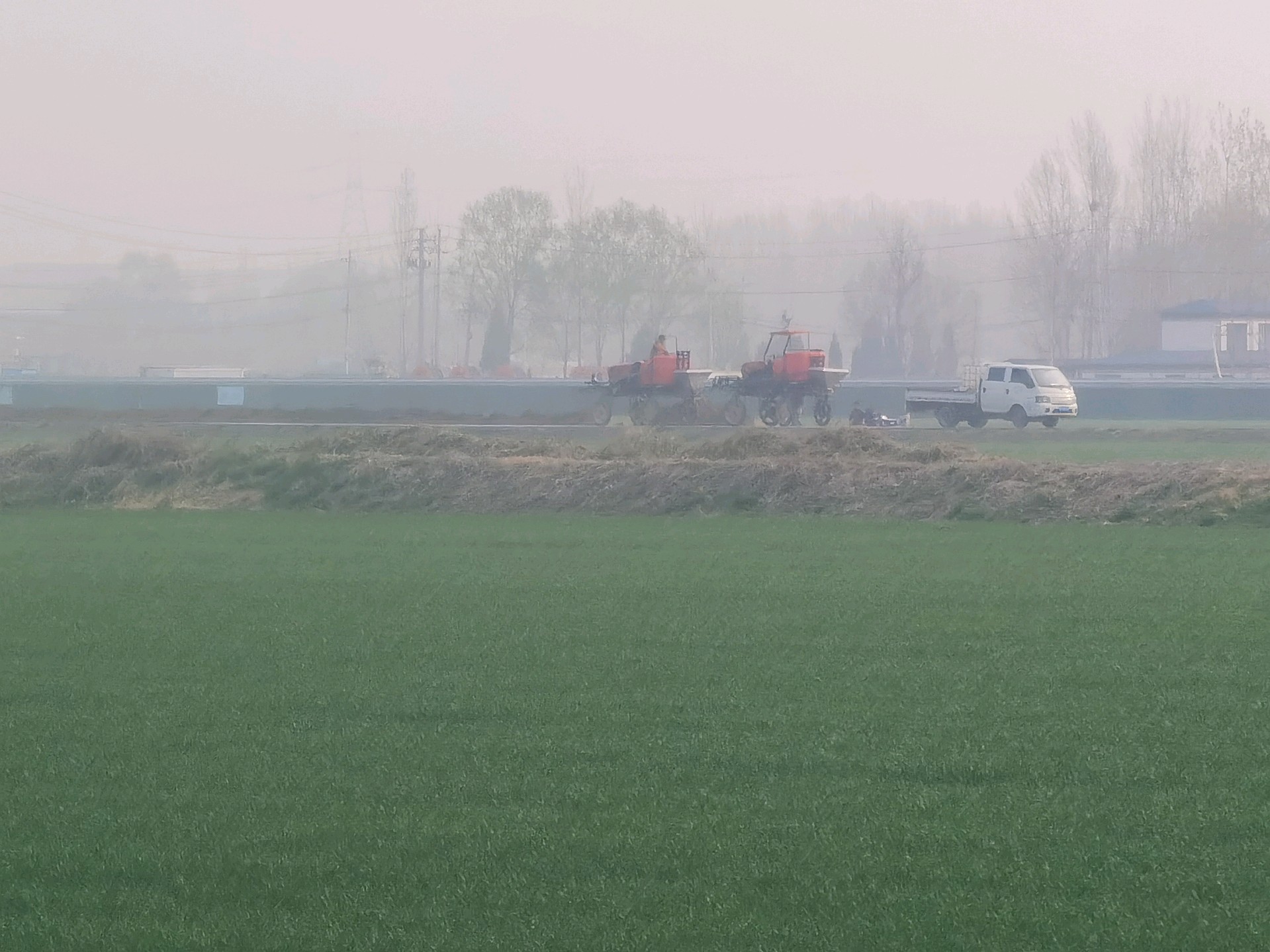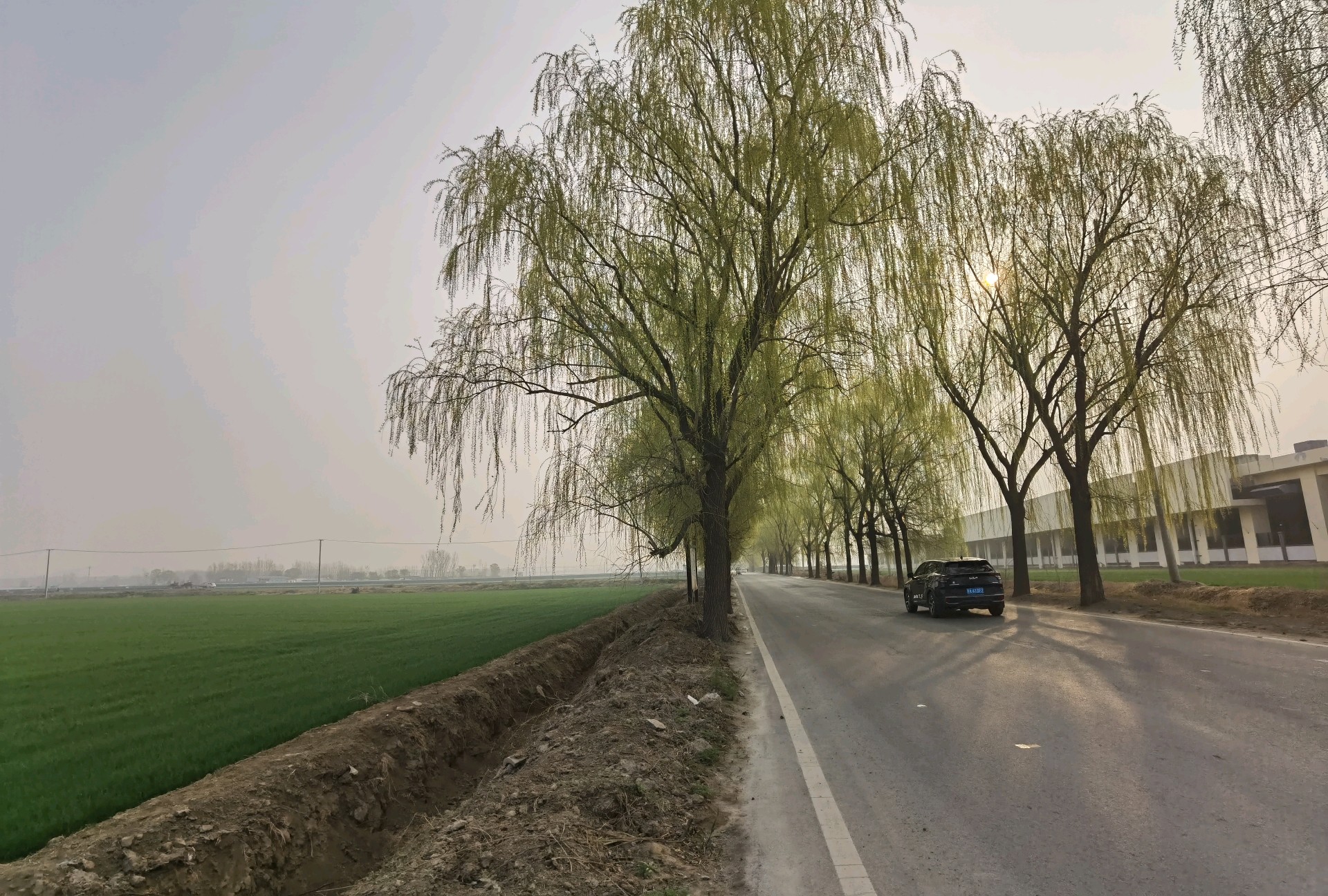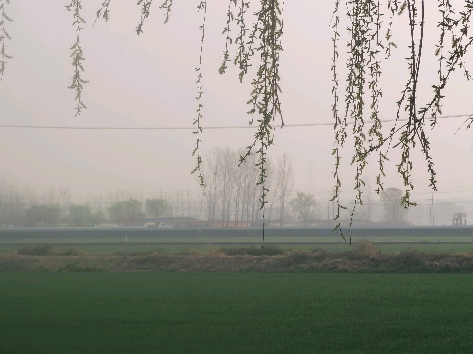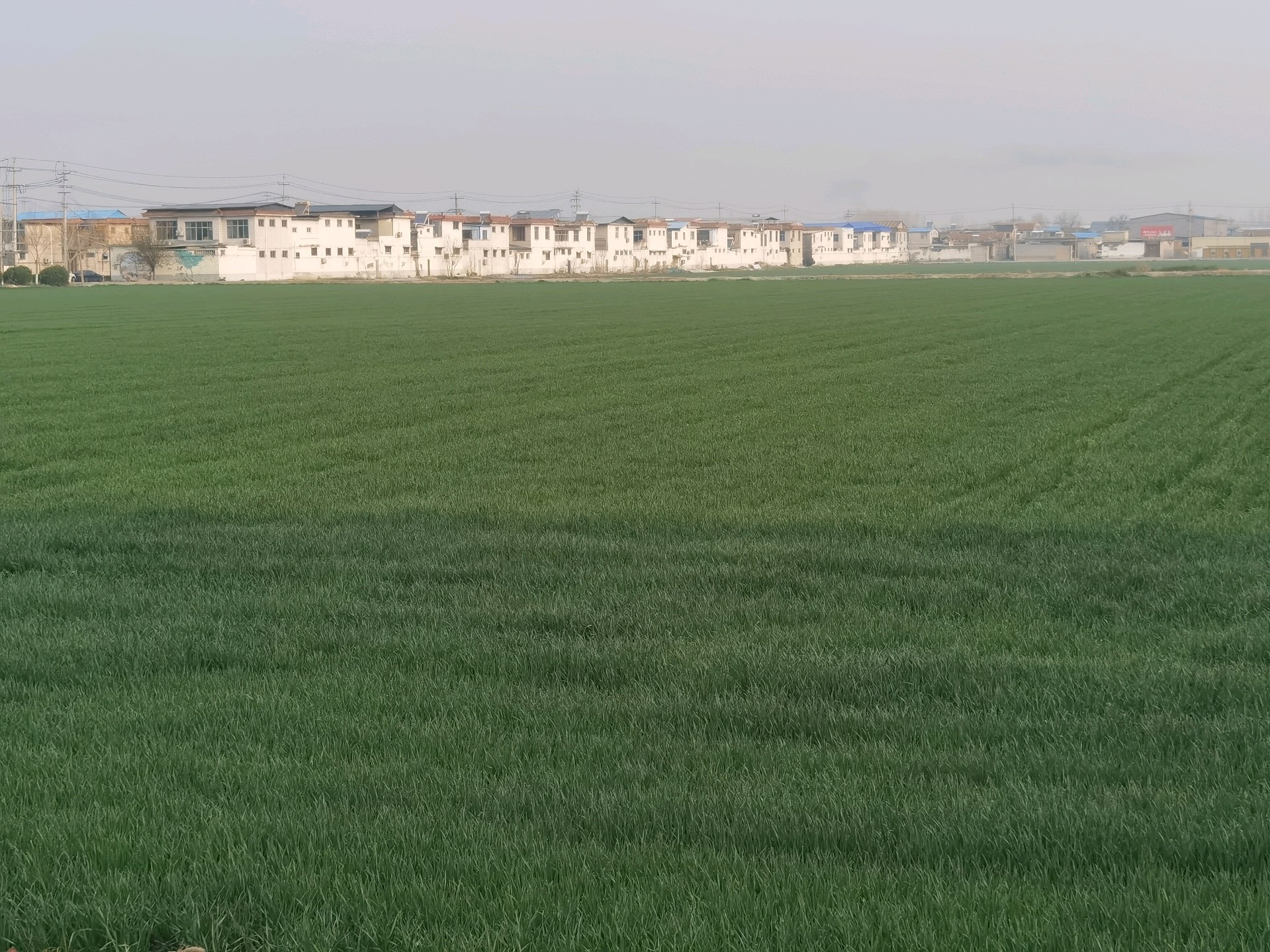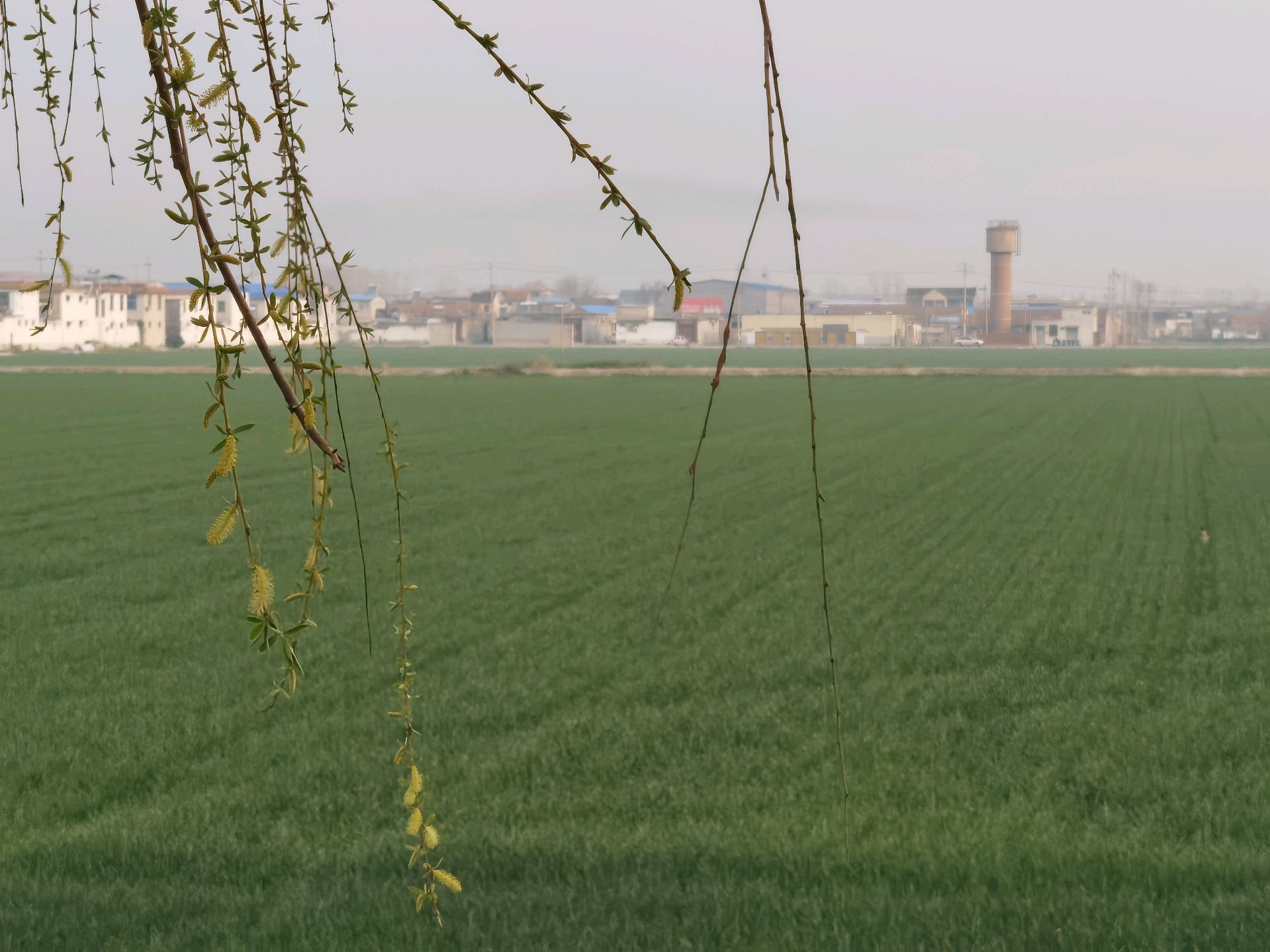 春暖花开,麦子反青,一片绿油油的景象/