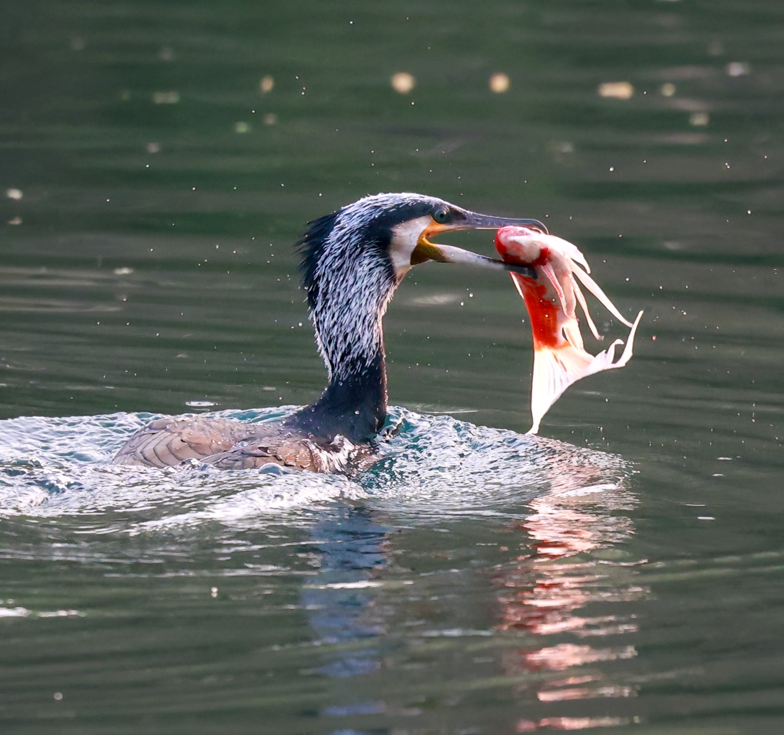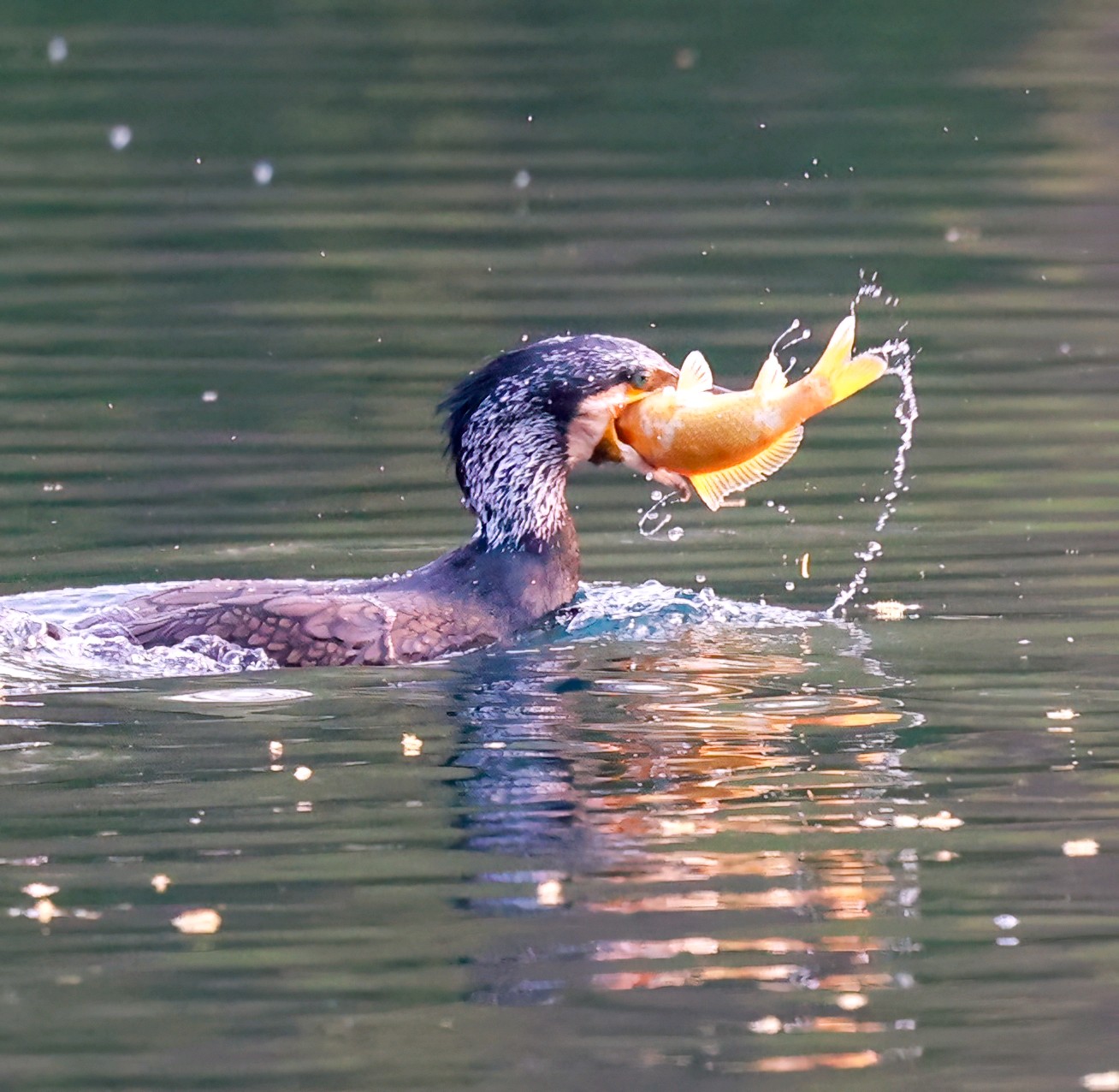 昨天清晨大明湖再拍鸬鹚捕鱼精彩瞬间,真是太美了!