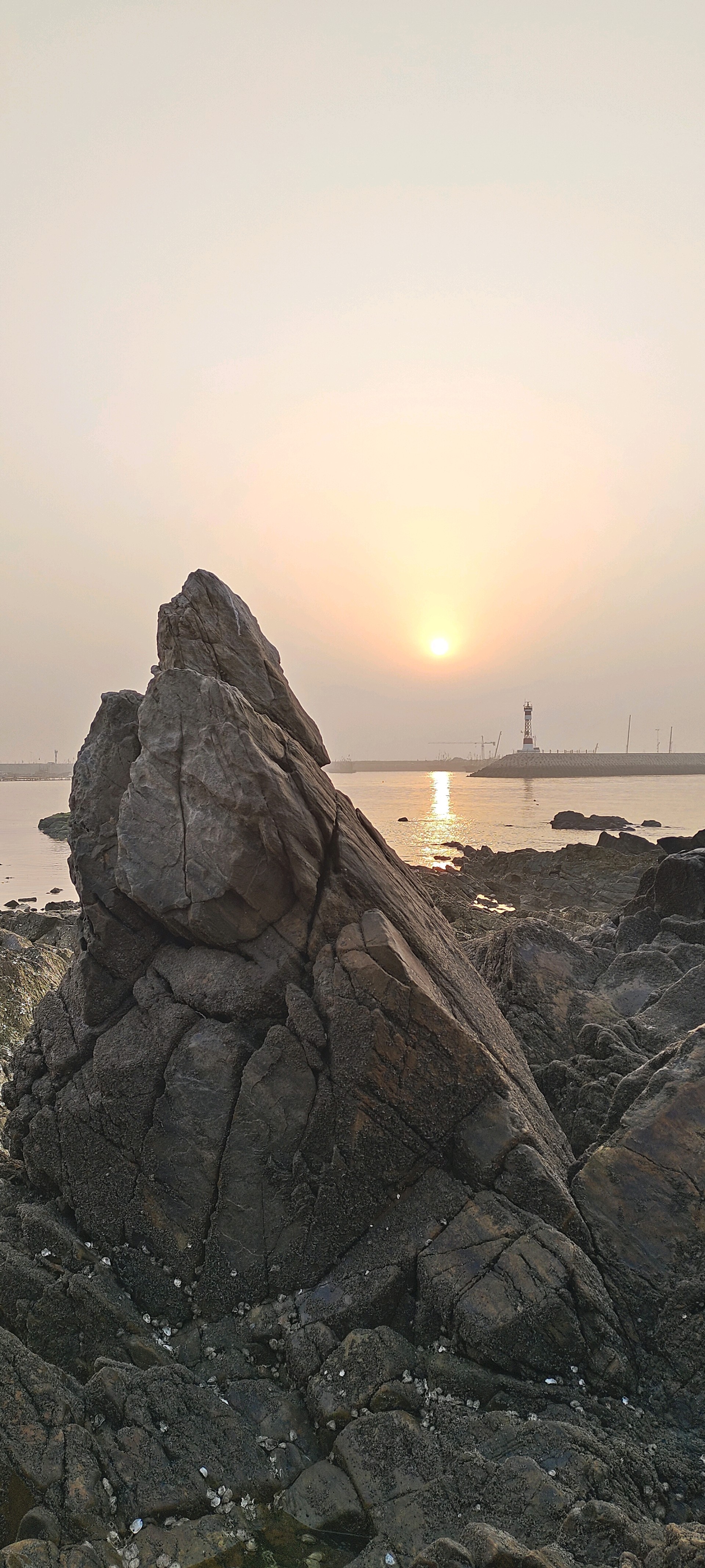 3月26日清晨,在日照市山海天旅游度假区大泉沟渔港东侧,一块人形礁石矗立在海边,在朝阳、灯塔的映衬下,更显气质。这块礁石当地人称之为“人石子”,堪称日照版的“石老人”,成了海边一道独特景观。