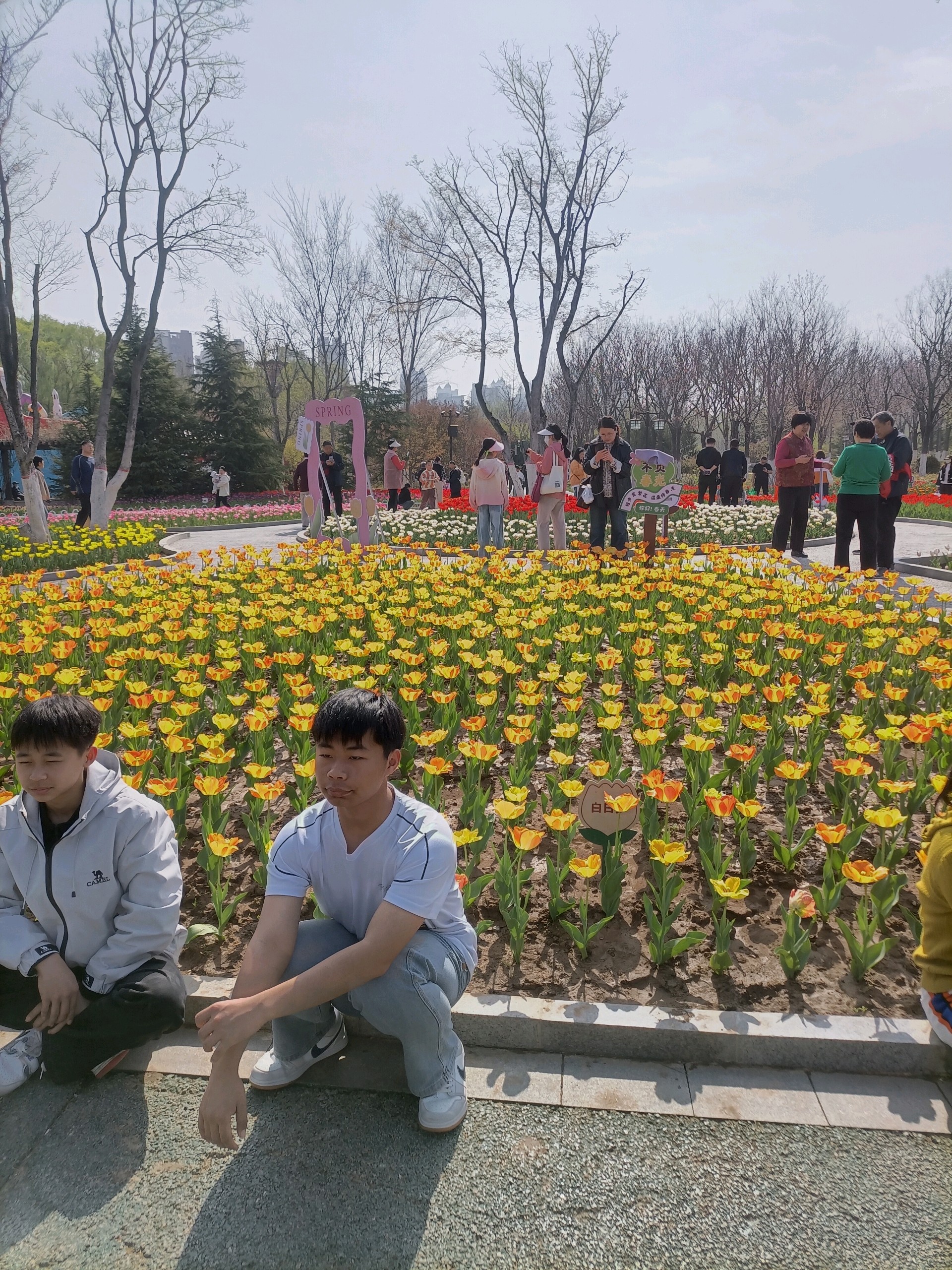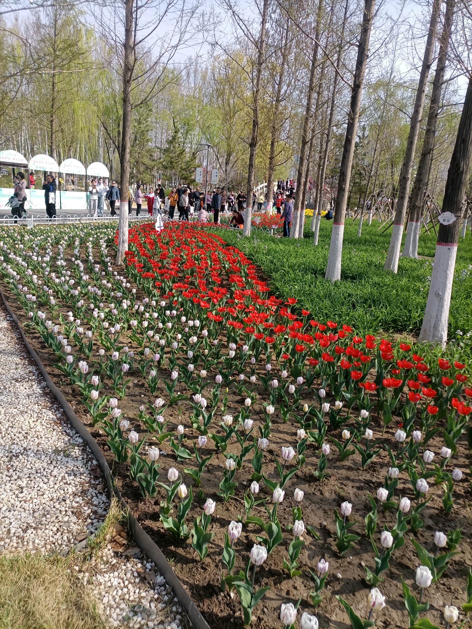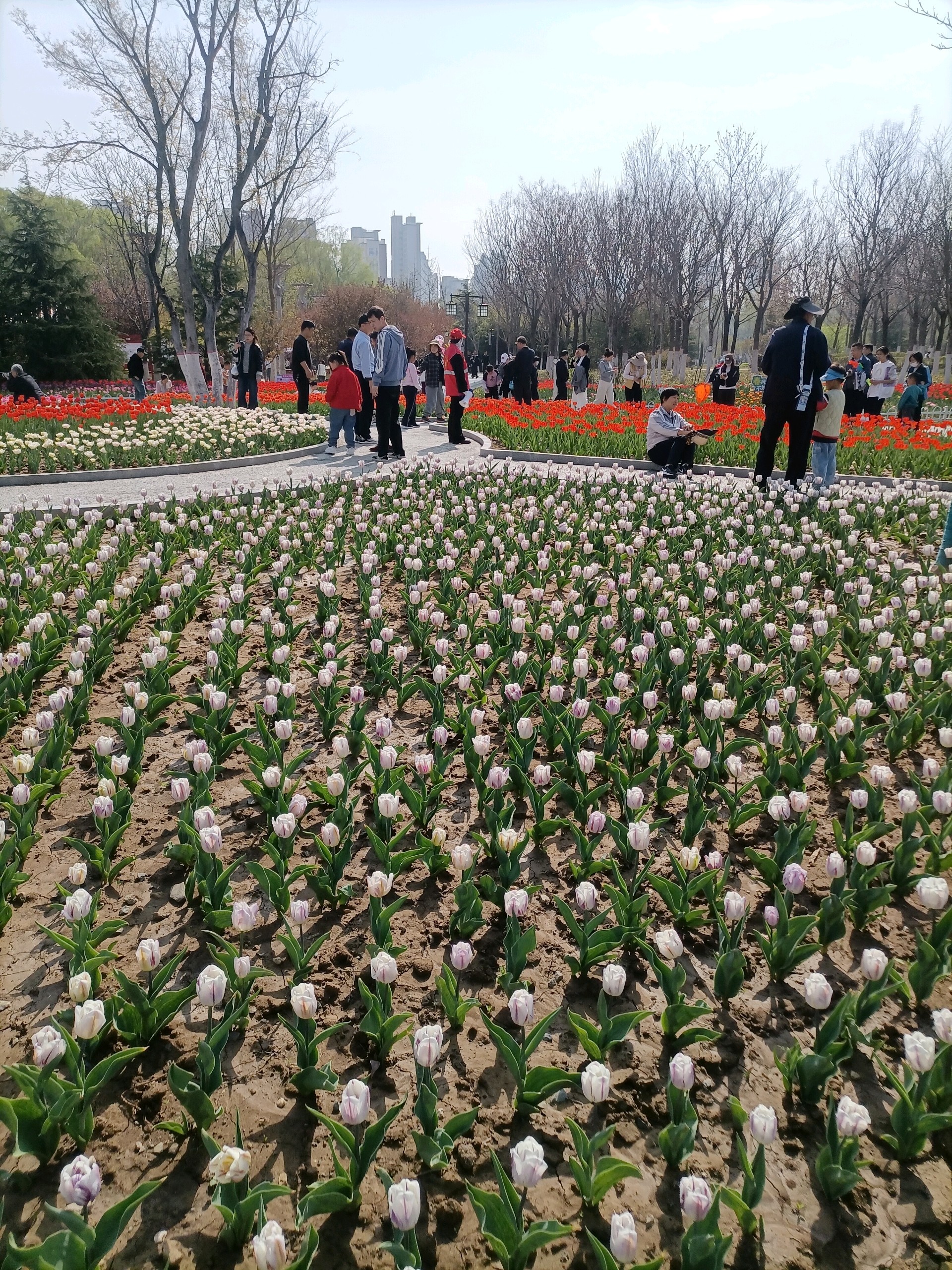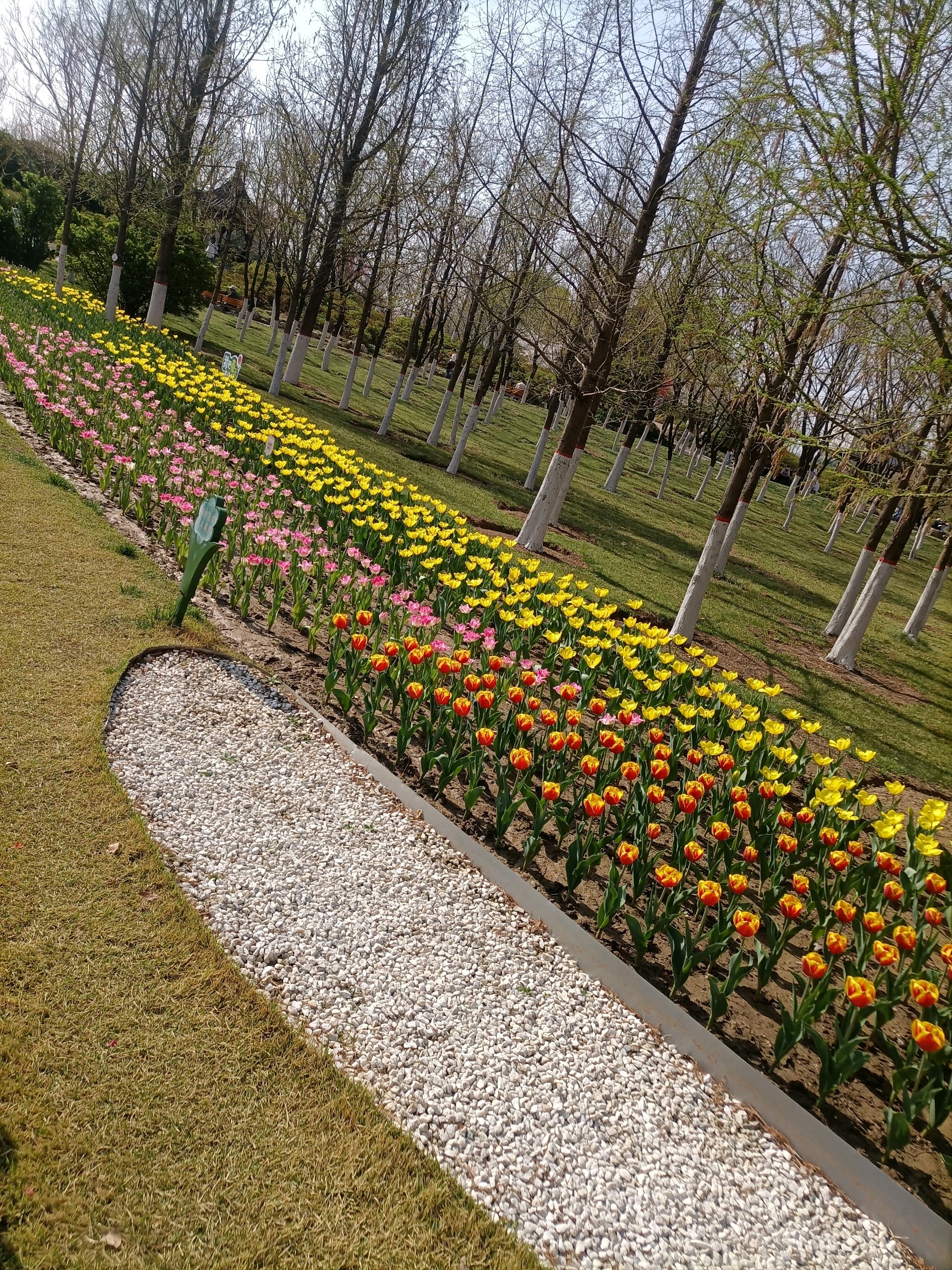 聊城凤凰苑植物园里的郁金香盛开了,五颜六色姹紫嫣红,花的海洋!