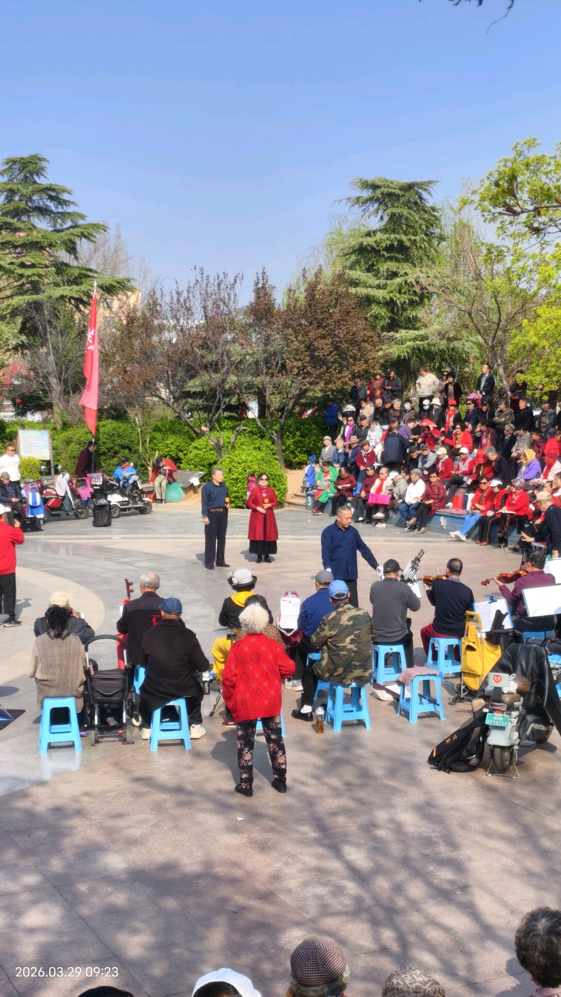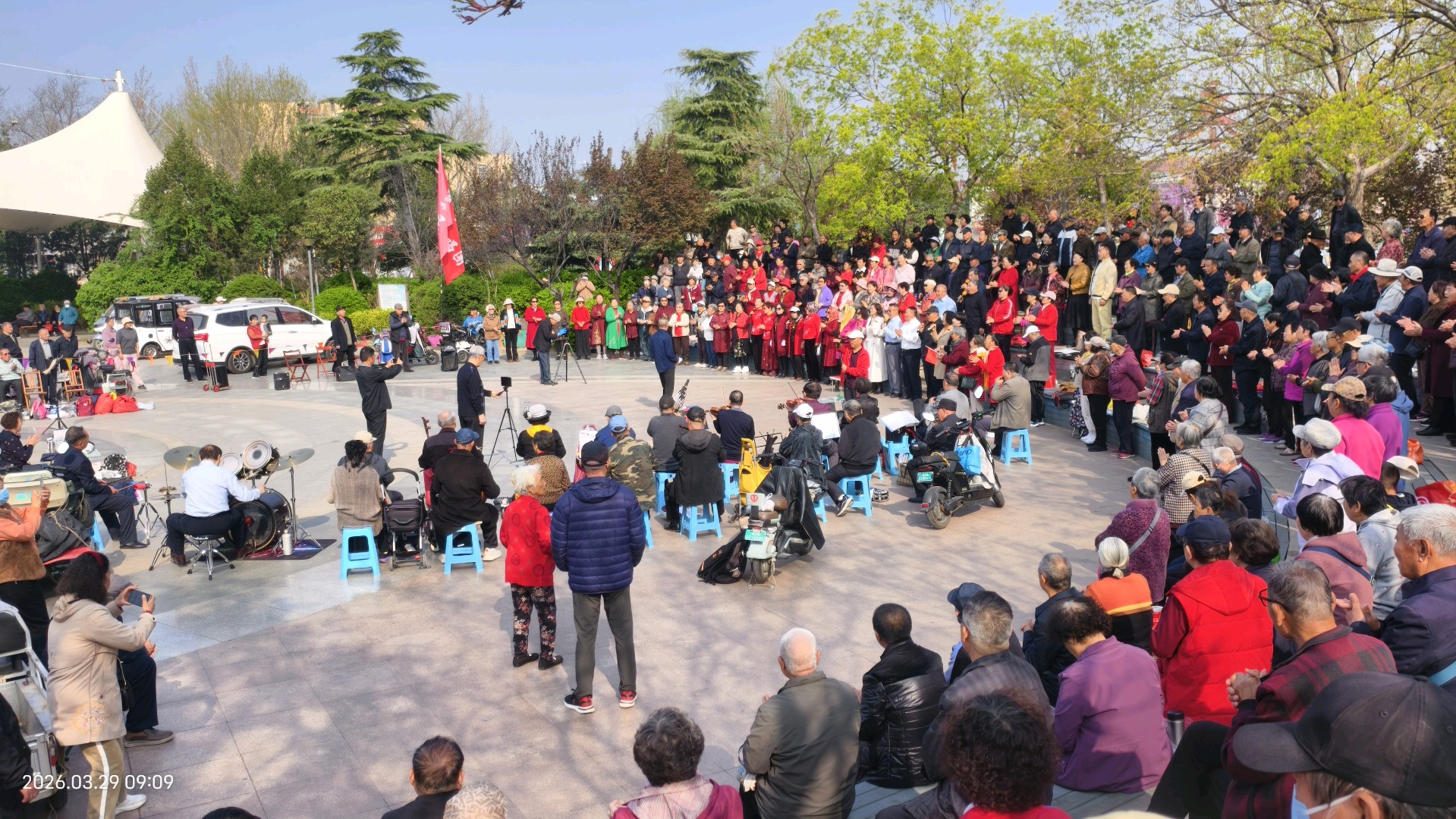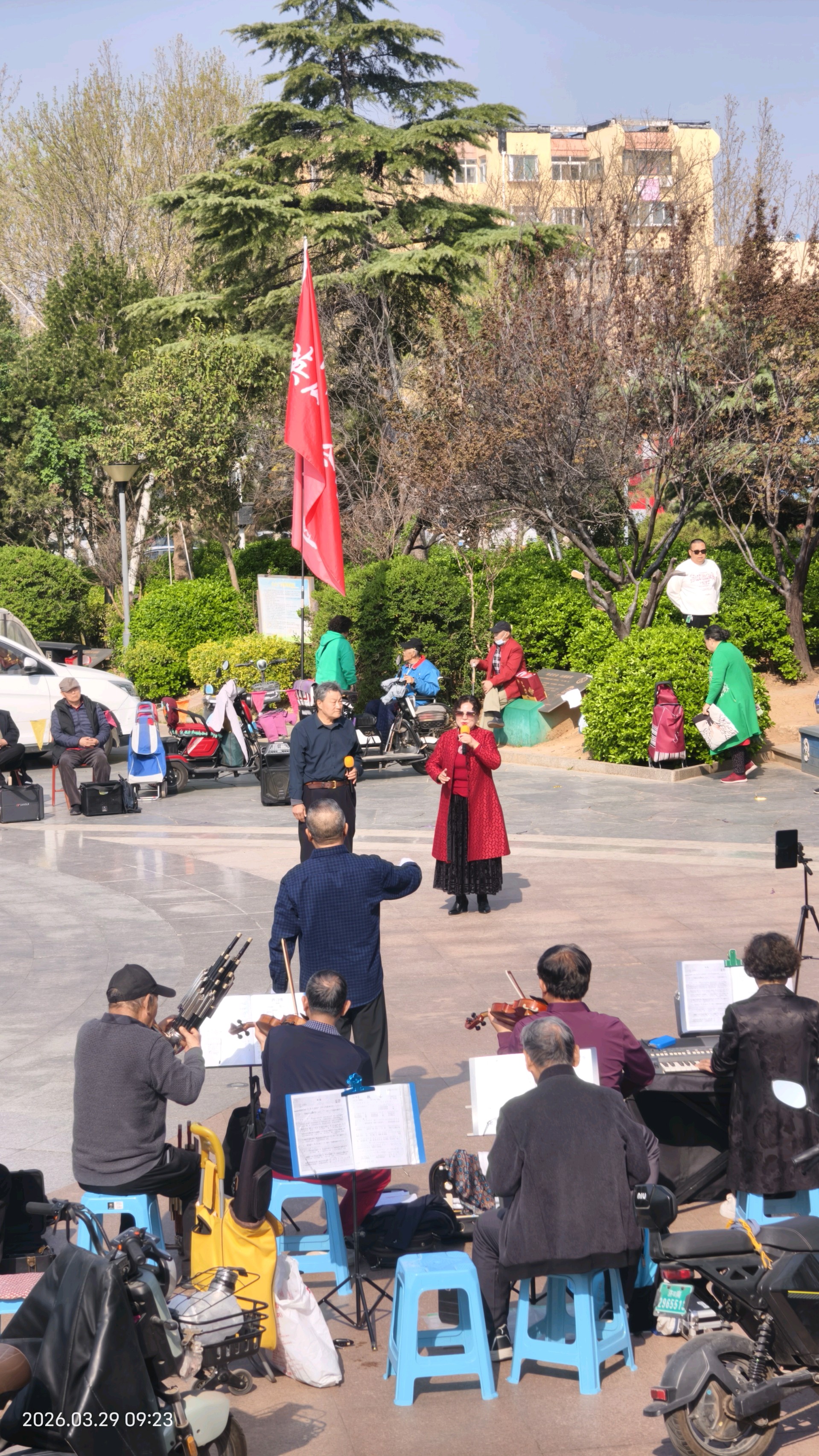 每逢双休日上午,位于市中区王官庄大众广场上的合唱团,都在演唱红歌,吸引了很多市民踊跃参与。