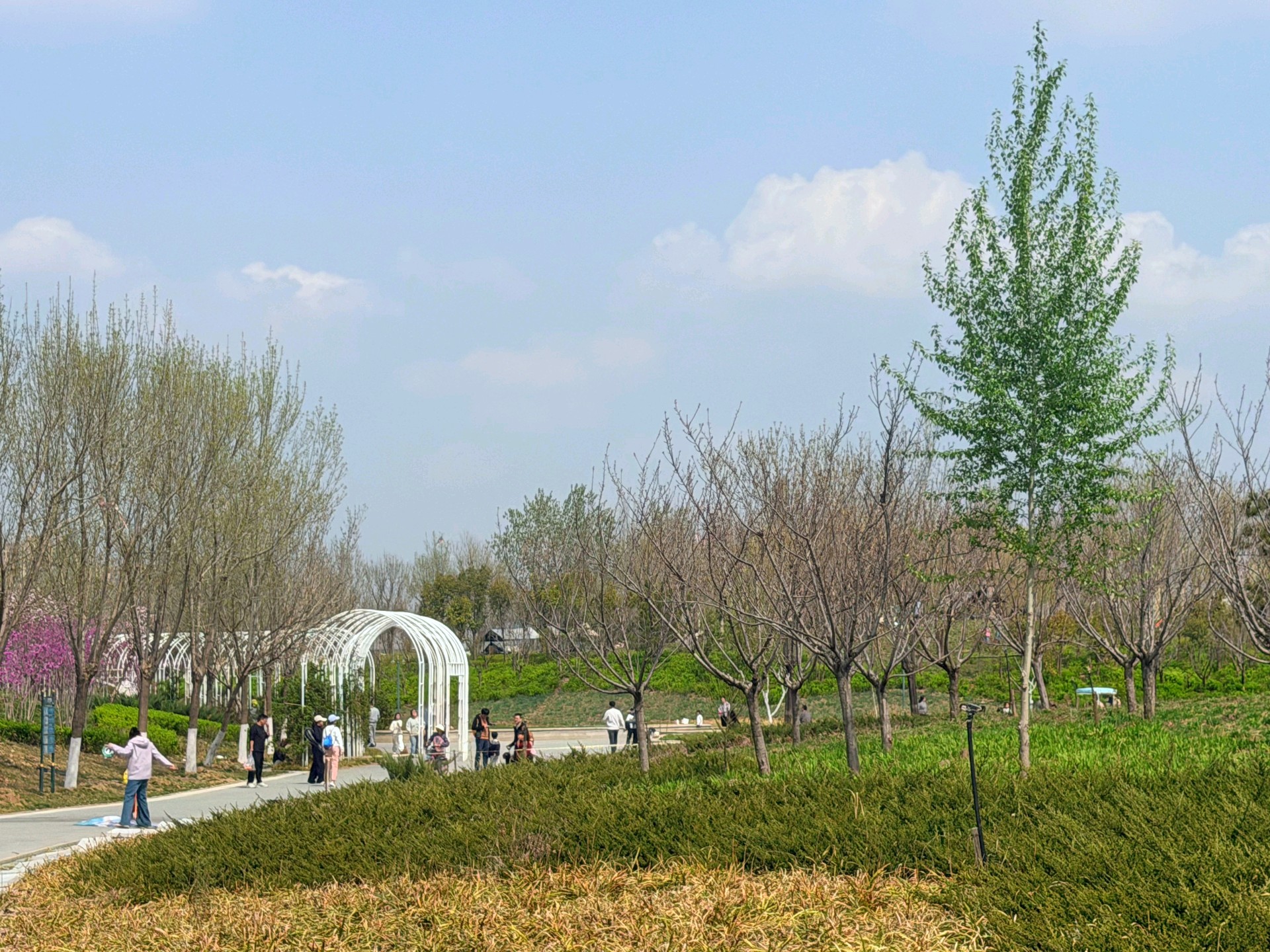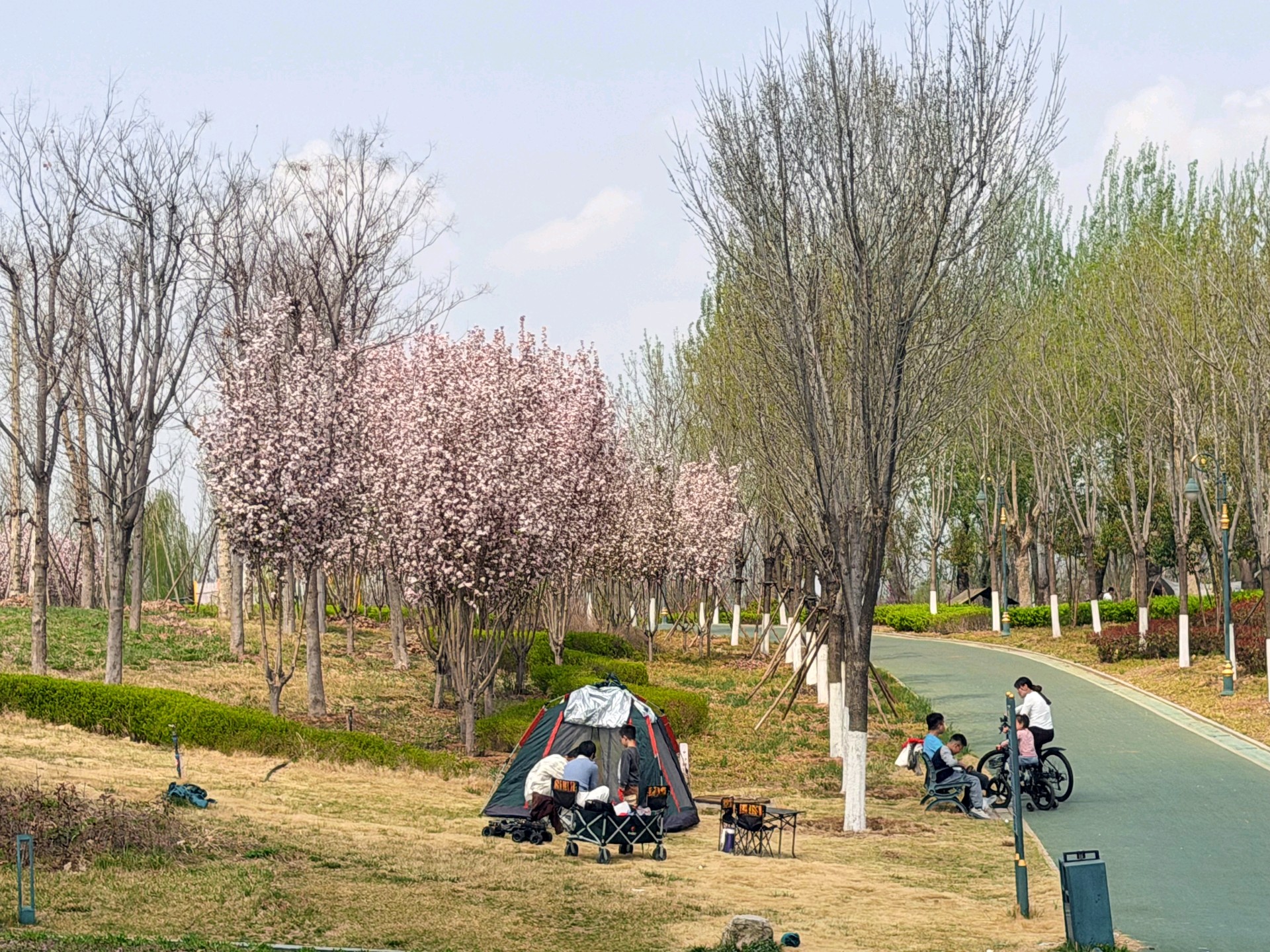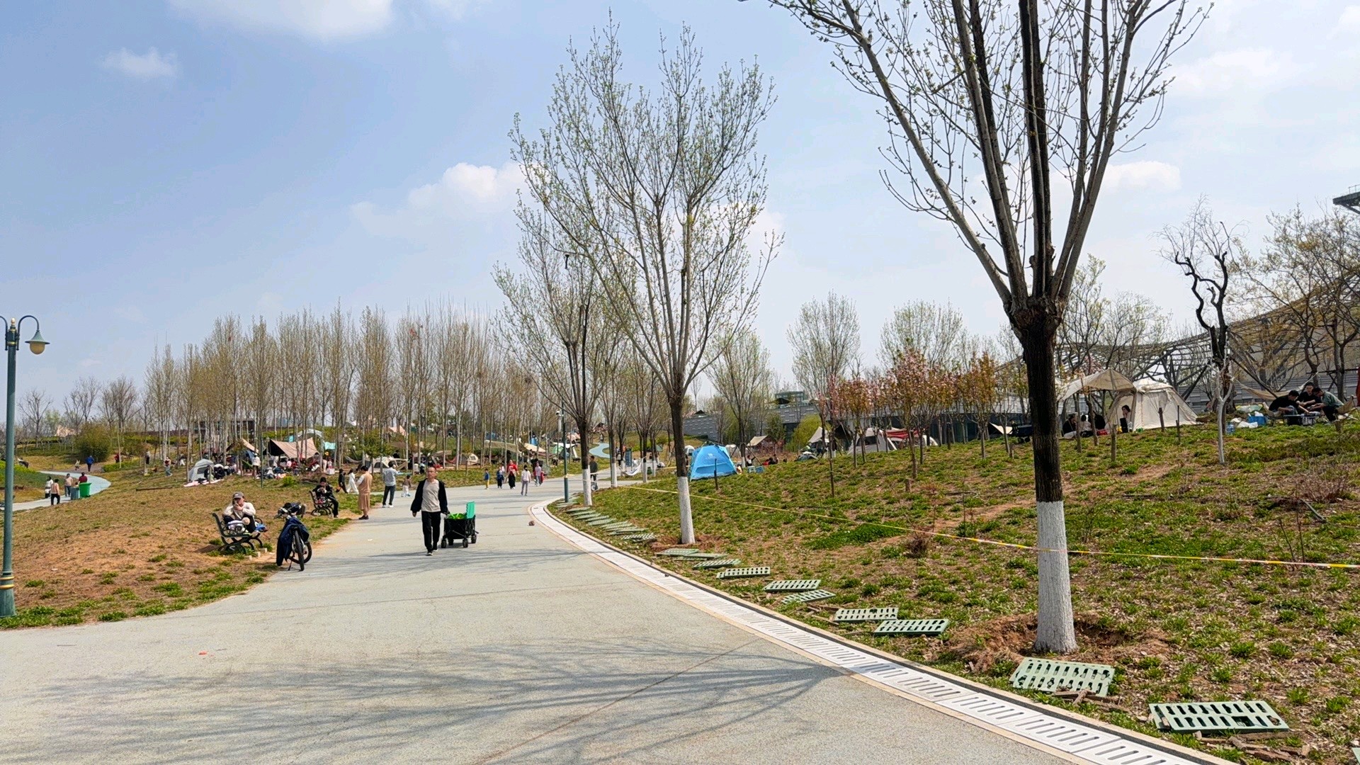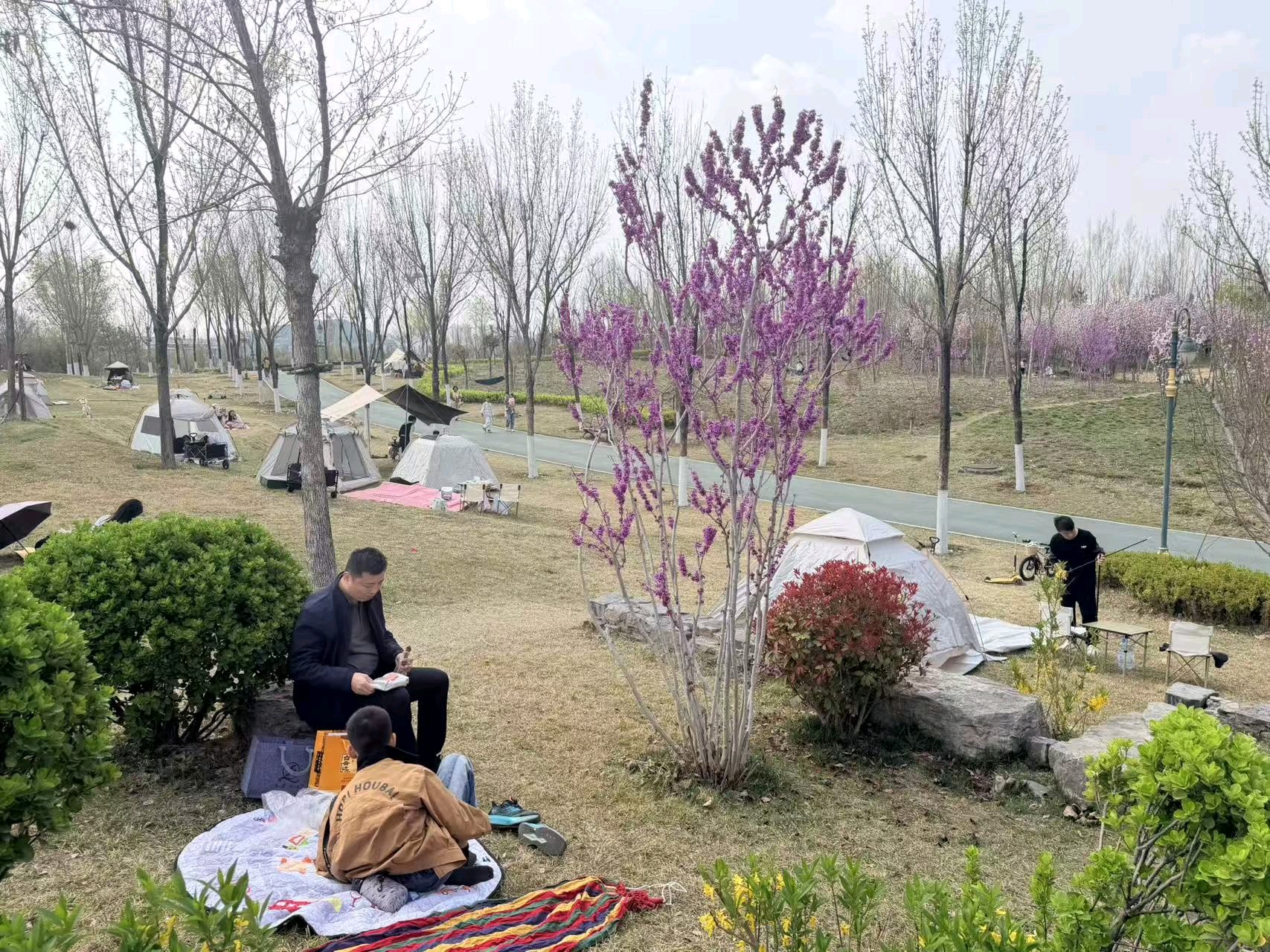 暖风轻拂的周日,来中央森林公园,抬眼是澄澈的蓝天白云,草坪上是游客安营扎寨,乐享春天的美好时光。