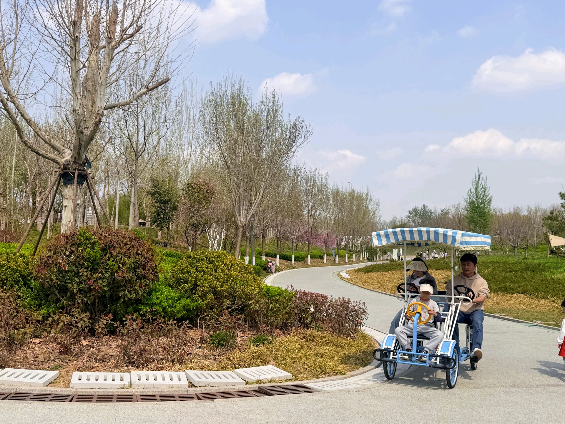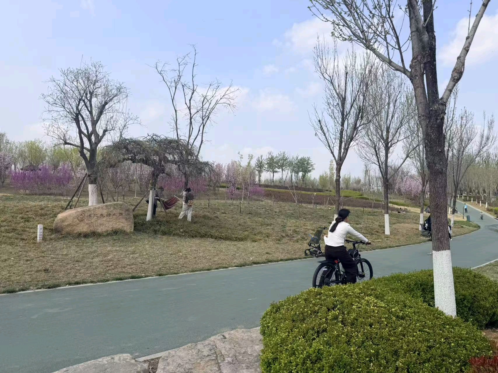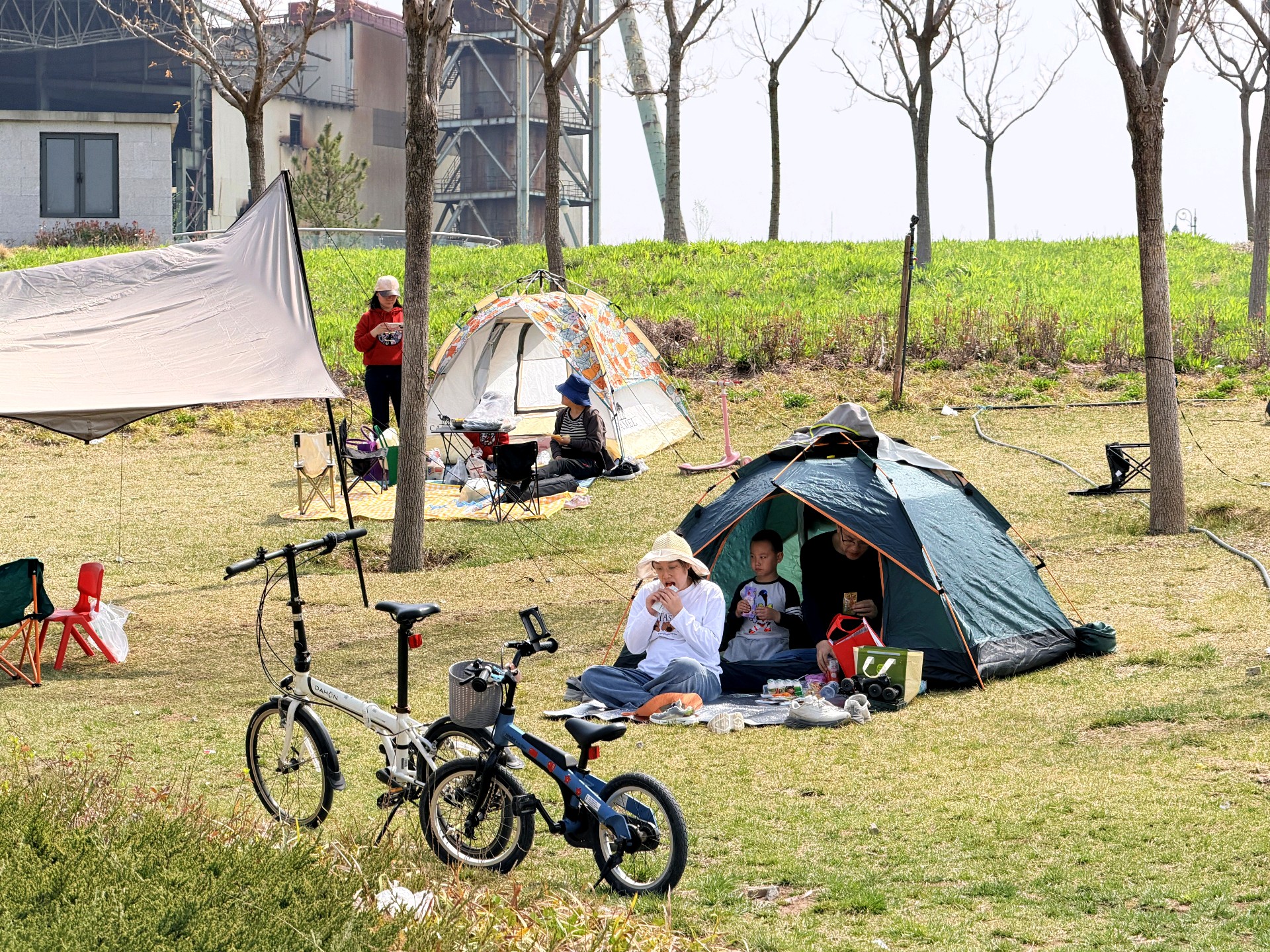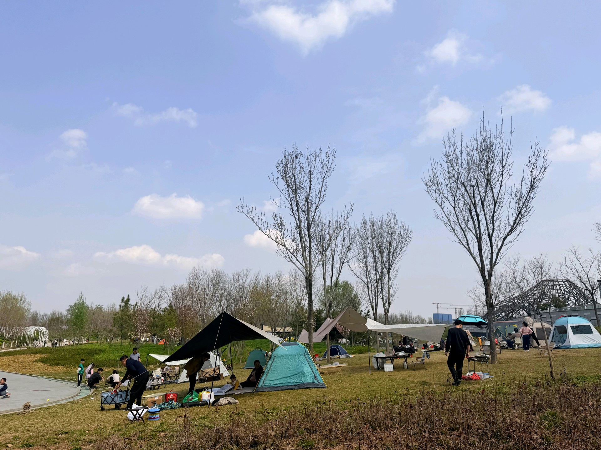 暖风轻拂的周日,来中央森林公园,抬眼是澄澈的蓝天白云,草坪上是游客安营扎寨,乐享春天的美好时光。