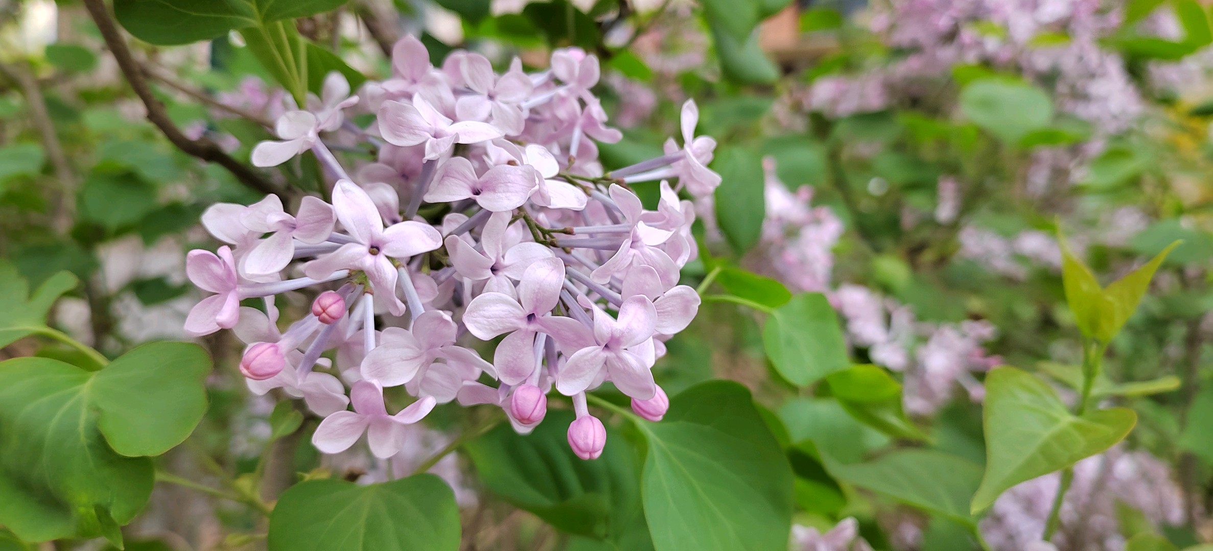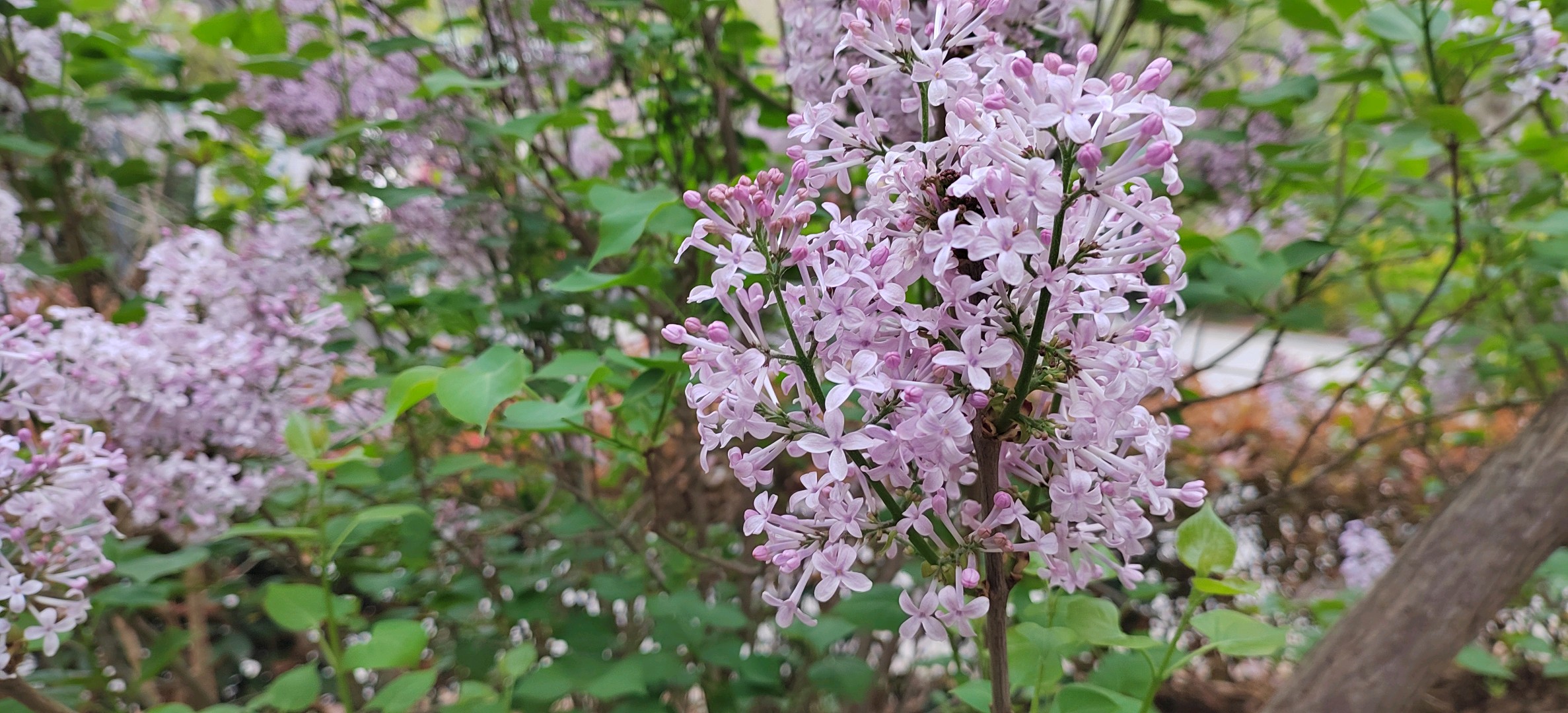 紫丁香是木樨科丁香属灌木或小乔木,高可达5米;树皮呈灰褐色或灰色。小枝、花序轴、花梗、苞片、花萼、幼叶两面以及叶柄均无毛而密被腺毛。叶片革质或厚纸质,卵圆形至肾形。圆锥花序直立,近球形或长圆形;花药黄色,位于距花冠管喉部0-4毫米处;花冠紫色,裂片呈直角开展,卵圆形、椭圆形至倒卵圆形。果倒卵状椭圆形、卵形至长椭圆形,先端长渐尖,光滑。花期为4-5月,果期为6-10月。