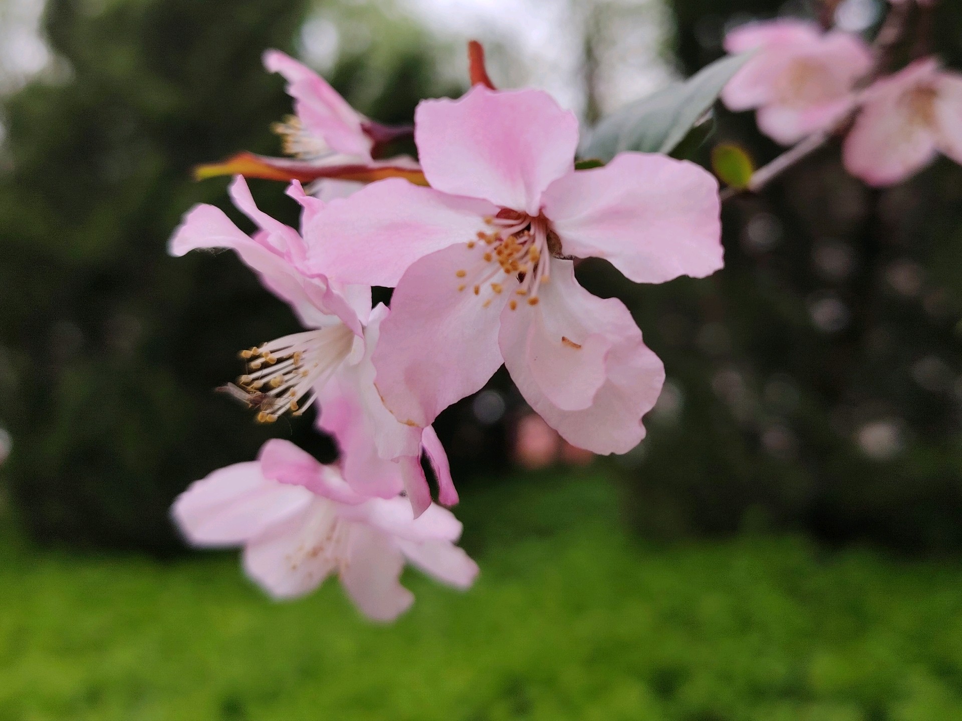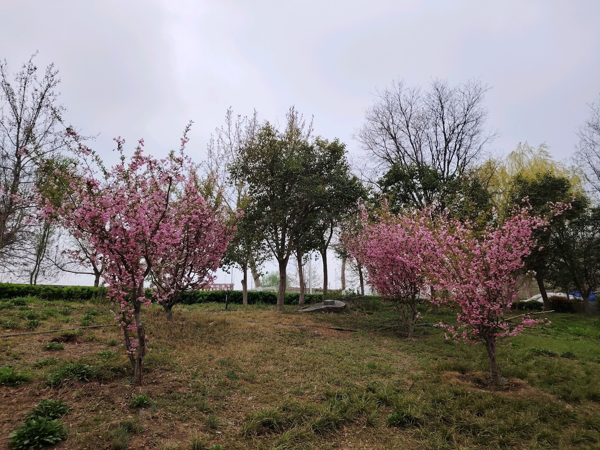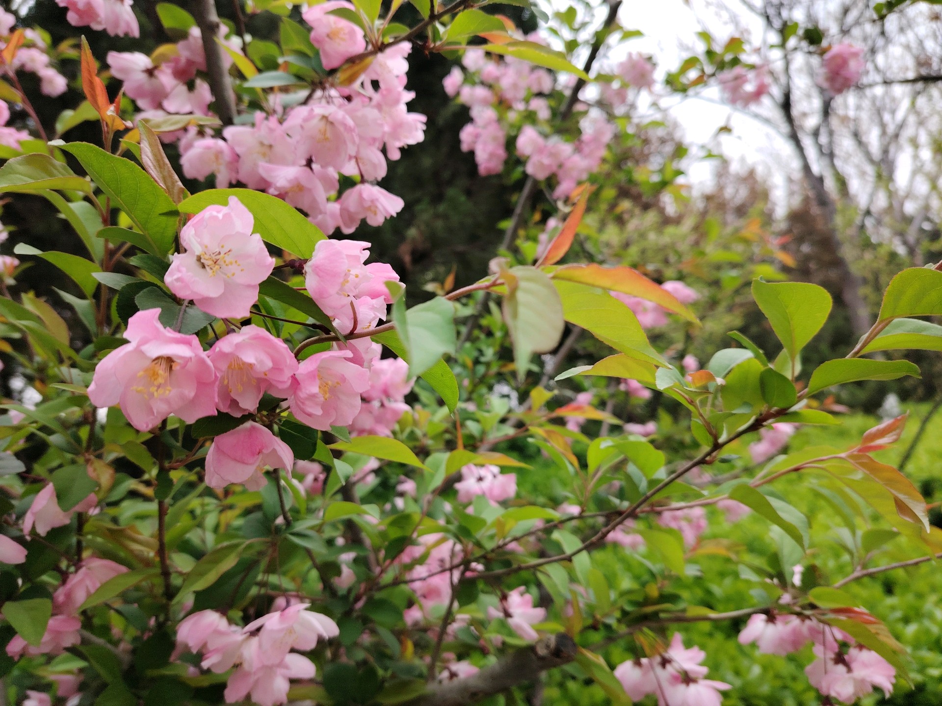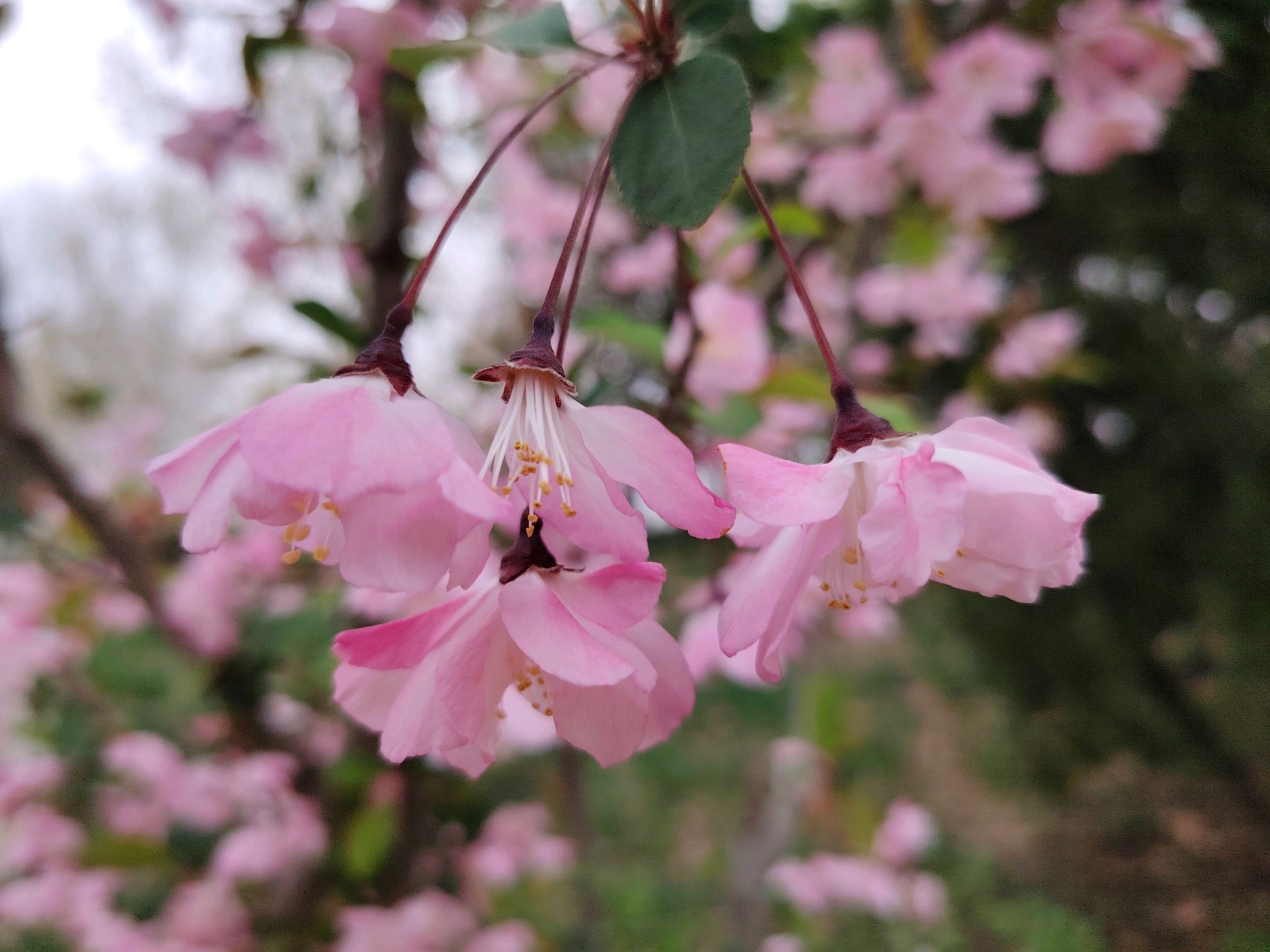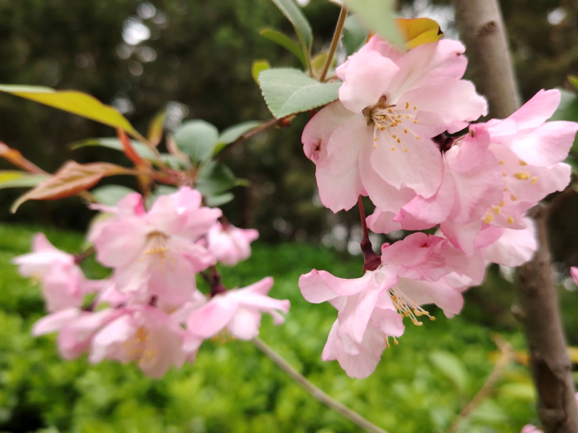 清晨,迎着初升的朝阳,一树树的海棠花迎风绽放,灿若云霞。