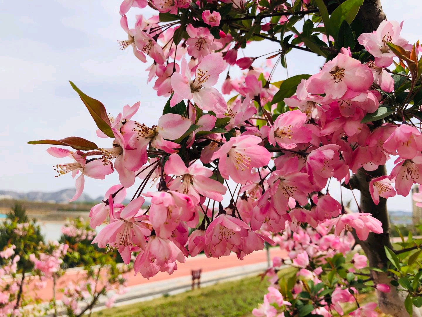 公园里的垂丝海棠花,花开正当时娇艳欲滴,美的使人陶醉,中央城市公园随拍