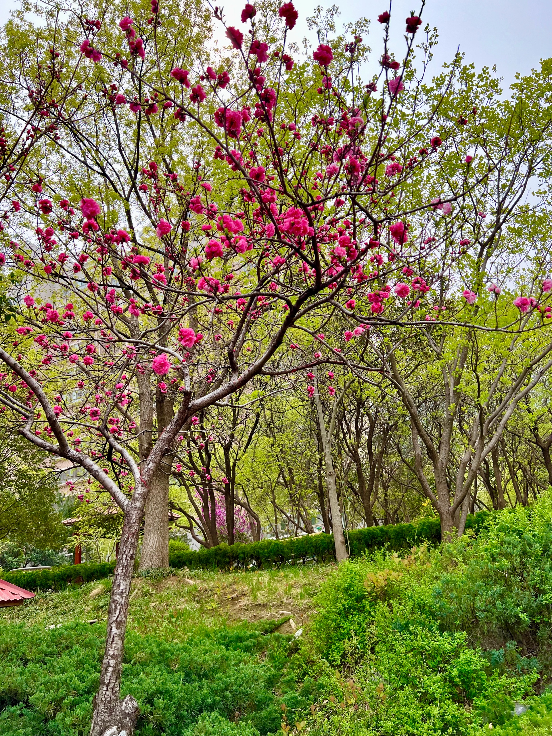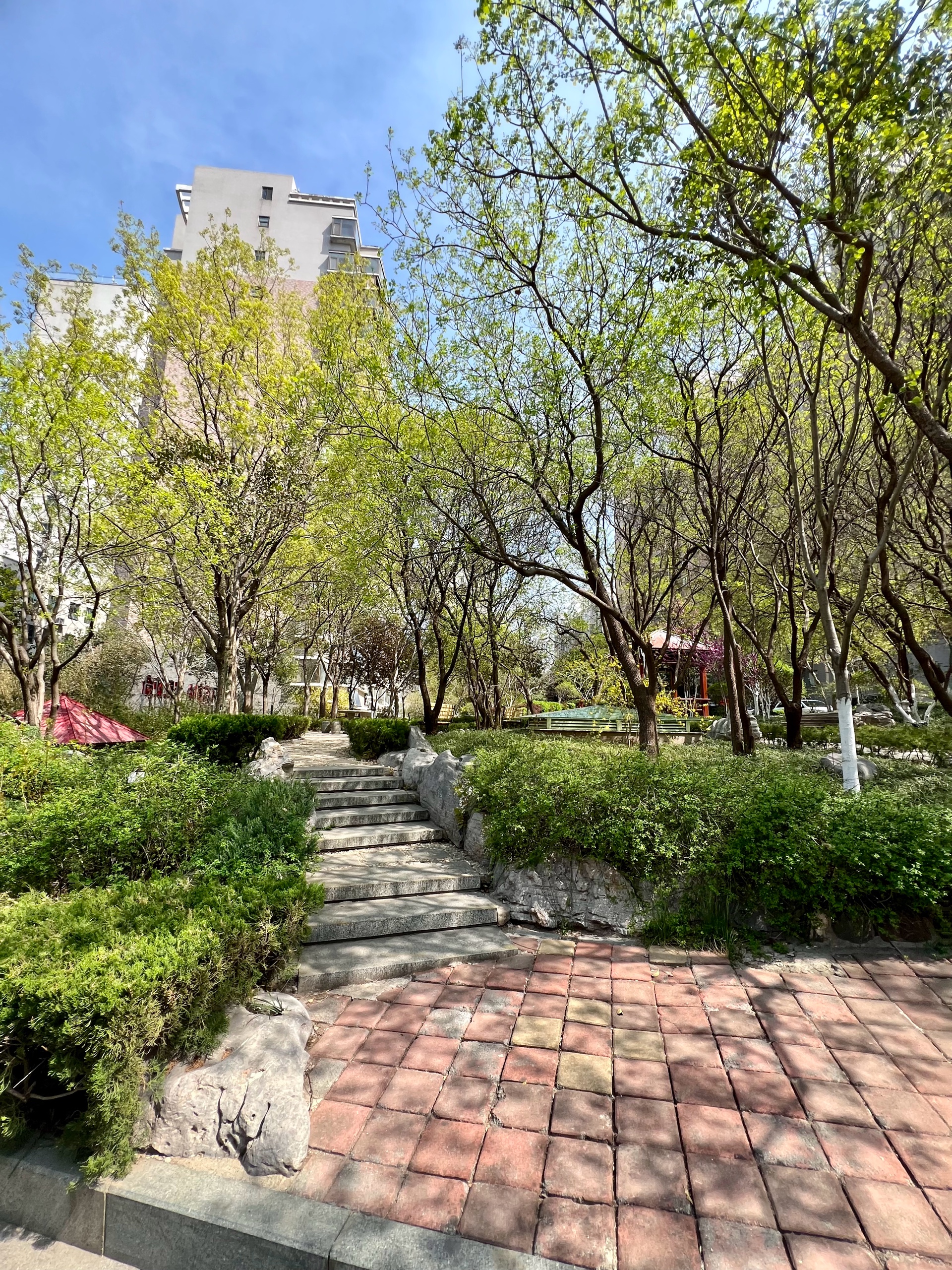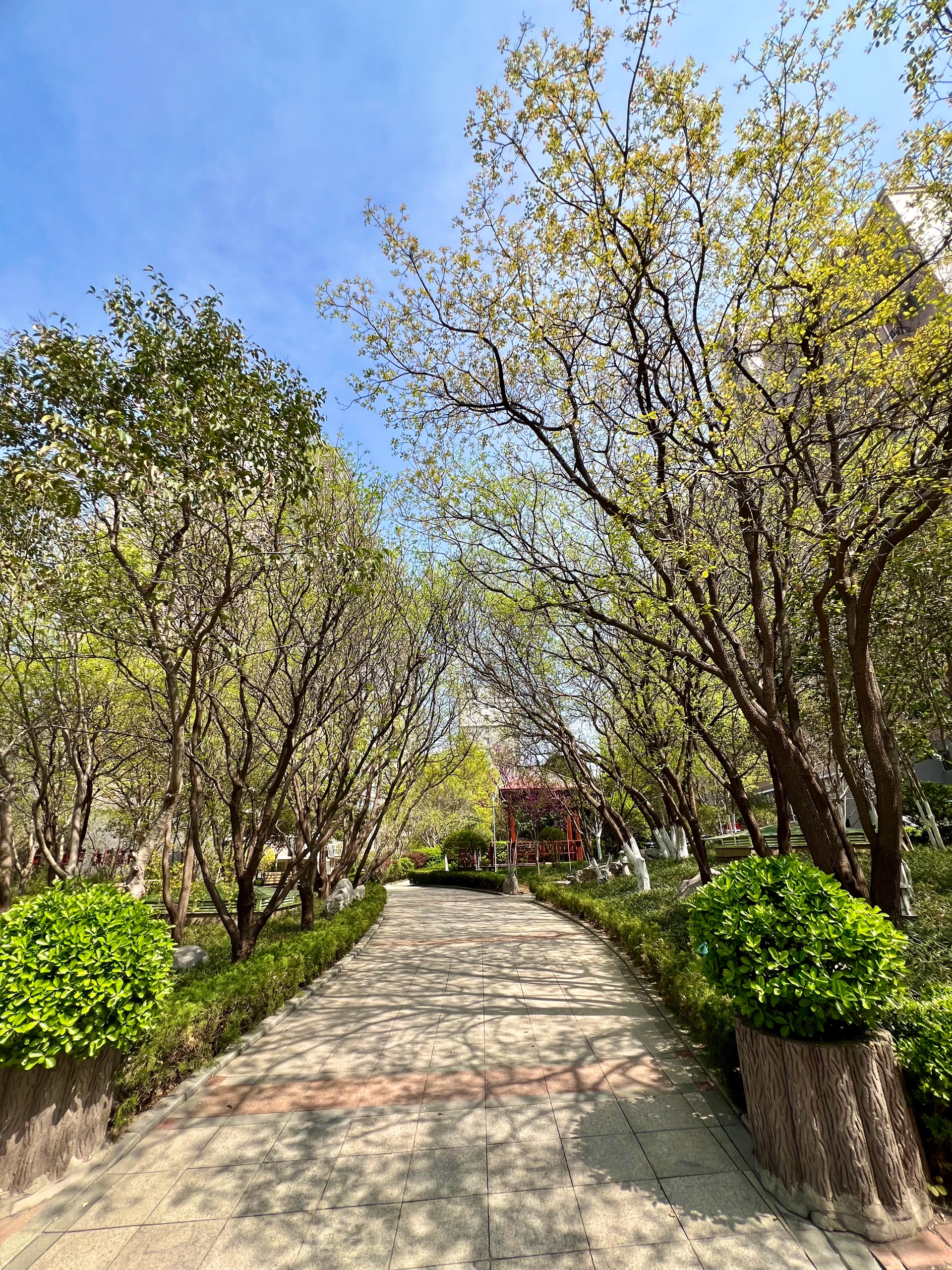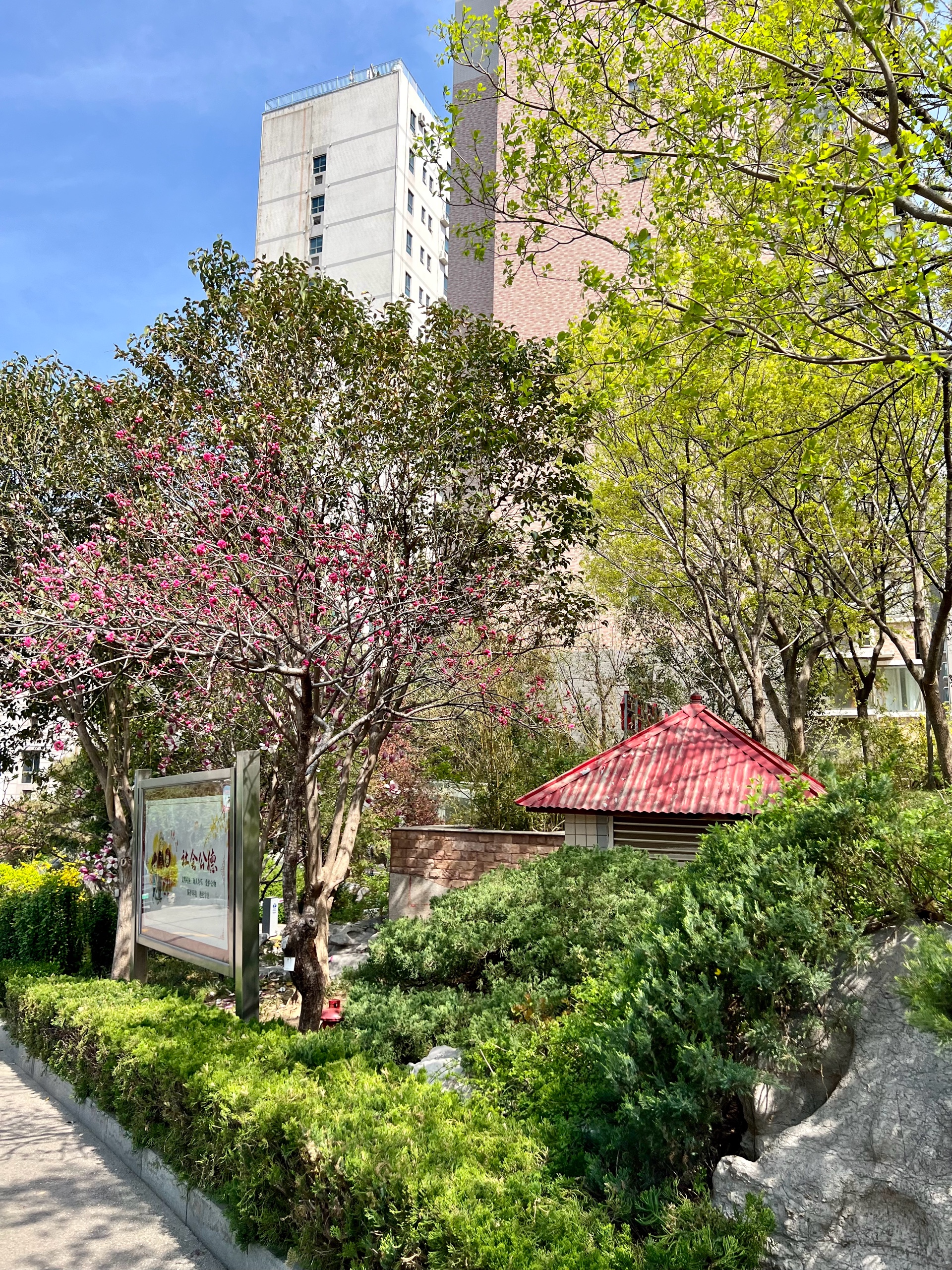 3月的最后一天,园区清新自然环境优美,花儿正艳,树叶吐新绿