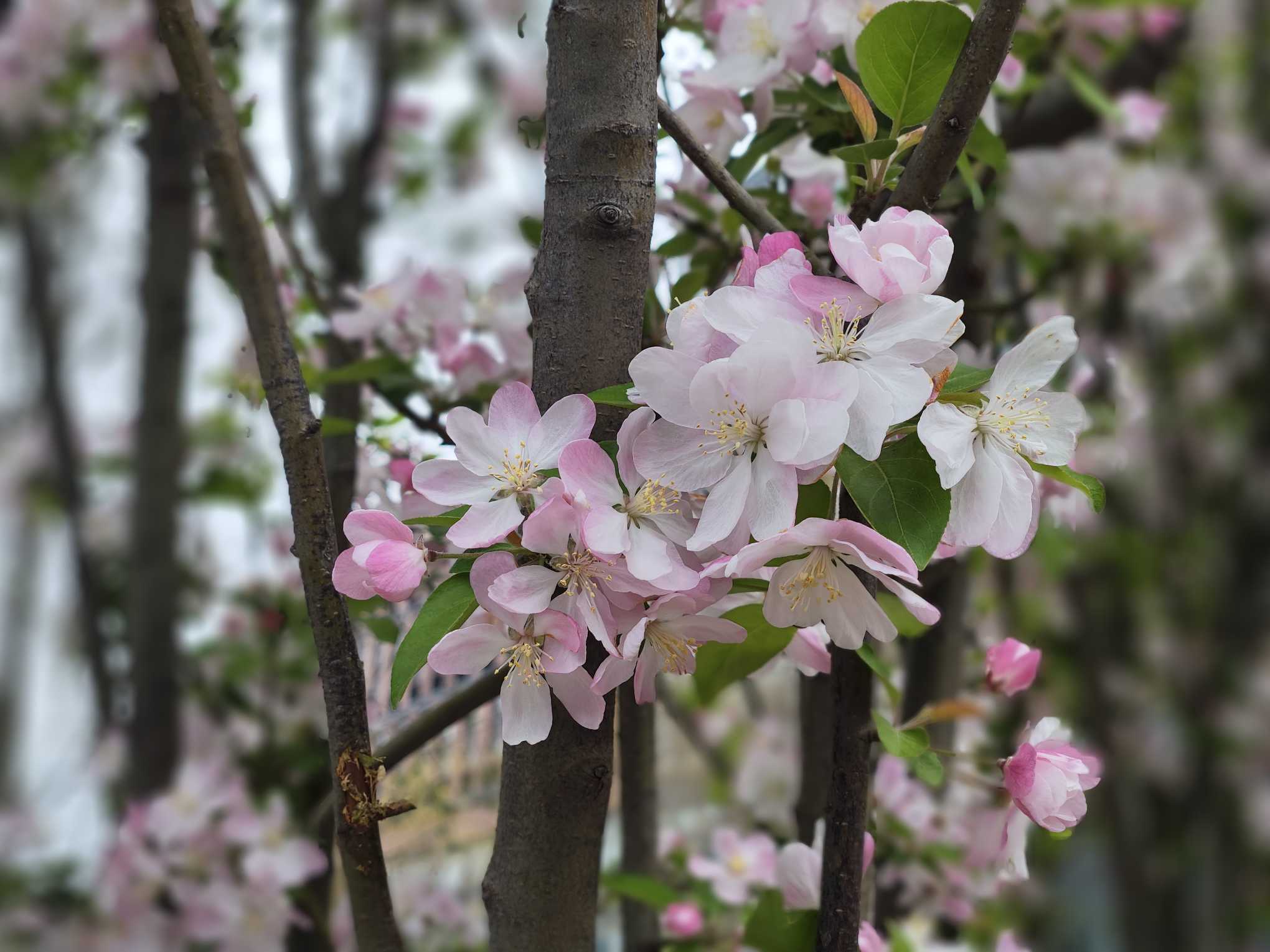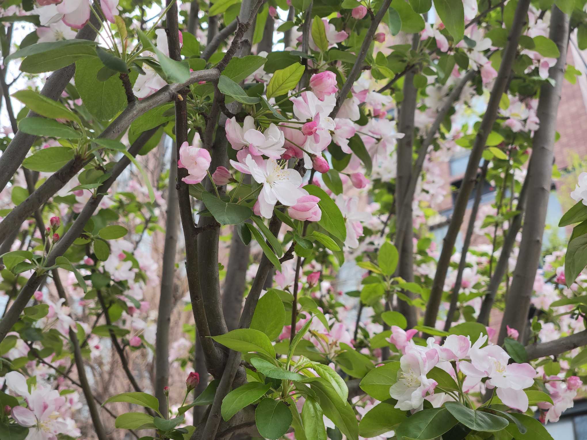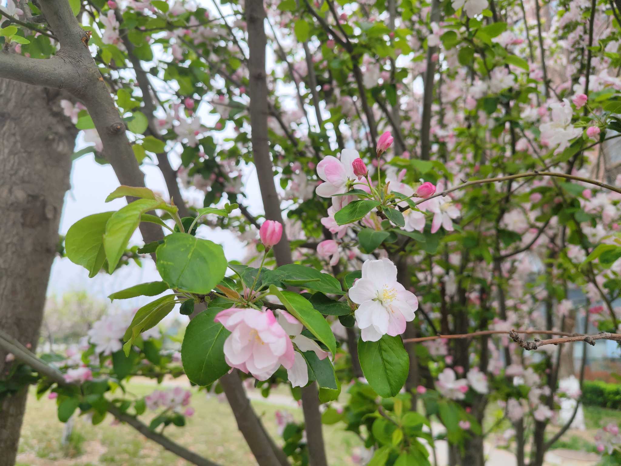 校园里的海棠花肆意绽放,粉白相间,浅红轻染,正如青春时光,干净、纯粹,带着恰到好处的温柔。一树海棠,半园春色,在书香与清风里静静绽放,把平凡的校园,晕染成了诗。
