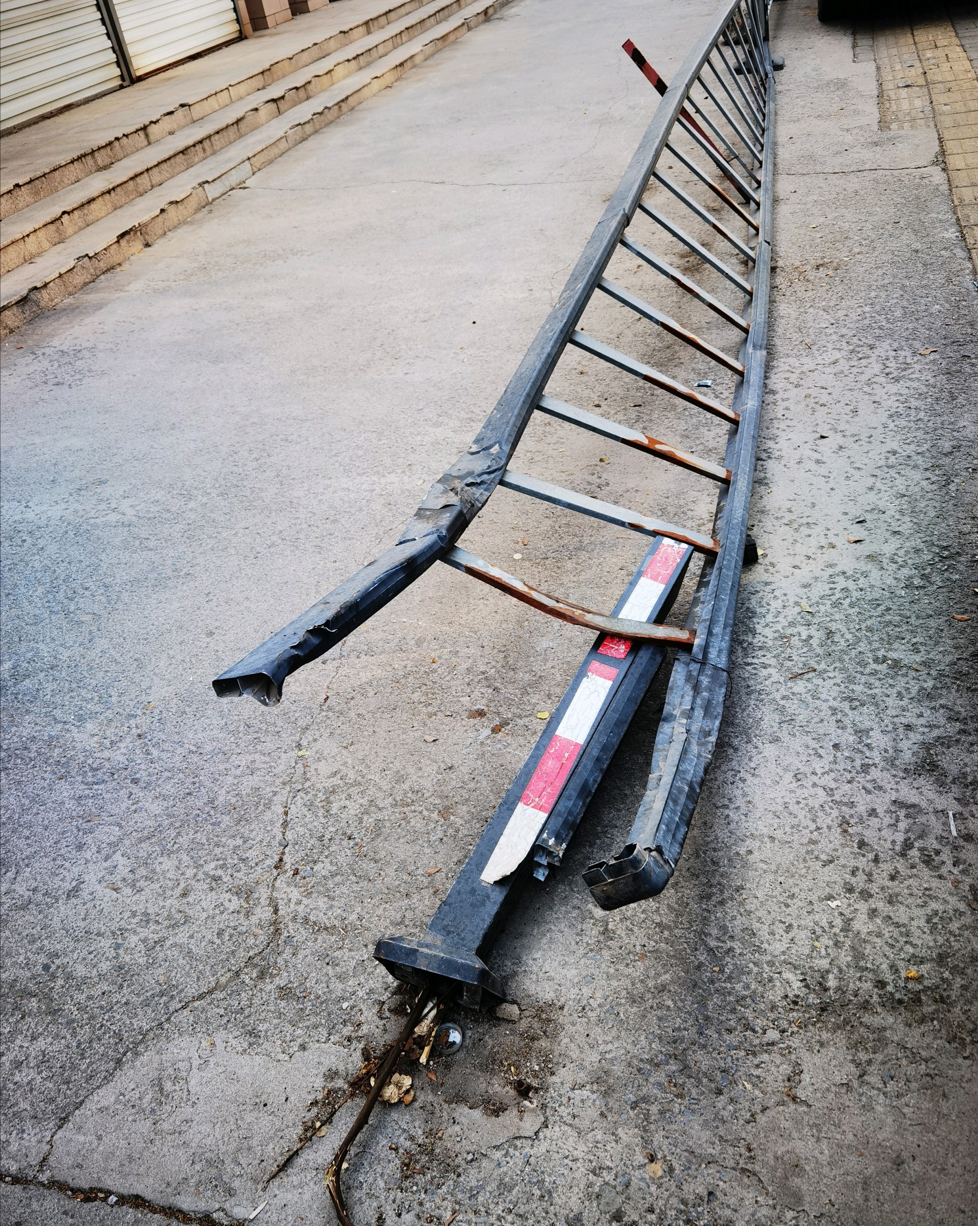 #共创美好随手拍#济南这里的交通隔离栏损坏歪倒在地,存安全隐患,盼修复4月1日,壹粉在济南市市中区阳光新路看到,戎盛苑小区门口右侧的交通隔离栏损坏了,歪倒在地翘起,给过往行人通行带来安全隐患,稍不注意就会被绊倒,后果不堪设想。希望有关部门及时修复,消除安全隐患。