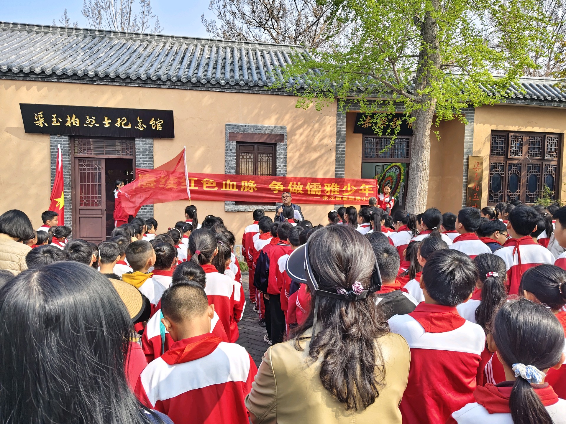 清明时节,雨润千花,松柏凝翠。为深切缅怀革命先烈,赓续红色基因,厚植家国情怀,4月1日上午,张汪镇皇殿岗小学全体师生齐聚渠玉柏纪念地,开展“清明祭英烈”主题祭扫活动。镇退役军人事务所秦科长应邀出席,与师生共同以鲜花寄哀思,以初心敬英魂。 📜 仪式:庄严致敬,缅怀致敬