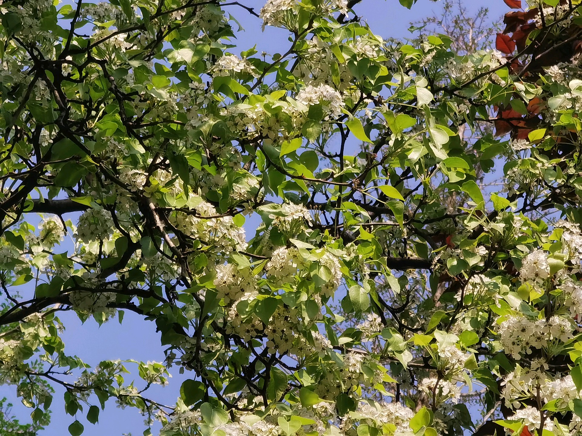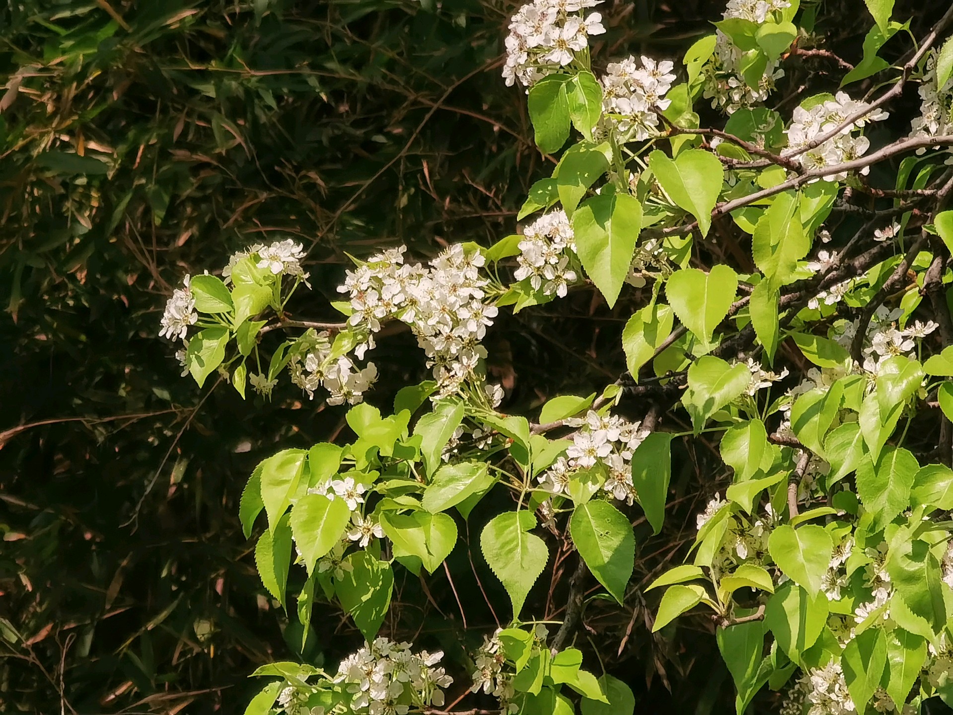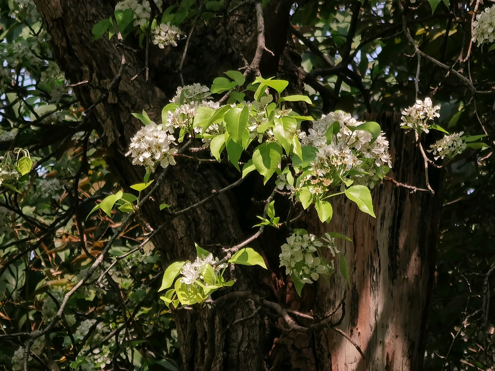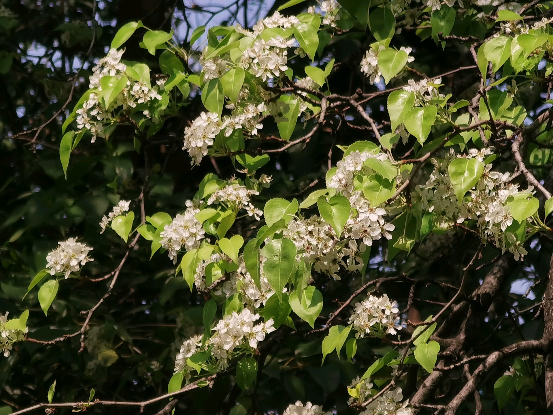 大明湖豆梨花开豆梨(Pyrus calleryana)是蔷薇科梨属的落叶乔木。它不仅是常见的观赏树种,其果实(豆梨)虽然个头小,口感酸涩,但具有药用价值,常用于润肺化痰。在春季,豆梨满树繁花,远看如雪,是城市中非常受欢迎的赏春植物。