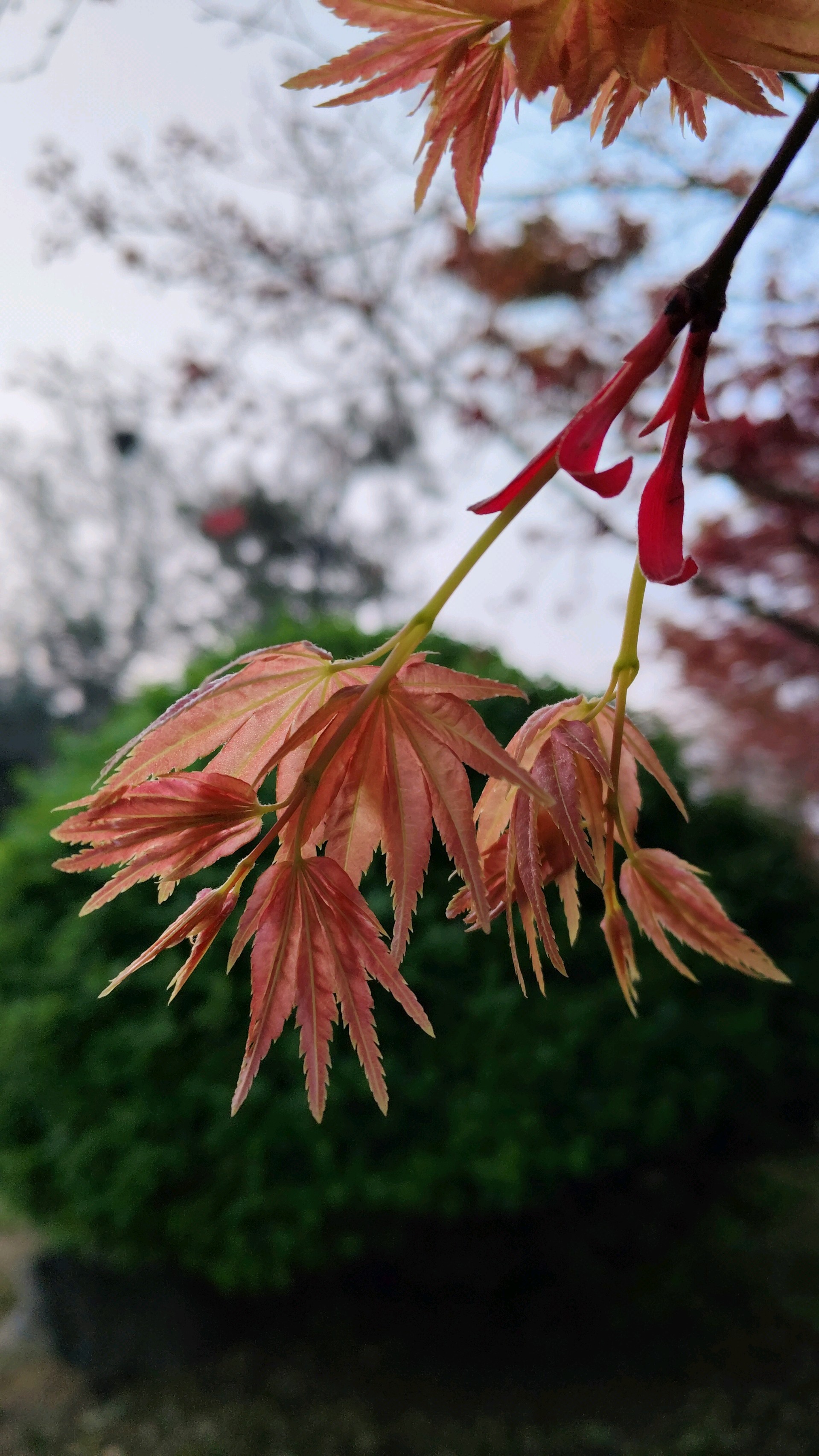 春天的枫叶,跟秋天不一样。不是那种火红火红的颜色,而是淡淡的红,带着点嫩绿色,看着很新鲜。刚长出来的小叶子软软的,挂在树枝上,风一吹轻轻晃。不张扬,也不耀眼,就是普普通通的好看。走在树下看着心里就是美美哒。不像秋天那么热闹,春天的枫叶安安静静的,带着一股生机。简简单单的,带着一种亲切。