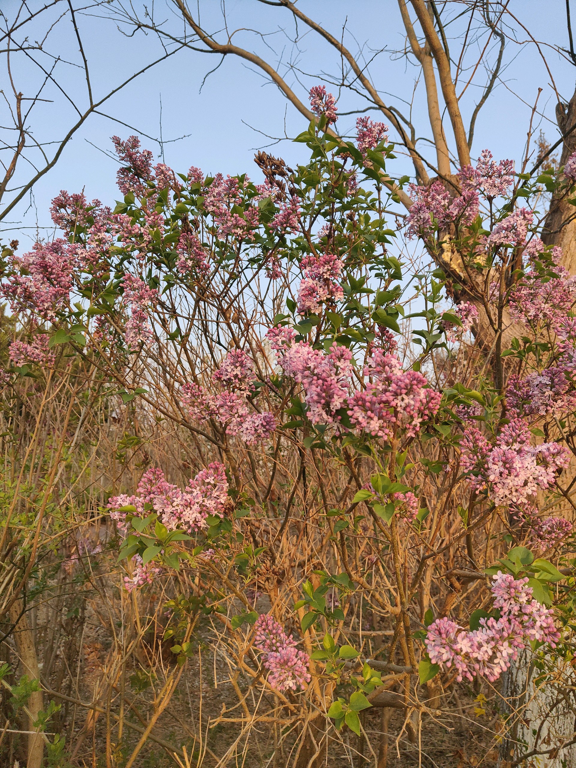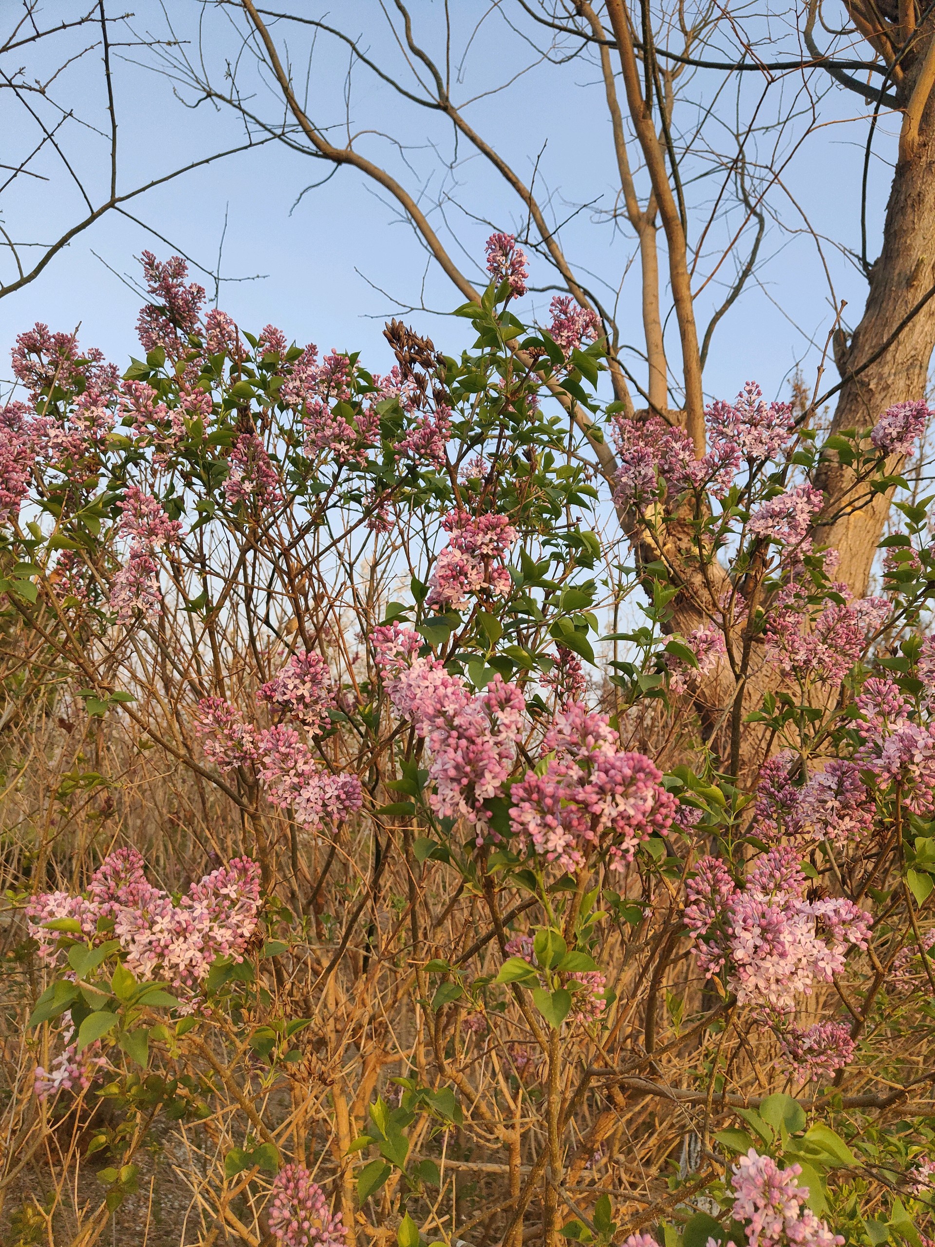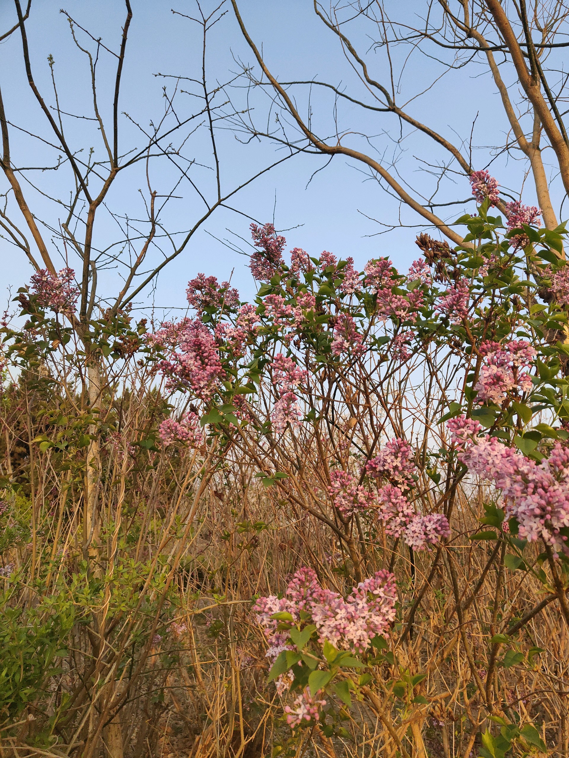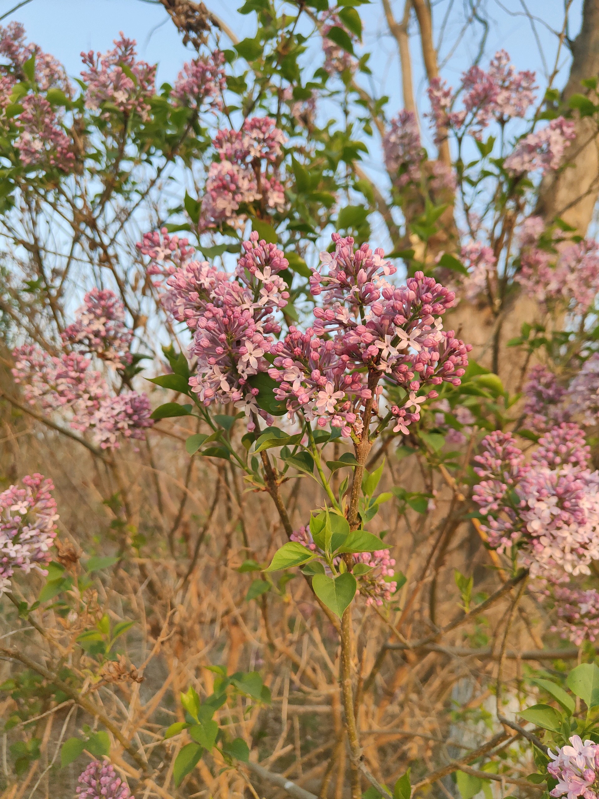 清晨我漫步在公园里看着阳光洒在丁香树上,紫丁香如同一片片淡紫色的云霞,轻轻飘落在枝头,与嫩绿的叶子相互映衬,构成一幅清新淡雅的画卷。微风拂过,丁香花的香气随风飘散,香飘满园,仿佛为整个公园披上了一层梦幻的香雾,让我陶醉在其中。