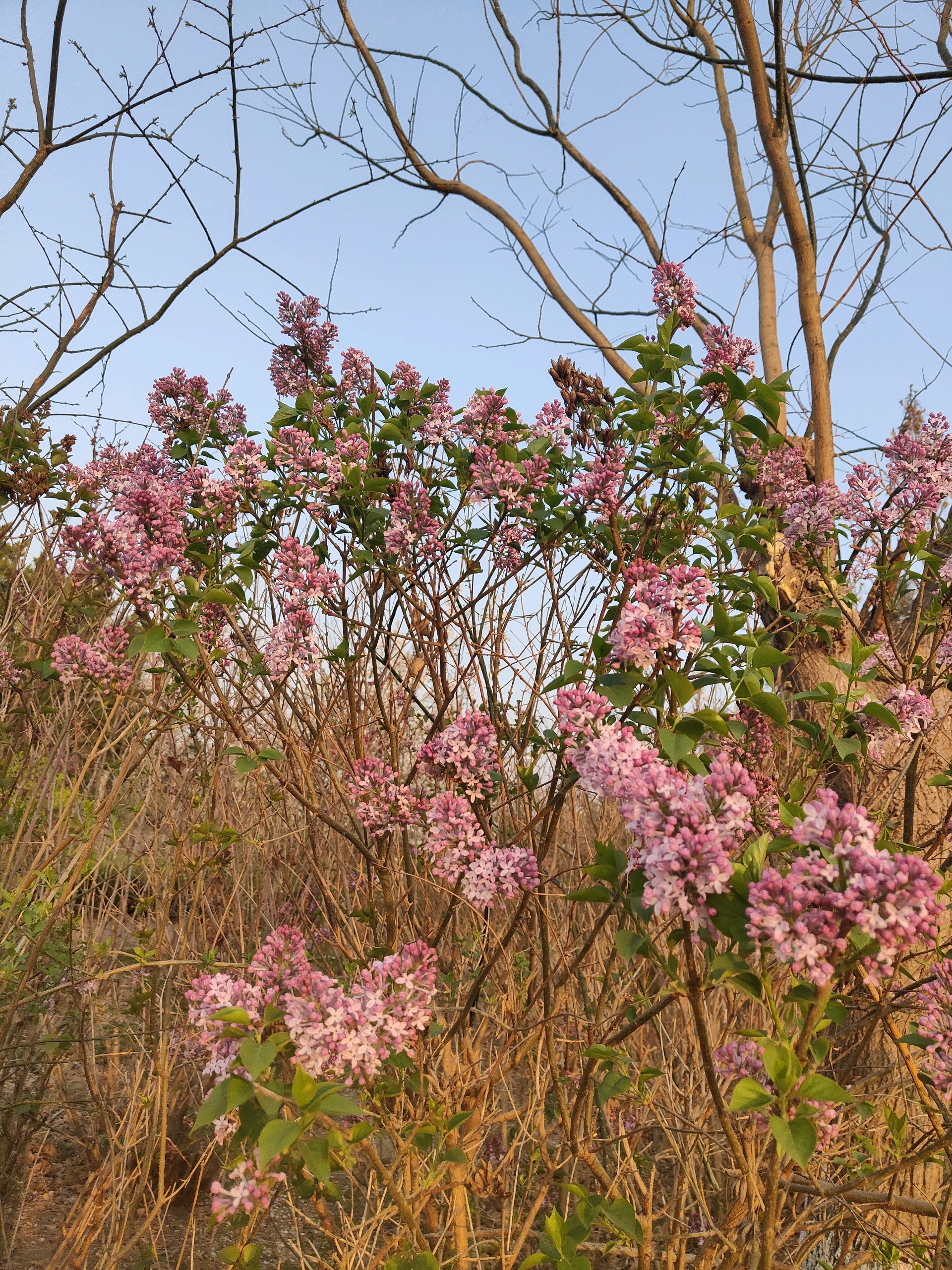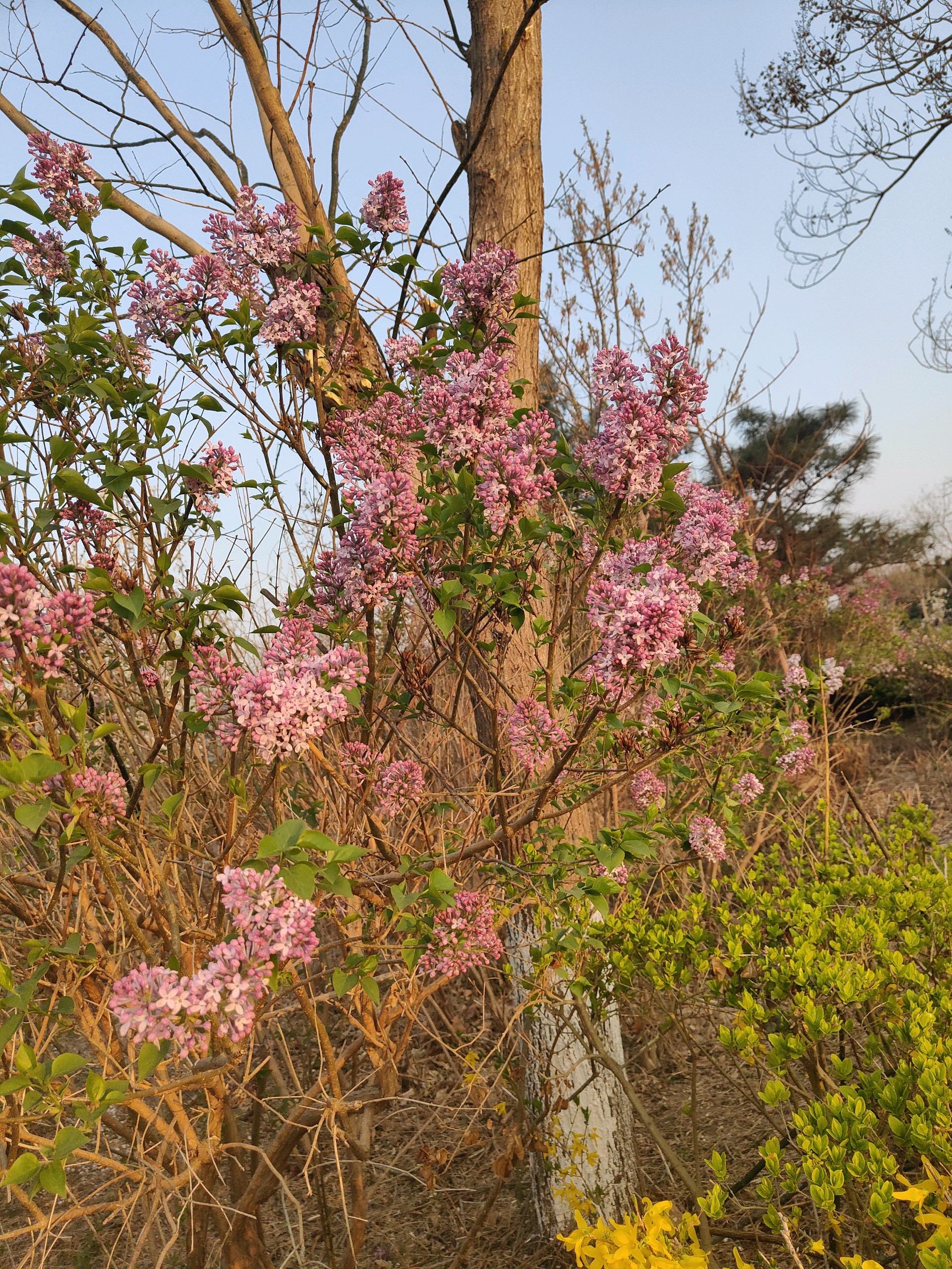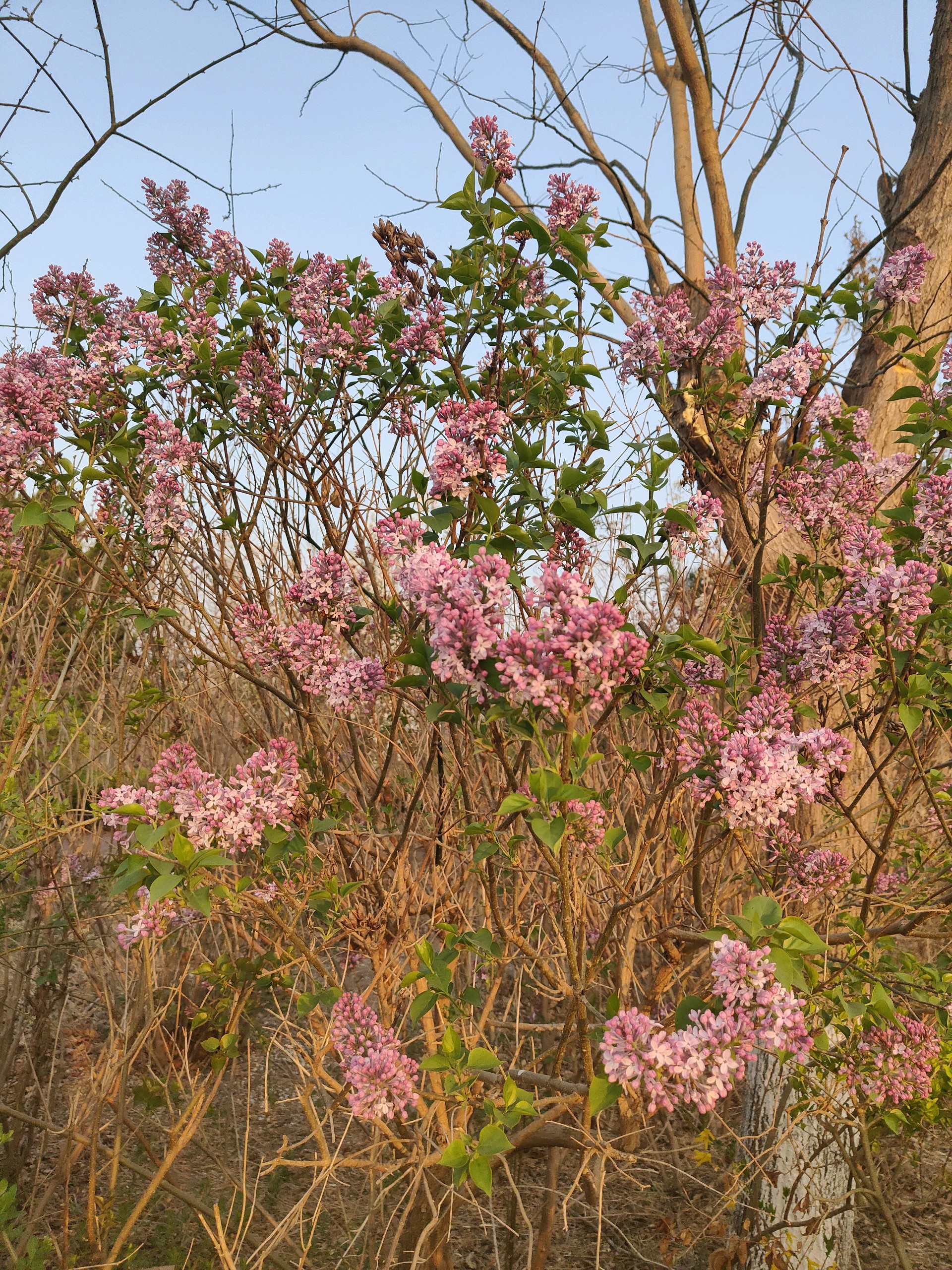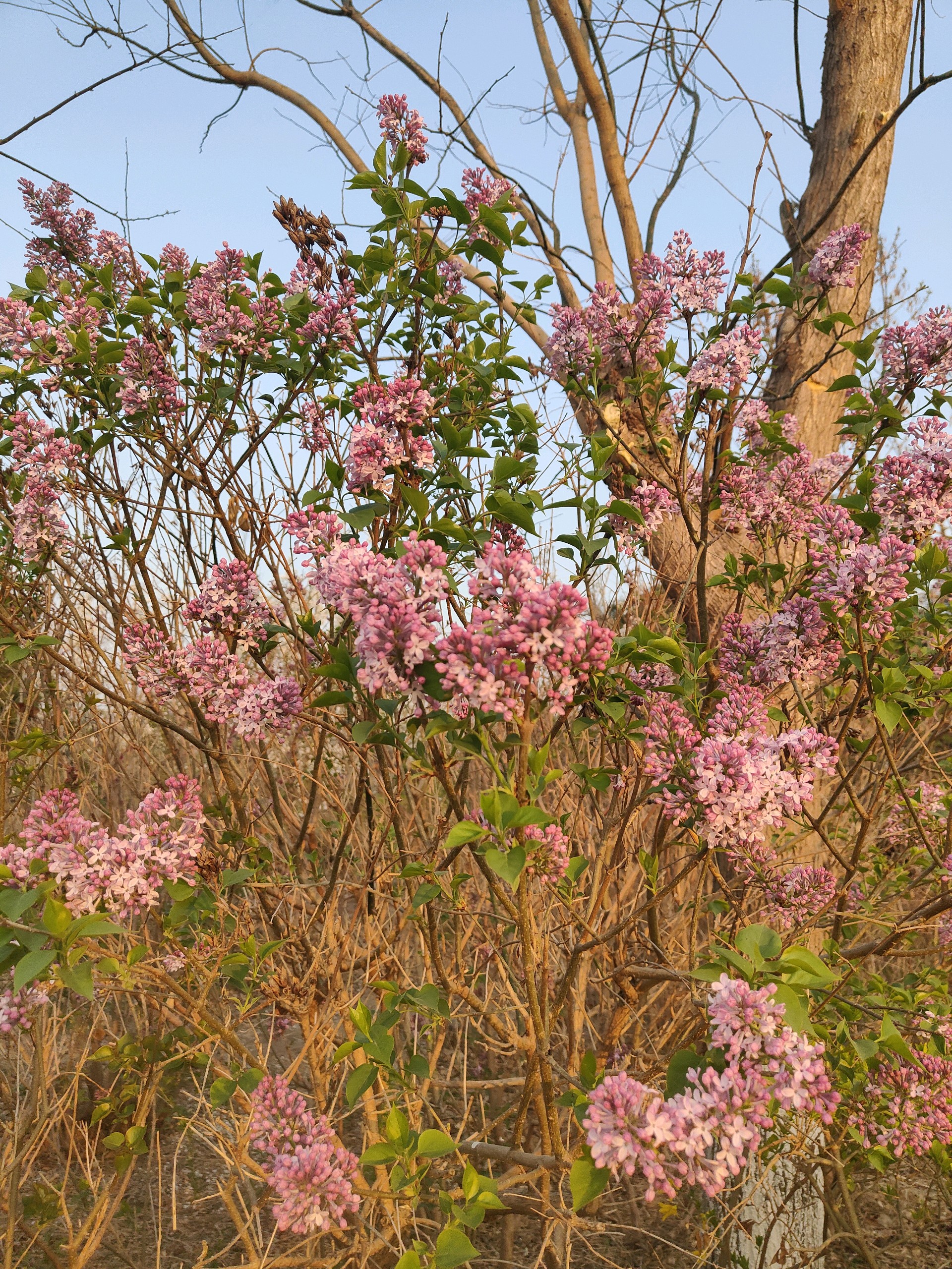 清晨我漫步在公园里看着阳光洒在丁香树上,紫丁香如同一片片淡紫色的云霞,轻轻飘落在枝头,与嫩绿的叶子相互映衬,构成一幅清新淡雅的画卷。微风拂过,丁香花的香气随风飘散,香飘满园,仿佛为整个公园披上了一层梦幻的香雾,让我陶醉在其中。
