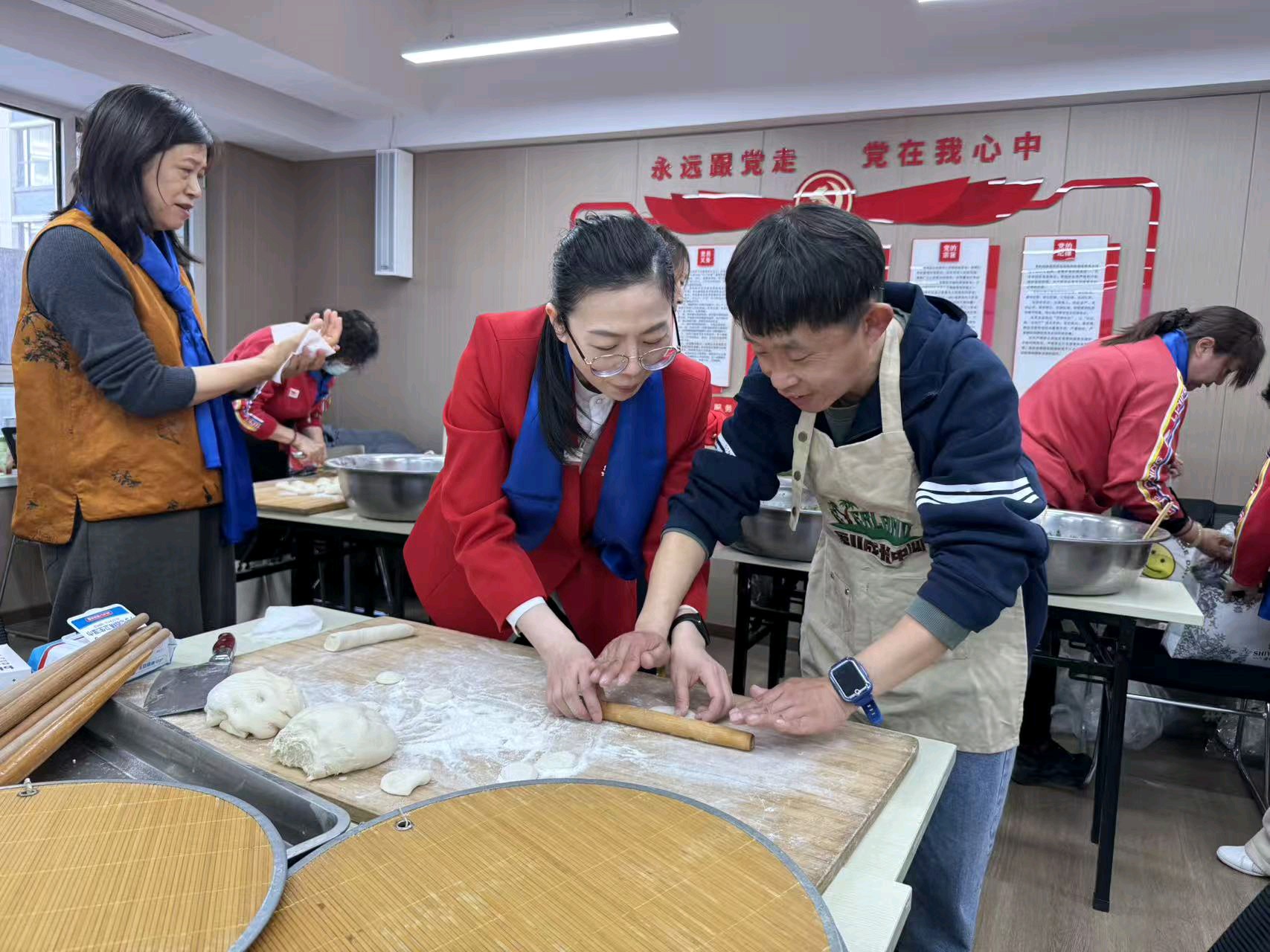 作为活动核心,山东大嫂专业老师现场教授衣物收纳技能,志愿者全程辅助,帮助孤独症青年掌握生活自理技巧。尾声大家一同包饺子、合影留念,在温馨氛围中感受陪伴与温暖。