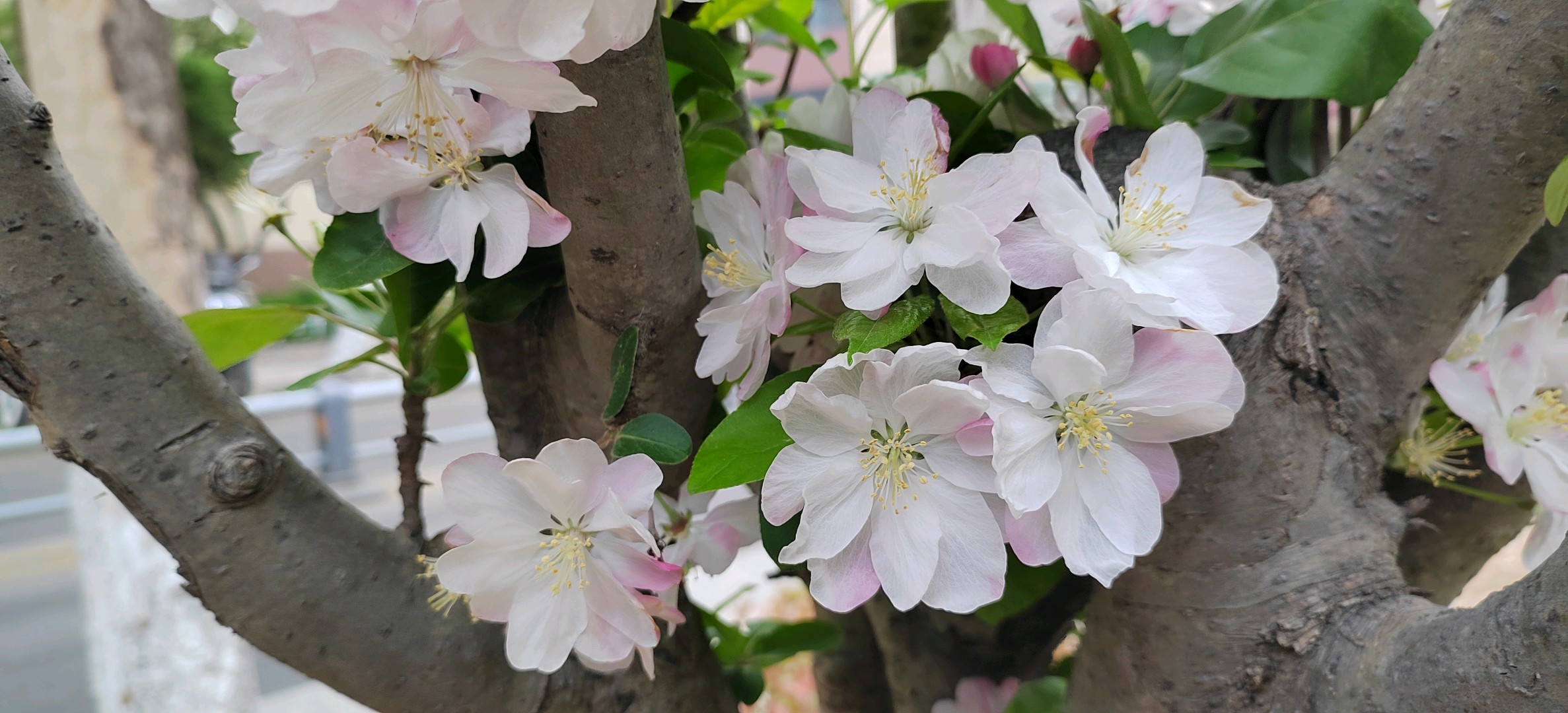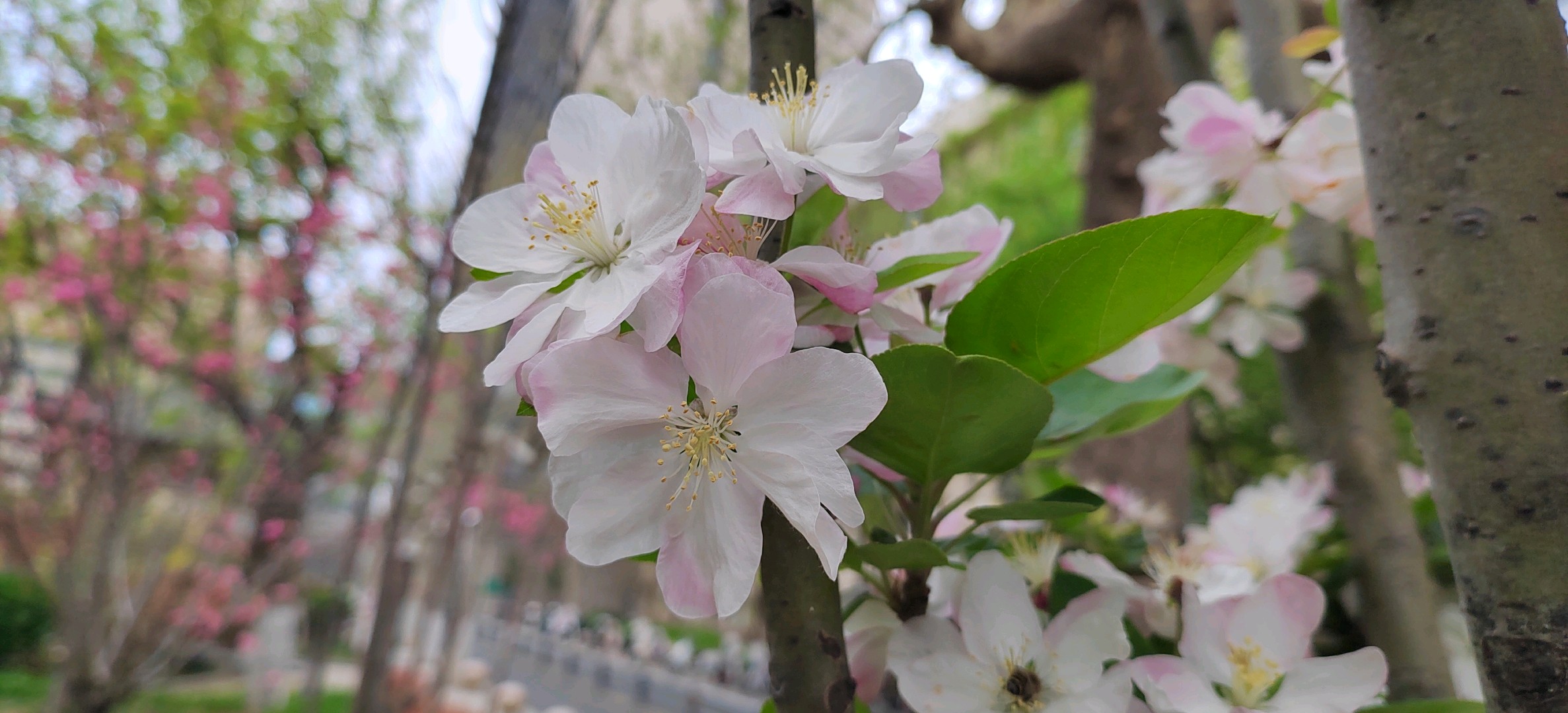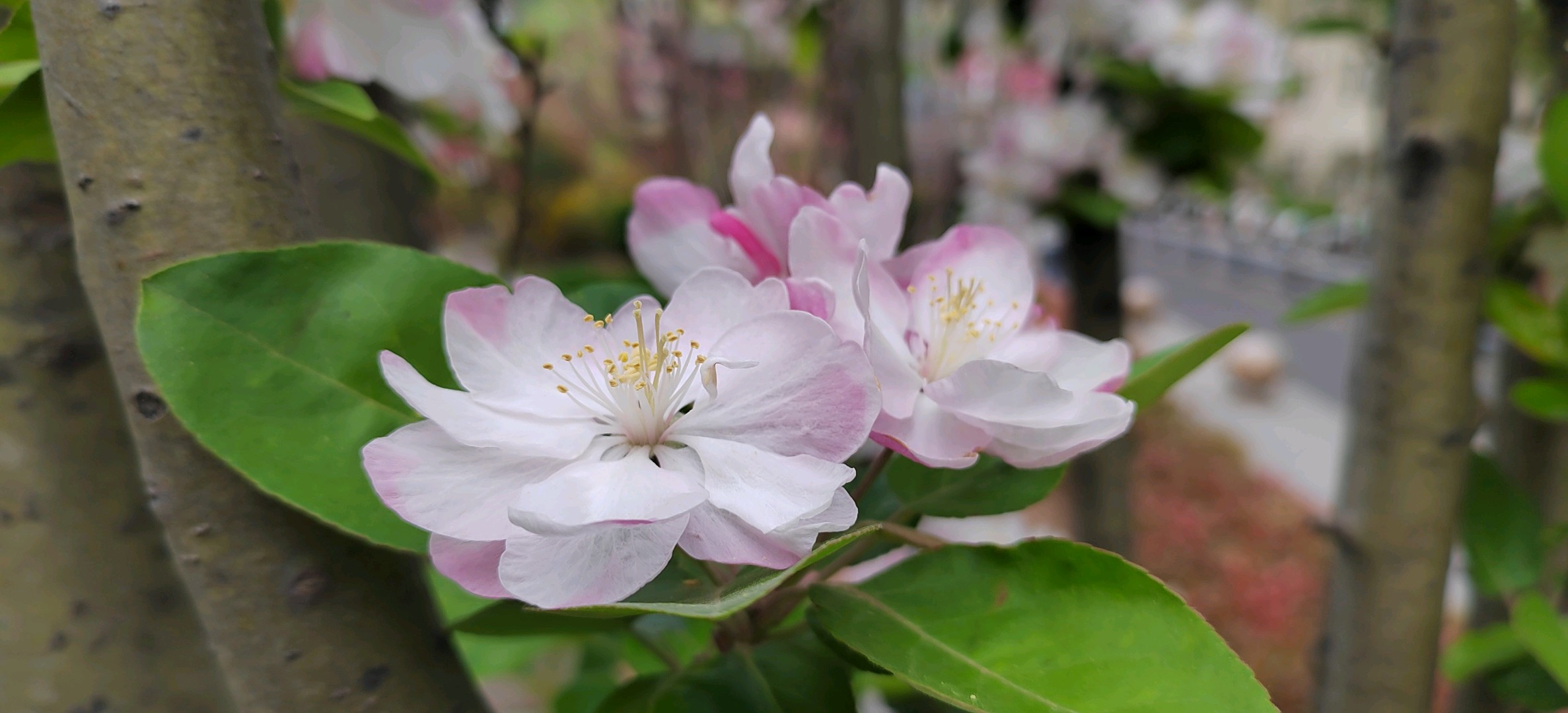 西府海棠是蔷薇科苹果属小乔木,为中国的特有植物。高达2.5-5米,树枝直立性强。叶片较狭长,先端急尖或渐尖,基部楔形稀近圆形,边缘有尖锐锯齿。伞形总状花序,有花4-7朵,集生于小枝顶端。果实近球形,红色,萼洼梗洼均下陷,萼片多数脱落,少数宿存。花期4-5月,果期8-9月。