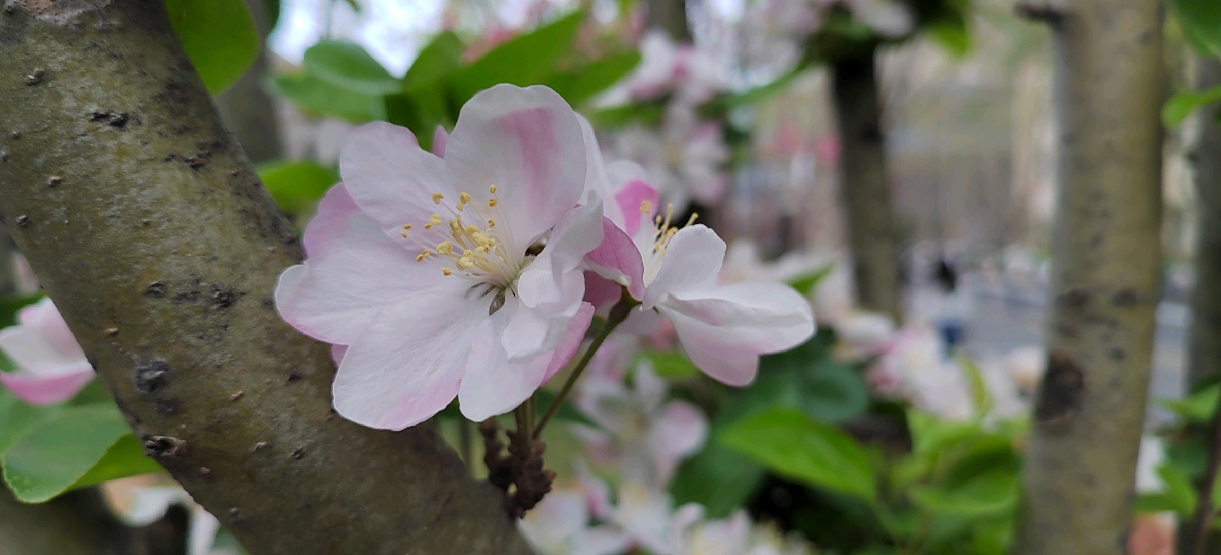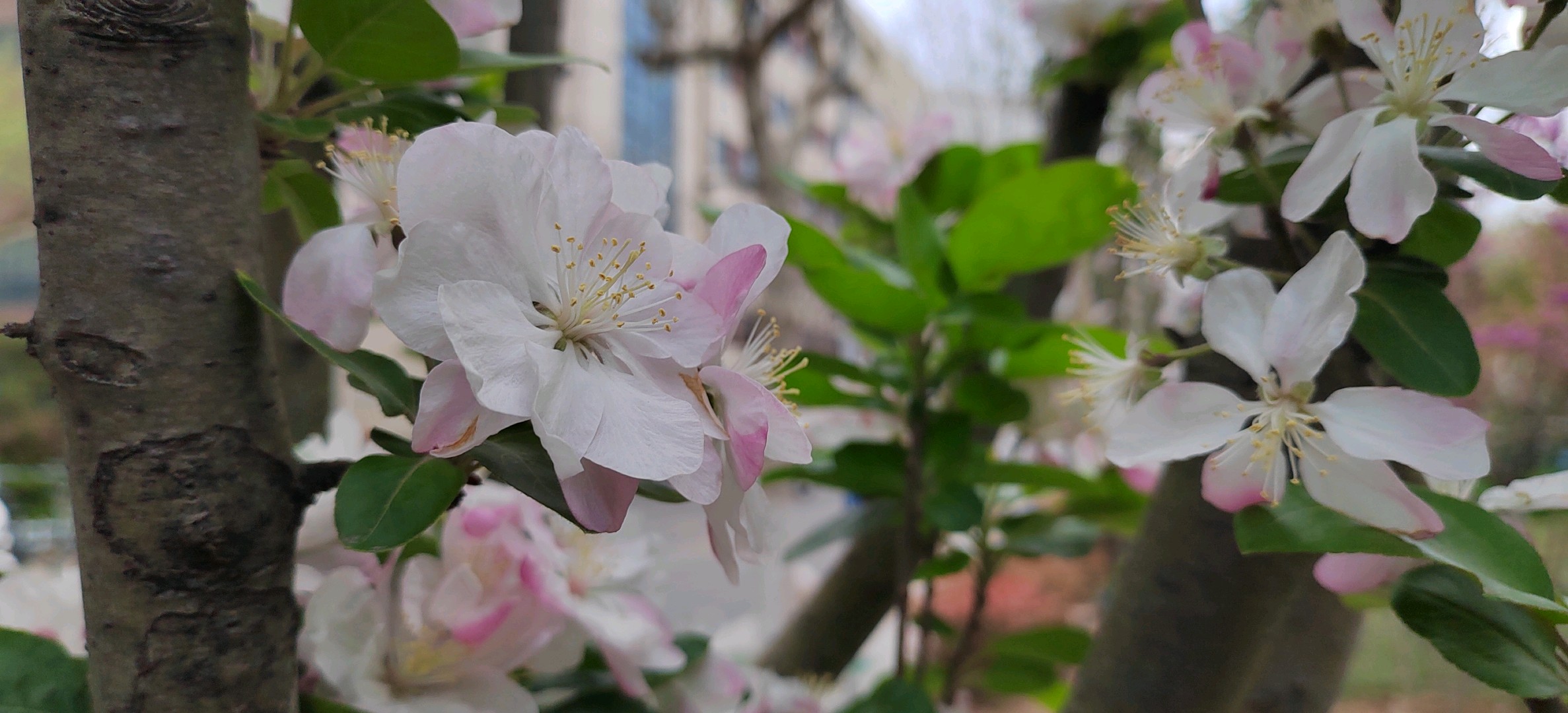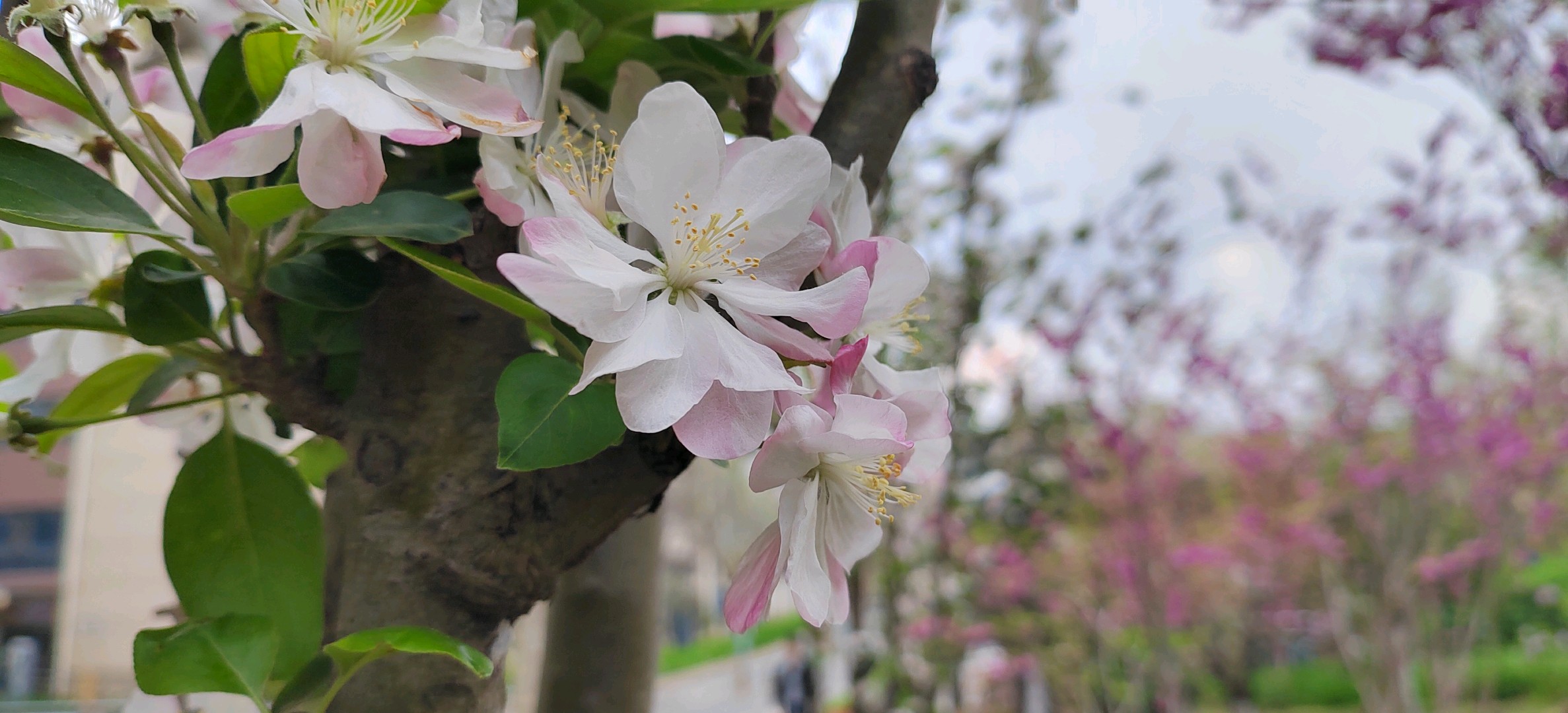 西府海棠是蔷薇科苹果属小乔木,为中国的特有植物。高达2.5-5米,树枝直立性强。叶片较狭长,先端急尖或渐尖,基部楔形稀近圆形,边缘有尖锐锯齿。伞形总状花序,有花4-7朵,集生于小枝顶端。果实近球形,红色,萼洼梗洼均下陷,萼片多数脱落,少数宿存。花期4-5月,果期8-9月。