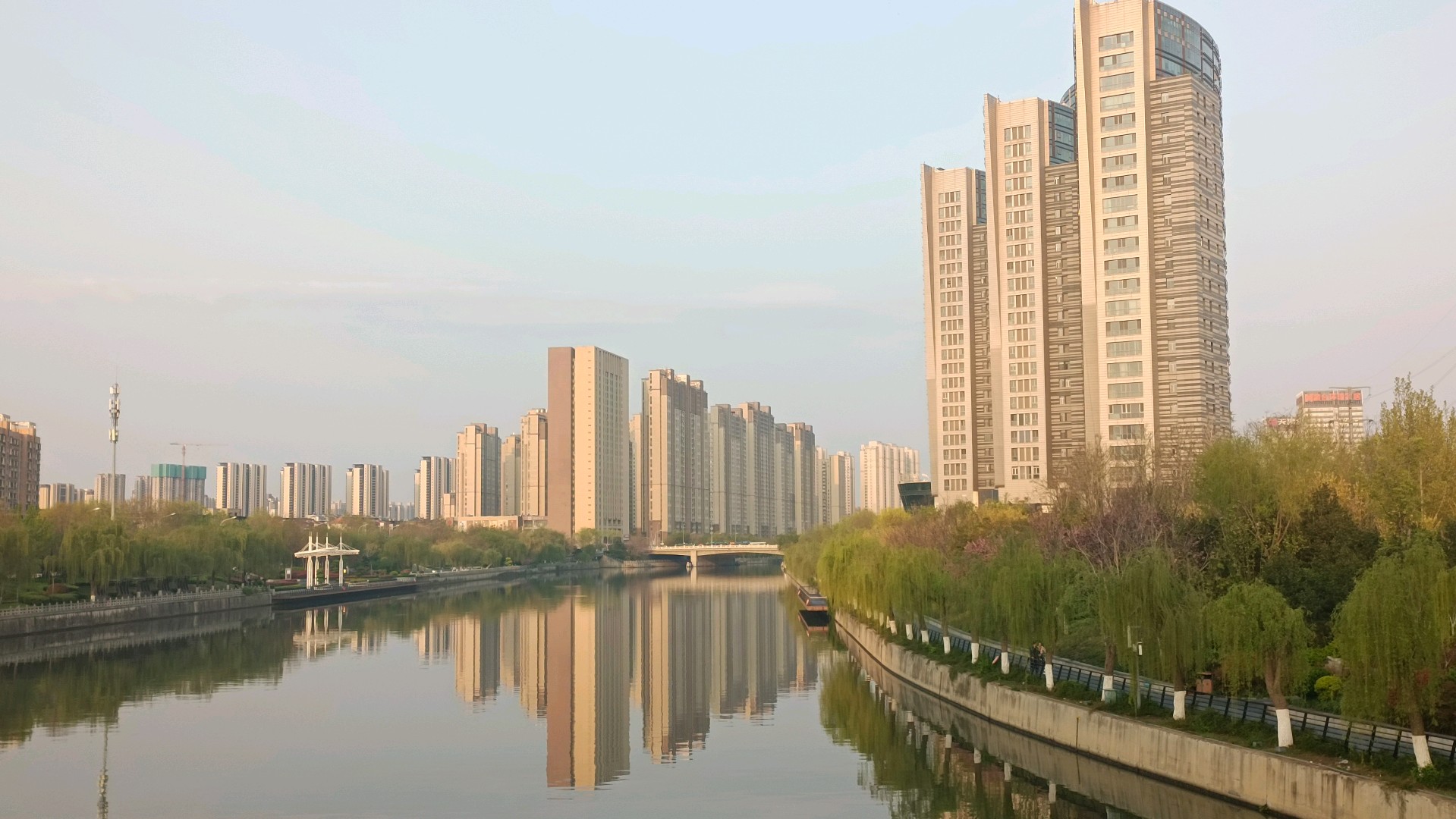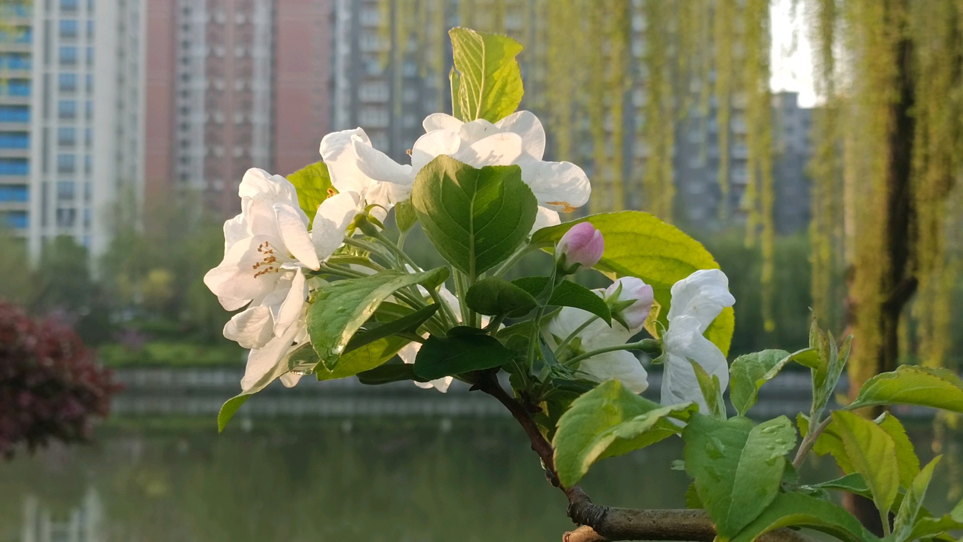 “随风潜入夜,润物细无声”一觉醒来方知昨夜降雨了。雨水过后,空气清新,早晨来到小清河畔,漫步岸边,惬意无比。托着雨珠的花掰在阳光下格外娇嫩,杨柳依依,波光粼粼,泉城的早晨令人陶醉。