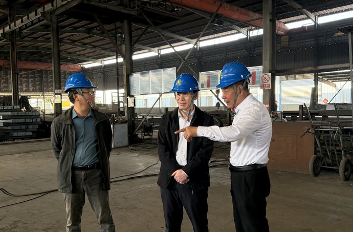 在枣庄群鑫金属制造股份有限公司,姚三石走进生产车间,与委员企业家张新文深入交流,详细了解企业生产经营、技术创新、市场拓展等情况,倾听企业发展诉求,鼓励企业坚定信心、抢抓机遇,持续提升核心竞争力。