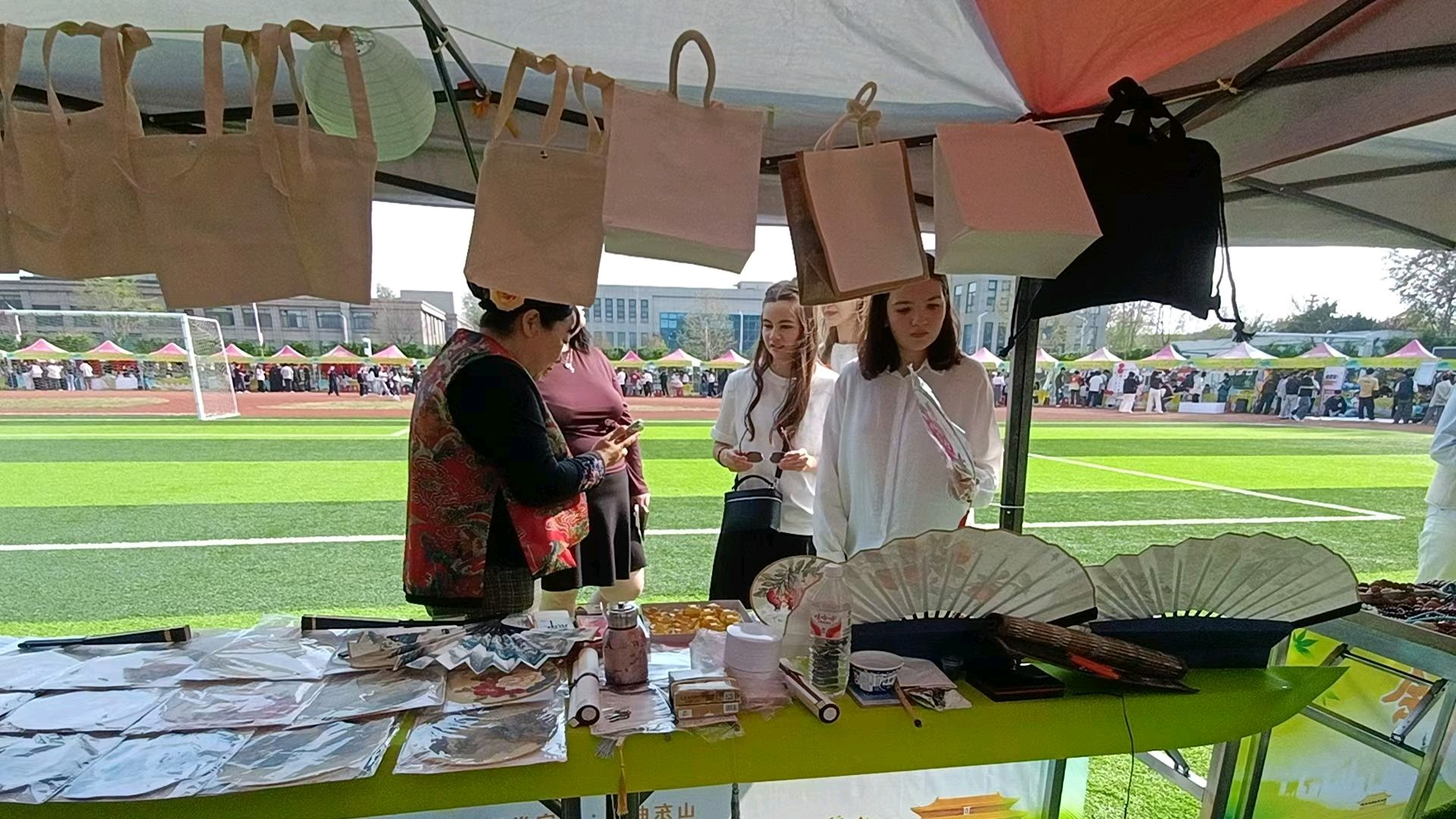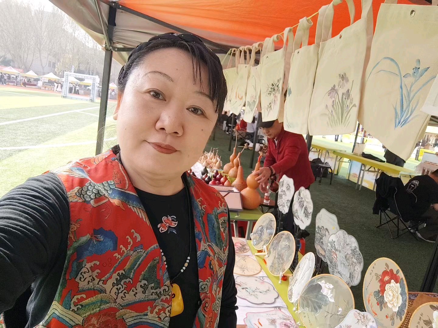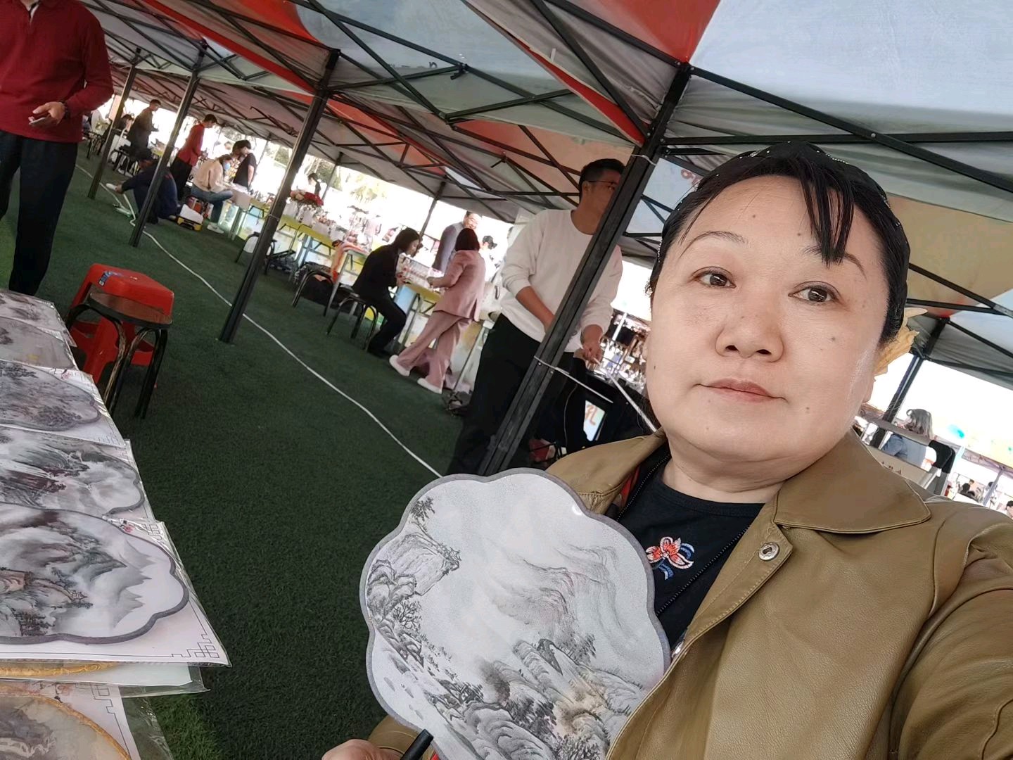 摊前立,赏琳琅佳制,墨彩盈裳。