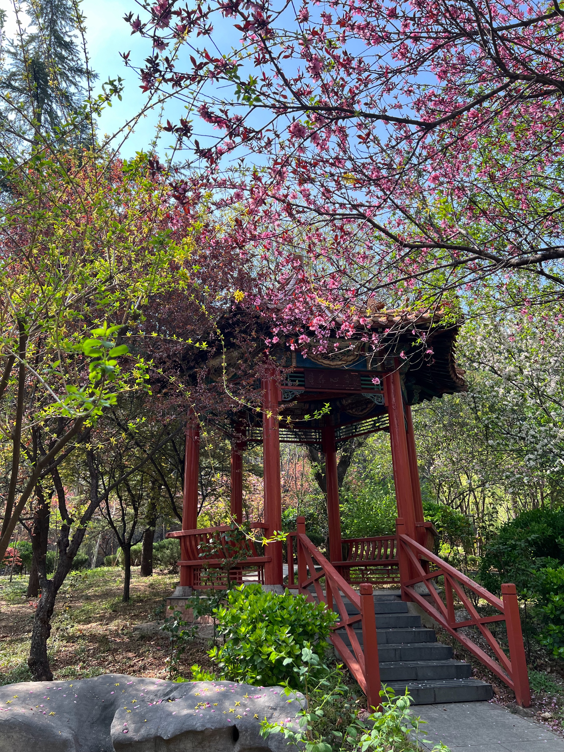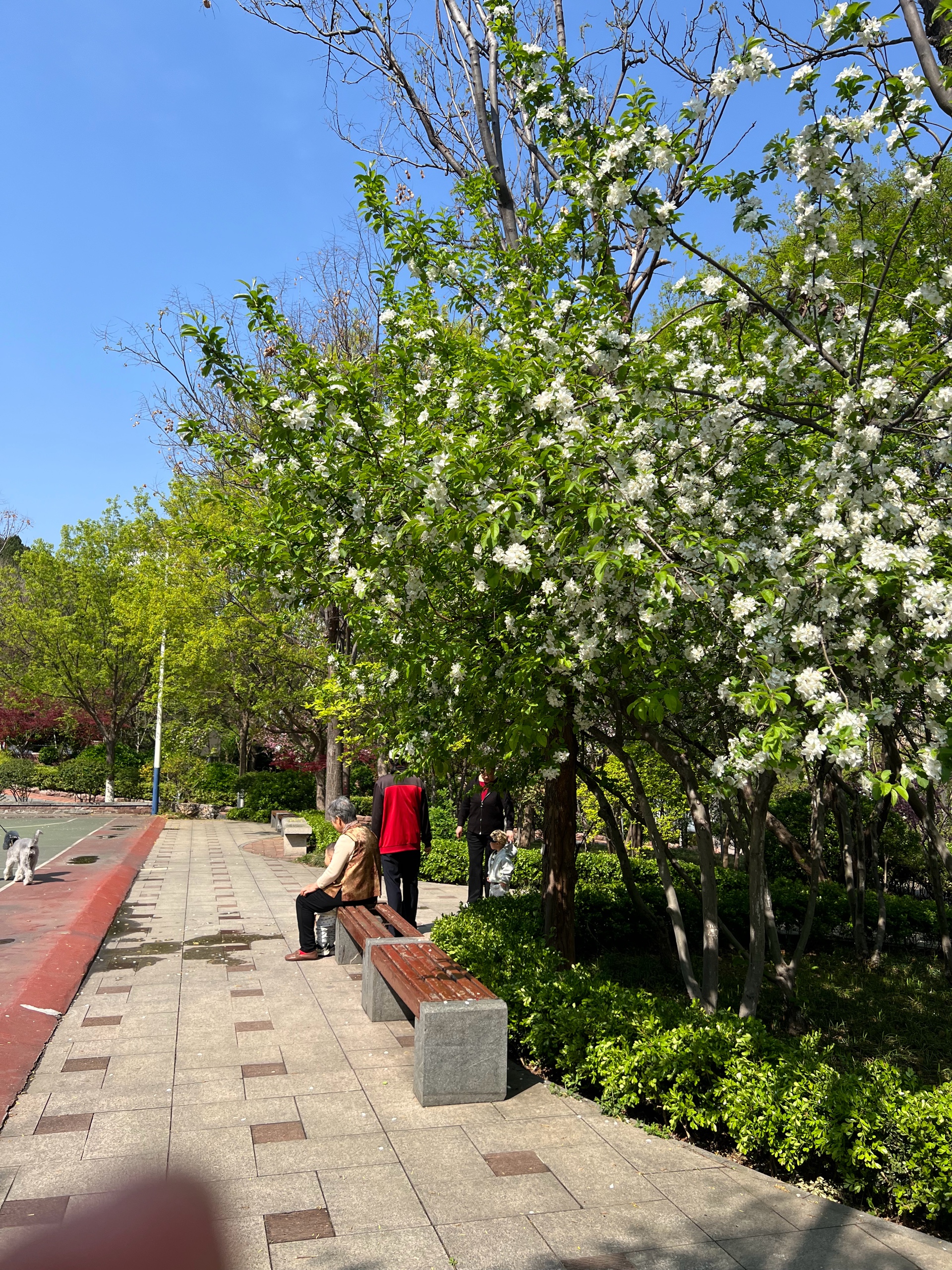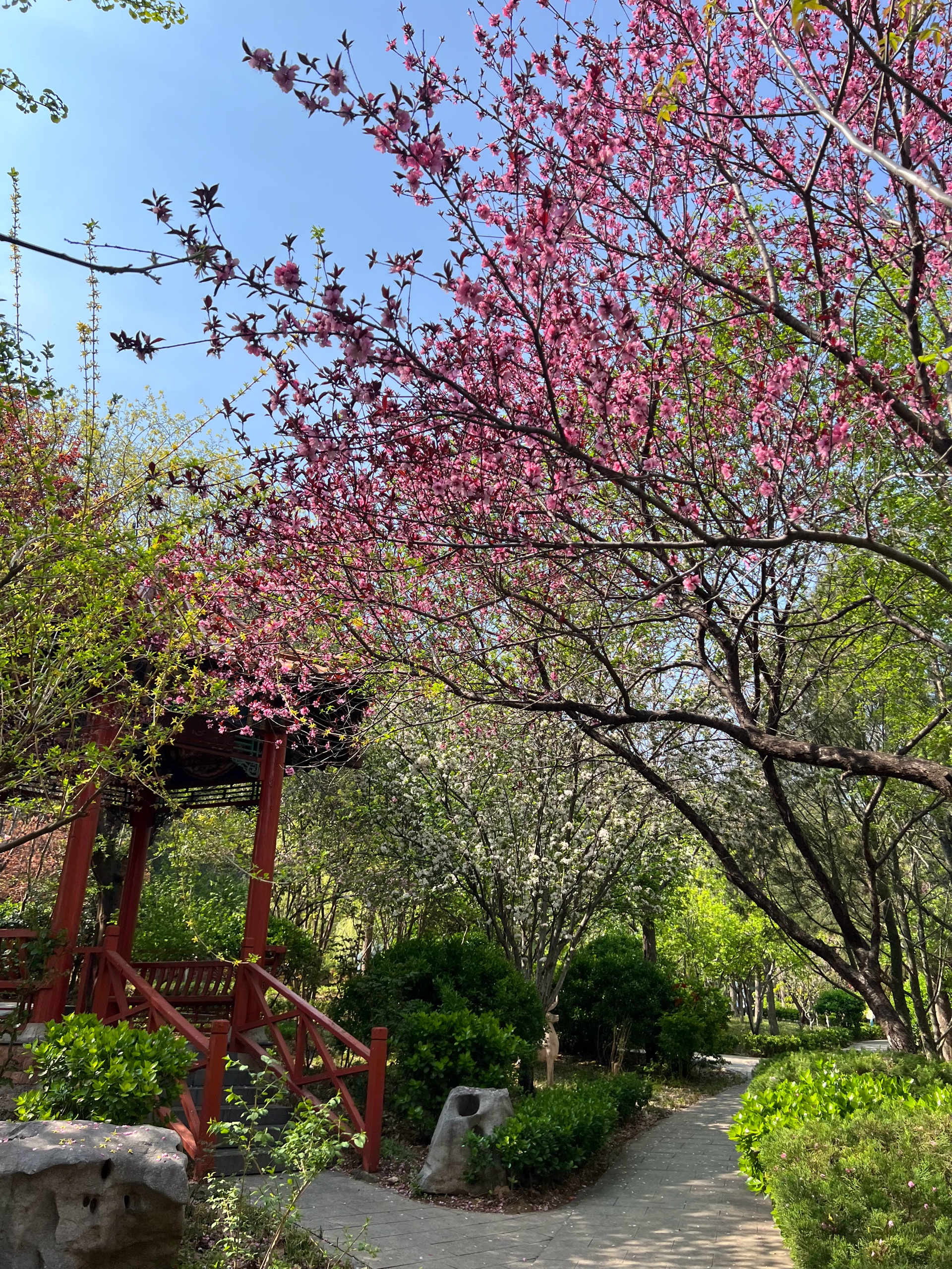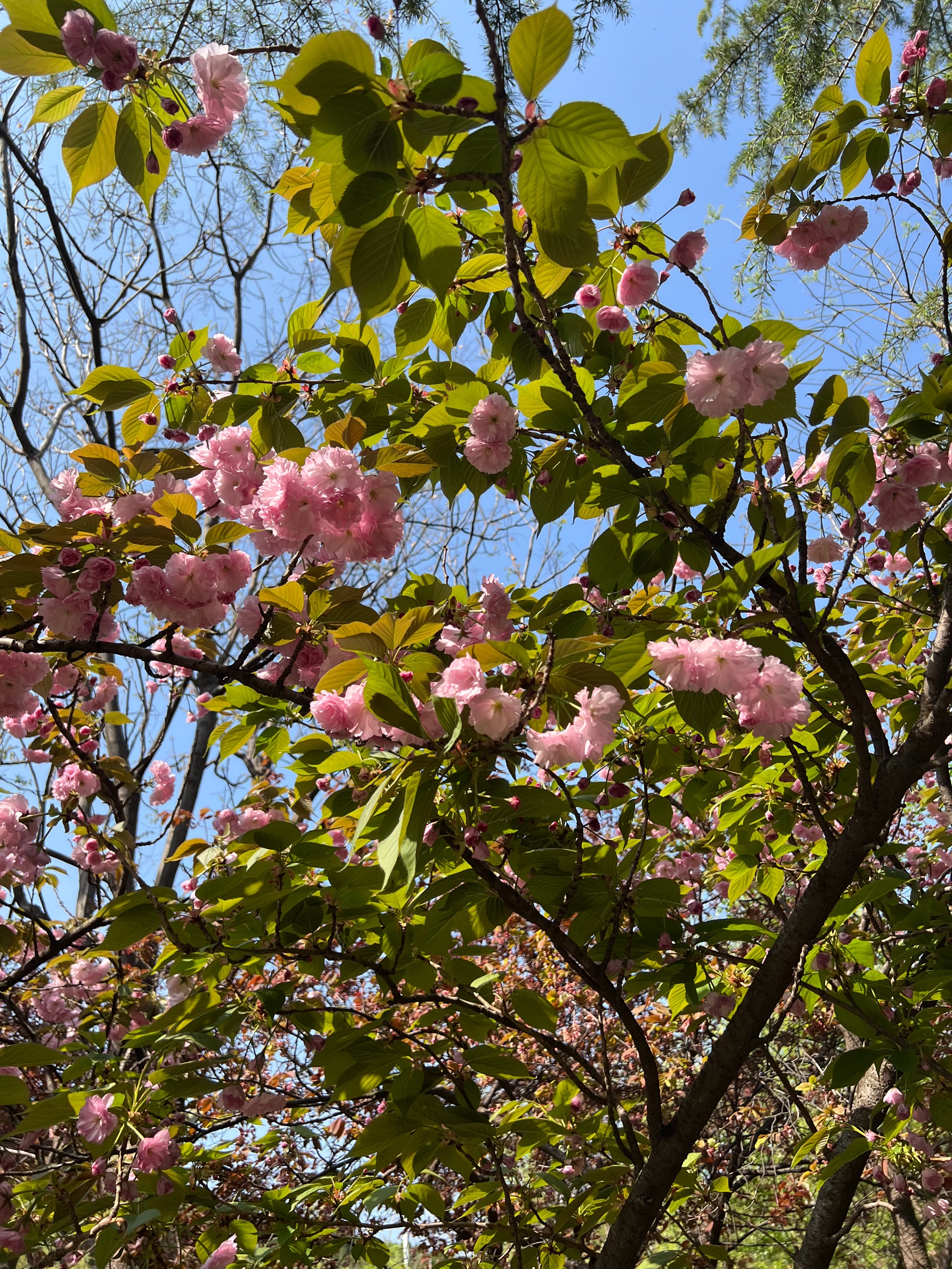 花红叶绿景色秀丽,蓝天为底色勾勒出美丽的画卷,小区春色满园随拍