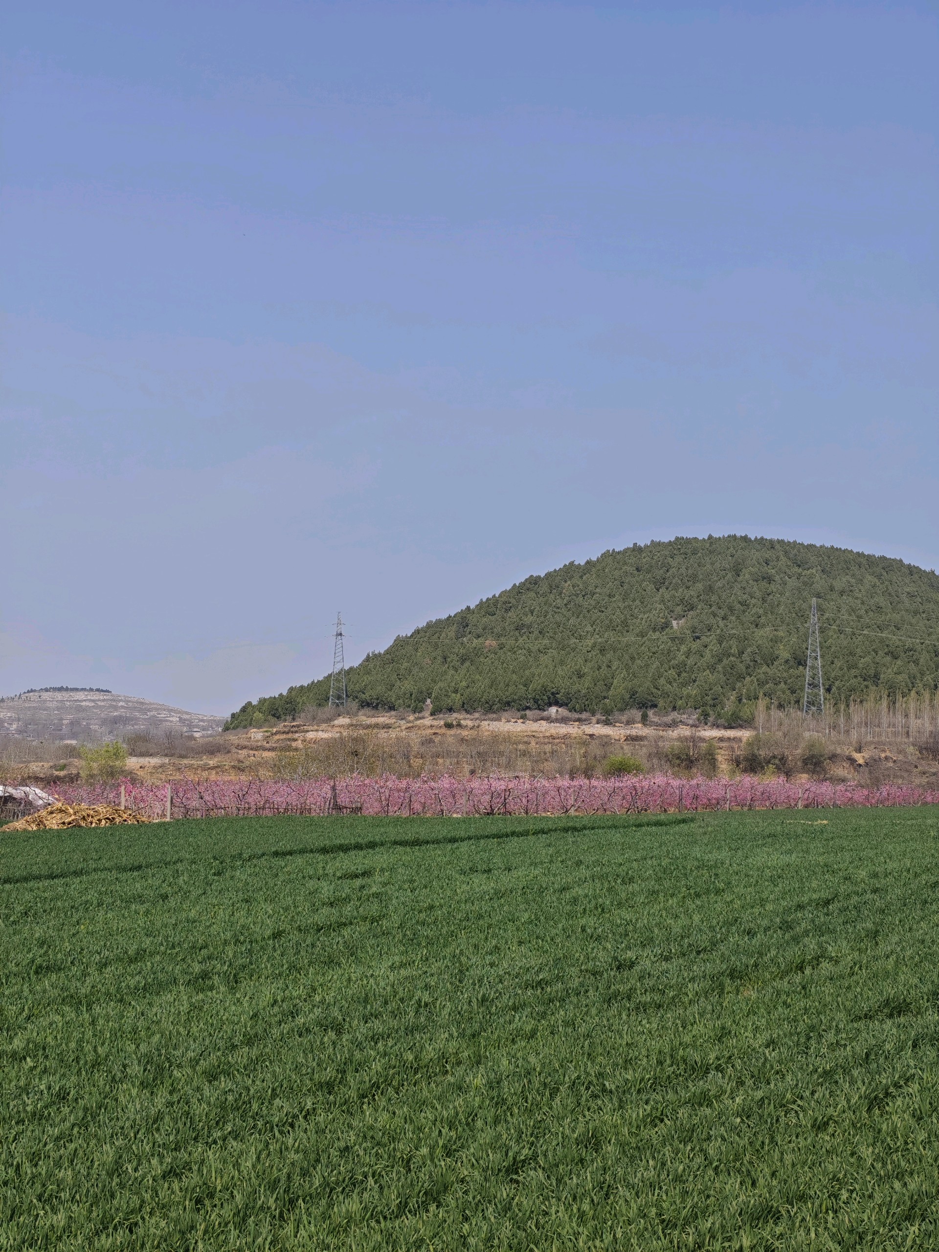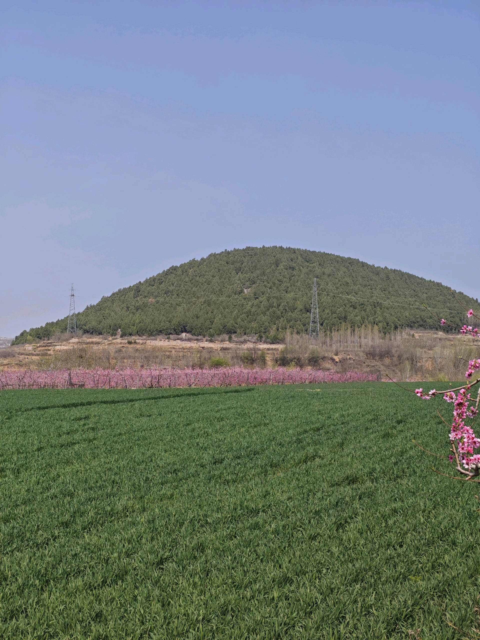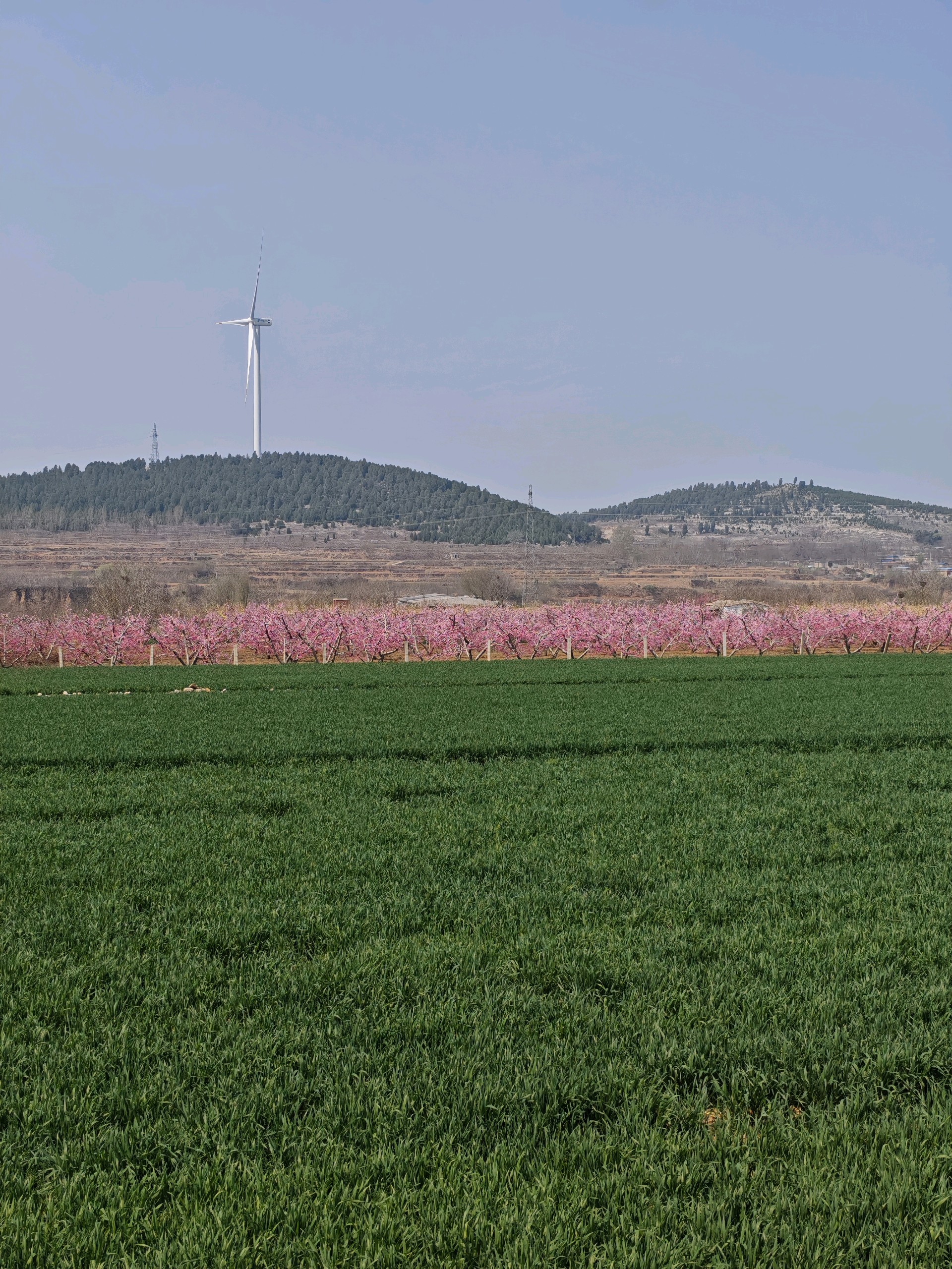 灿若朝霞的桃花,绿如地毯的麦田,金灿灿的油菜花,衬上蓝天白云,这是一种怎样的美丽,相映成趣,相得益彰相辅相成。