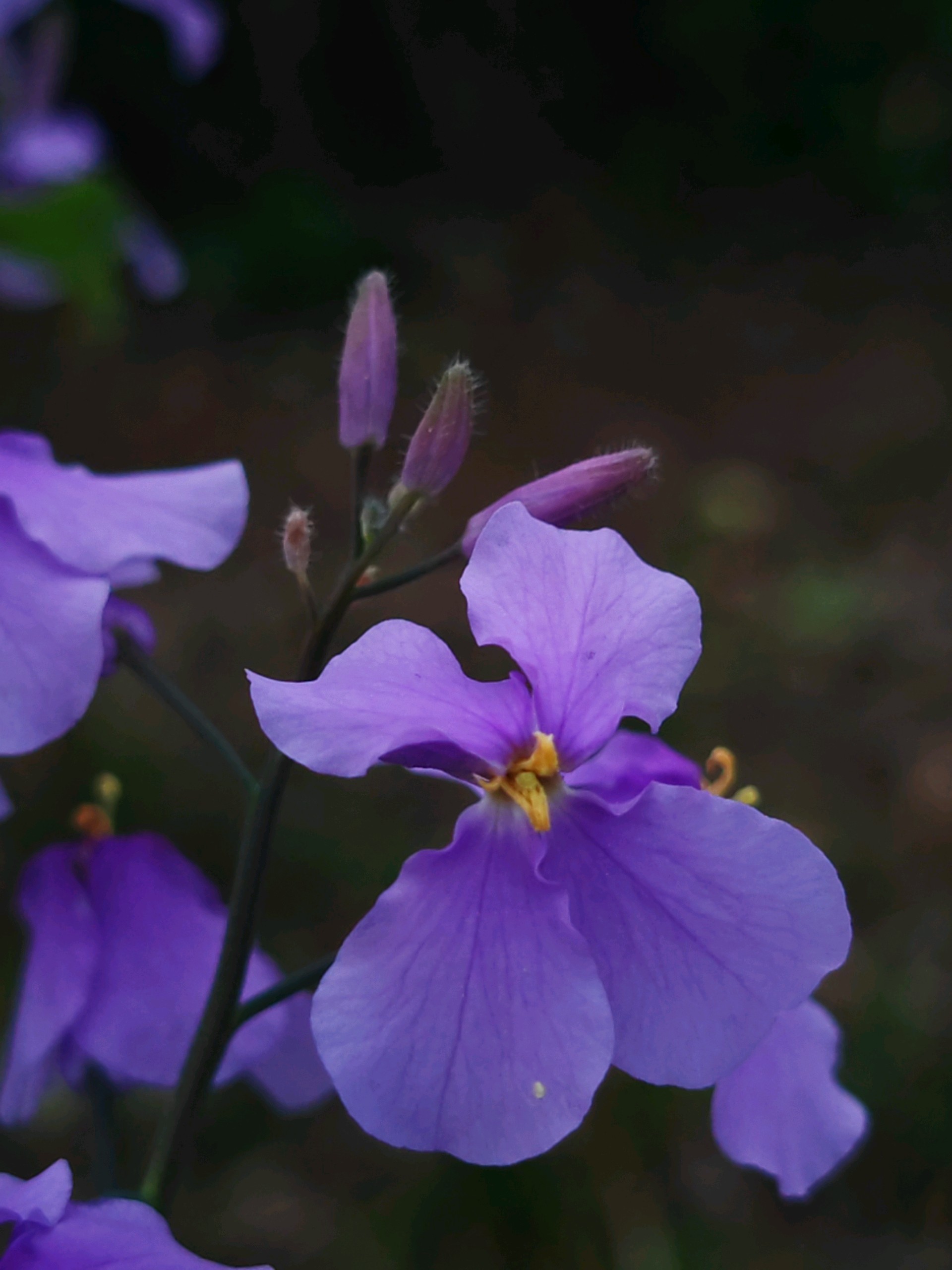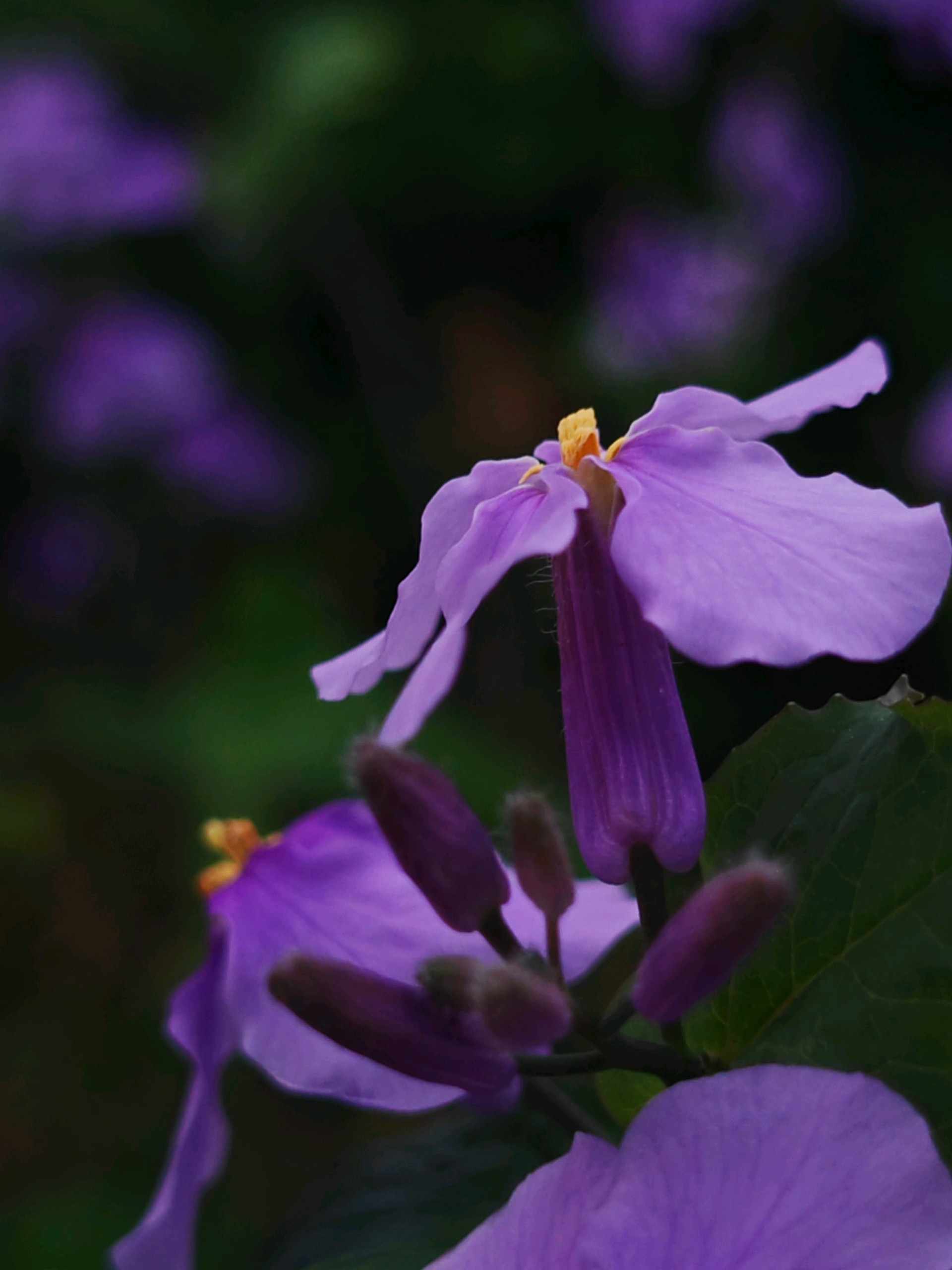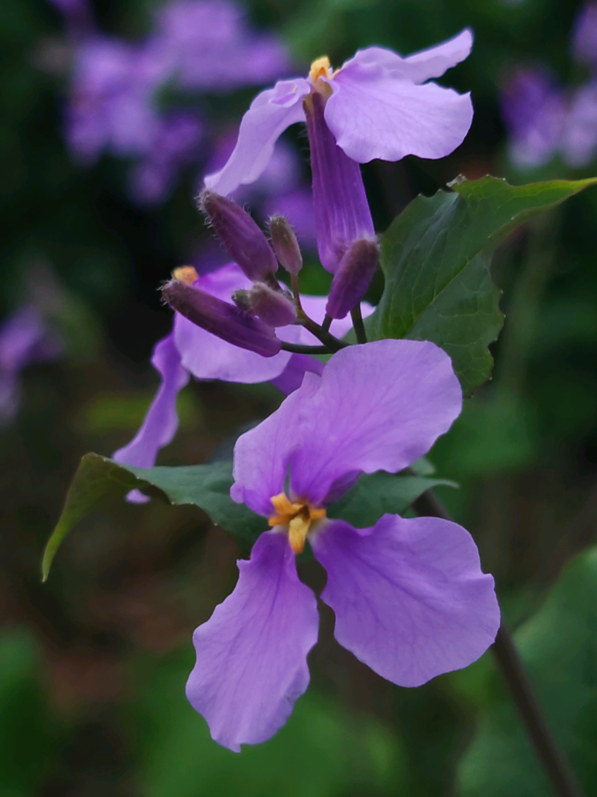 四月初春寒未褪,二月兰已铺展成紫雾。融创茂对面树林里,二月兰四片蝶翅轻颤,贴地而开,不与桃李争春,只把蓝紫晕染成诗。