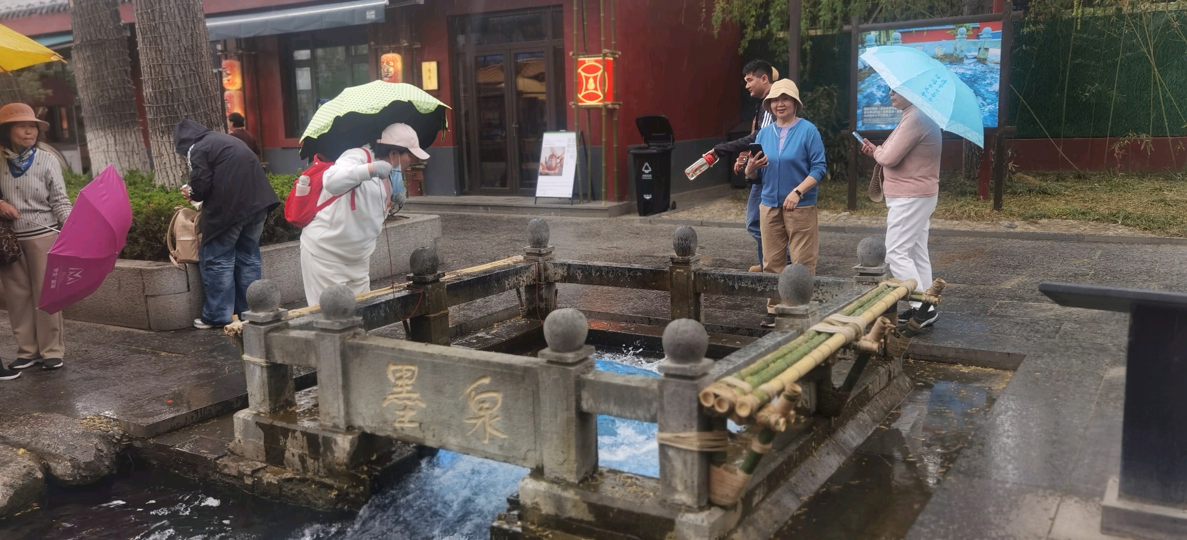 今天来“明水古城”看泉,走到“墨泉”下雨啦,泉水喷涌特别大!