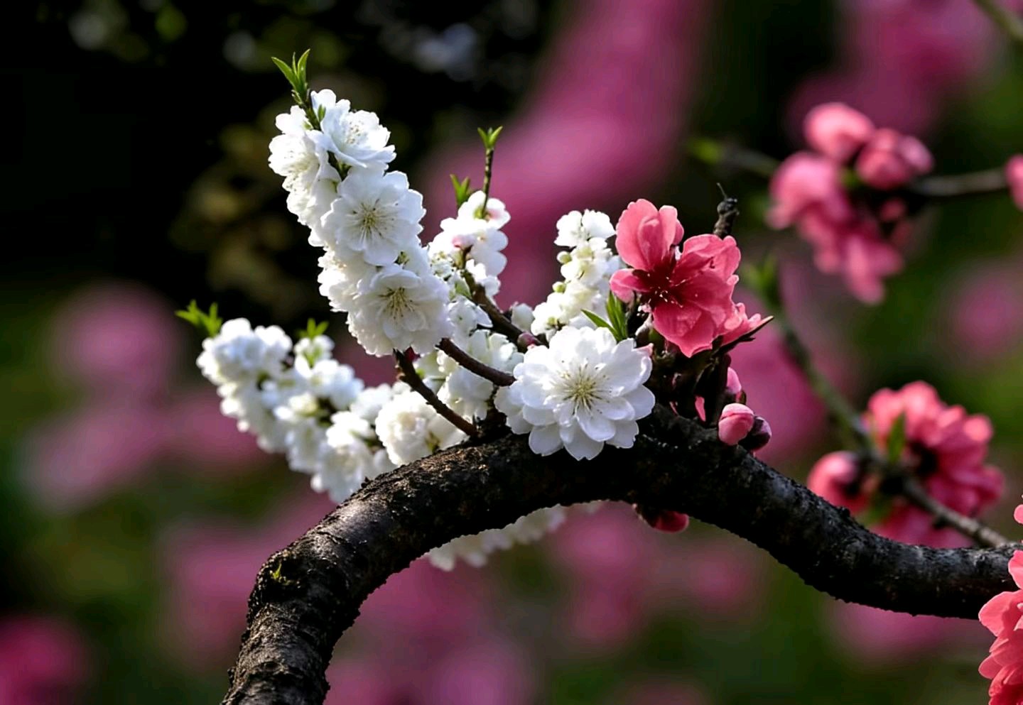 百花公园打碧桃盛开了,绚丽多姿,美不胜收。仿佛在诉说着春天的故事。