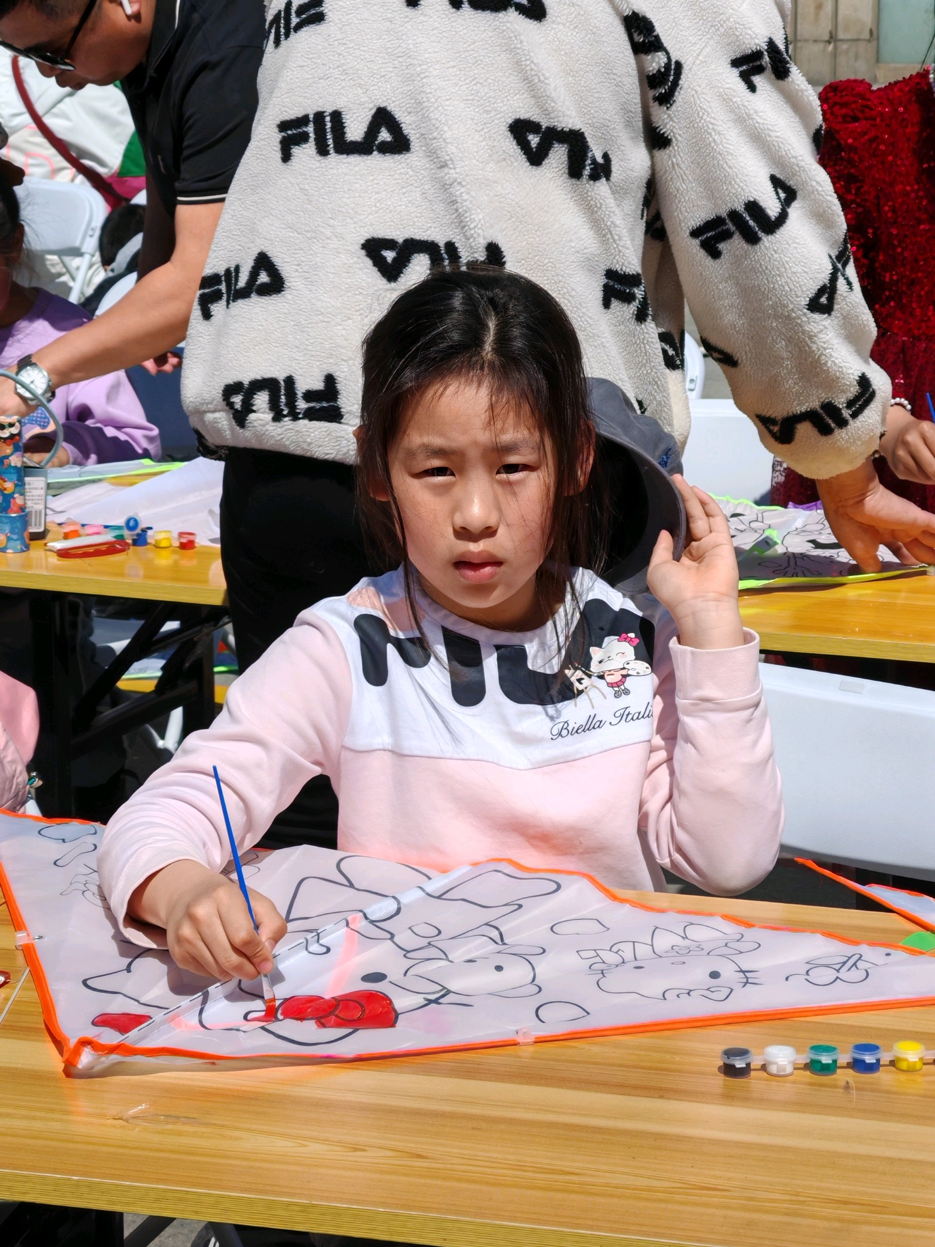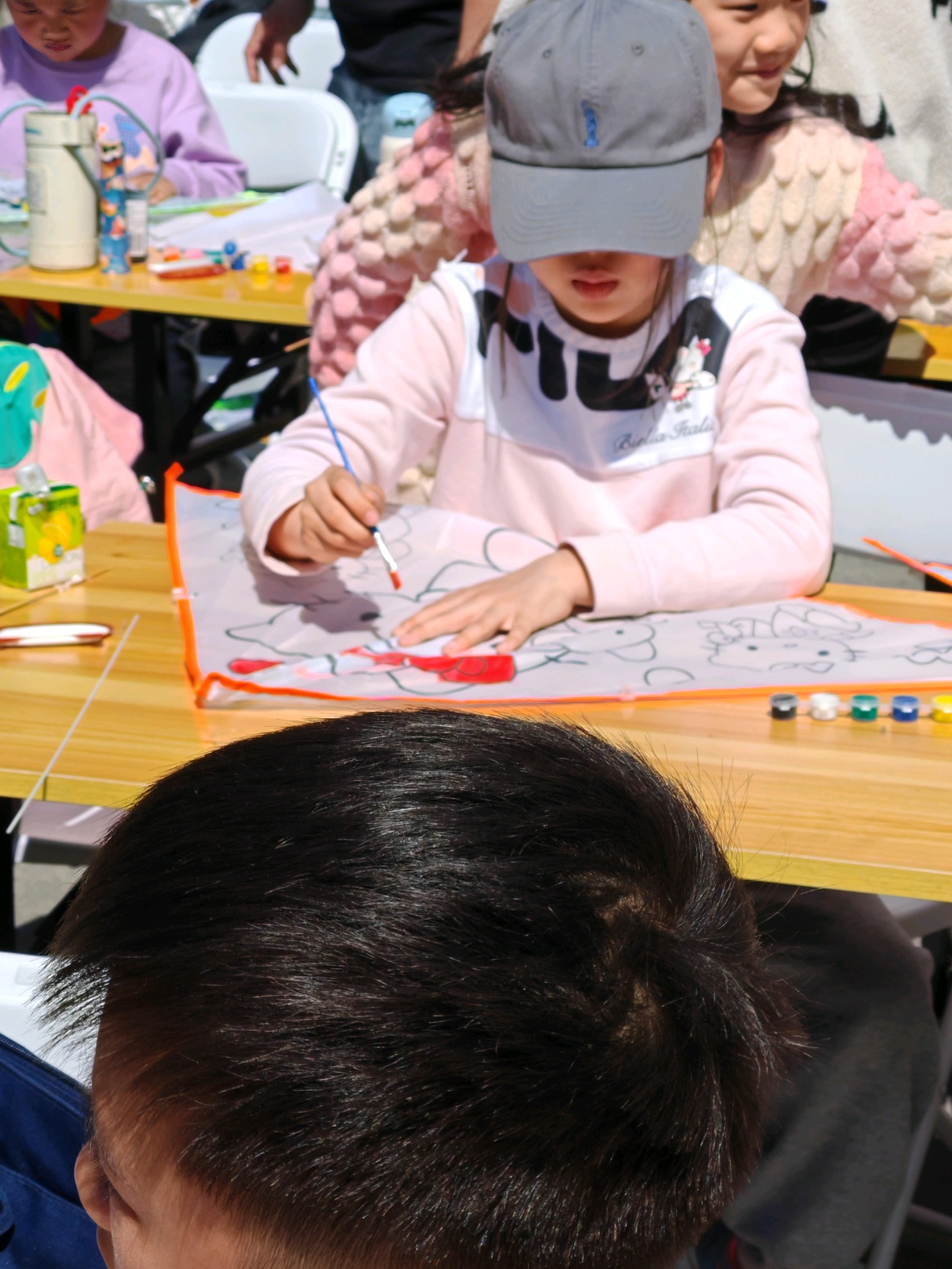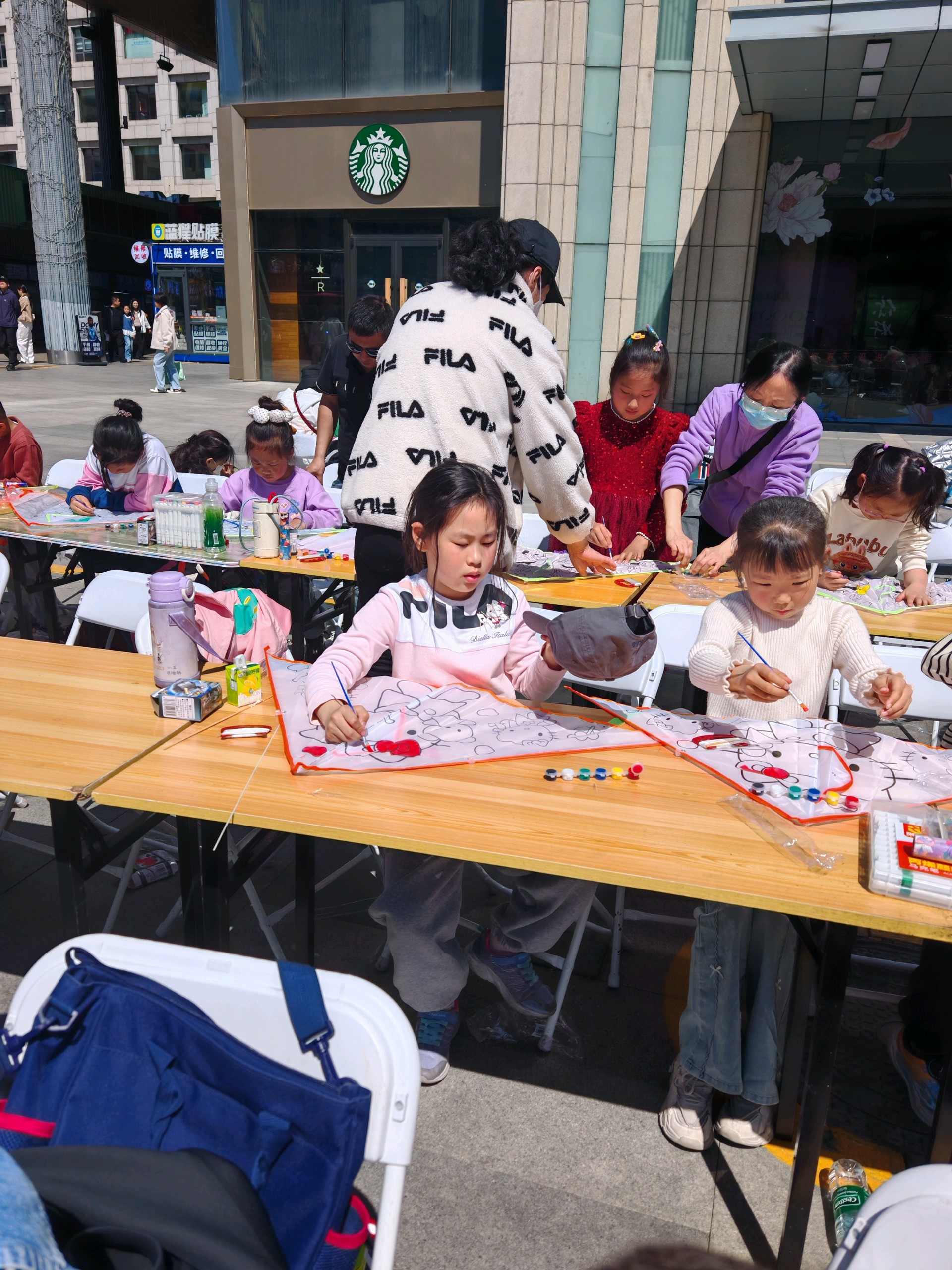 阳光午后,孩子们在户外DIY风筝,家长们陪伴在旁。一起感受创作的乐趣,享受美好的亲子时光!