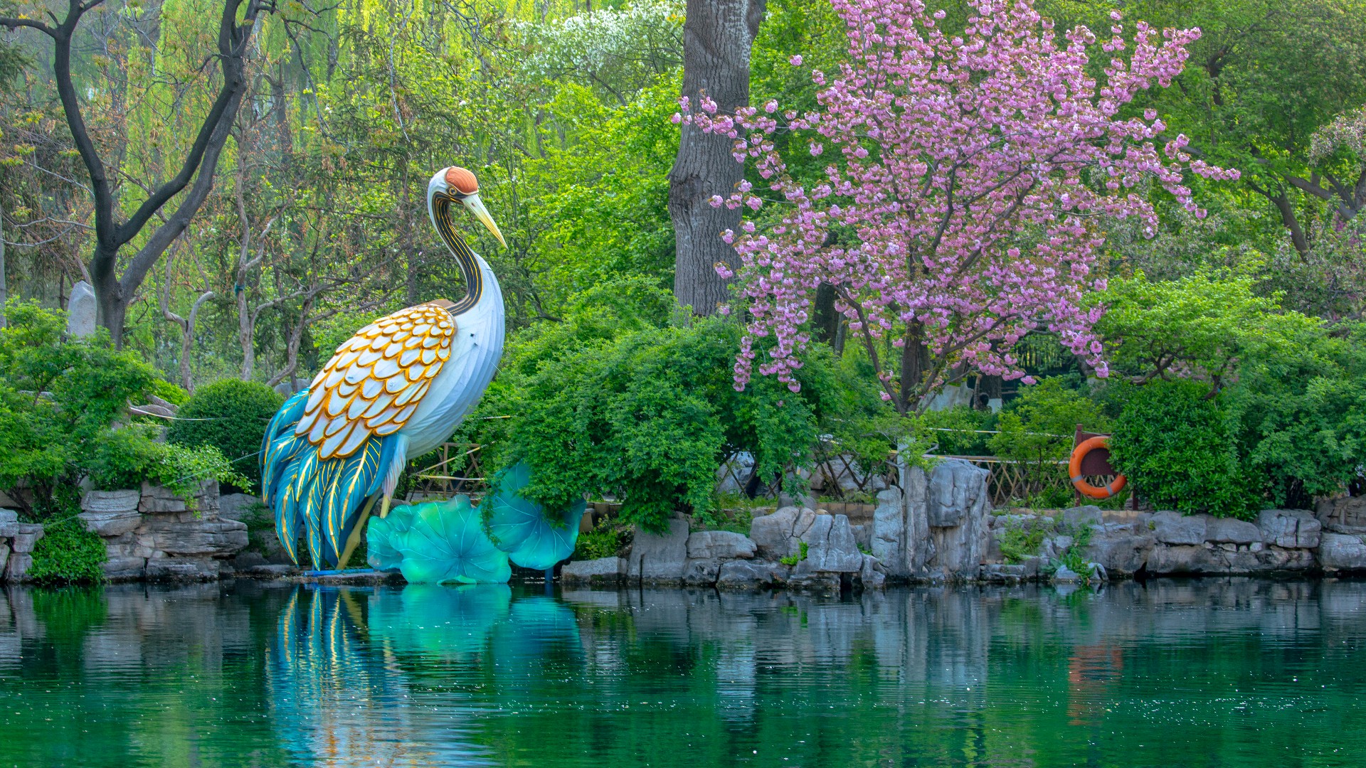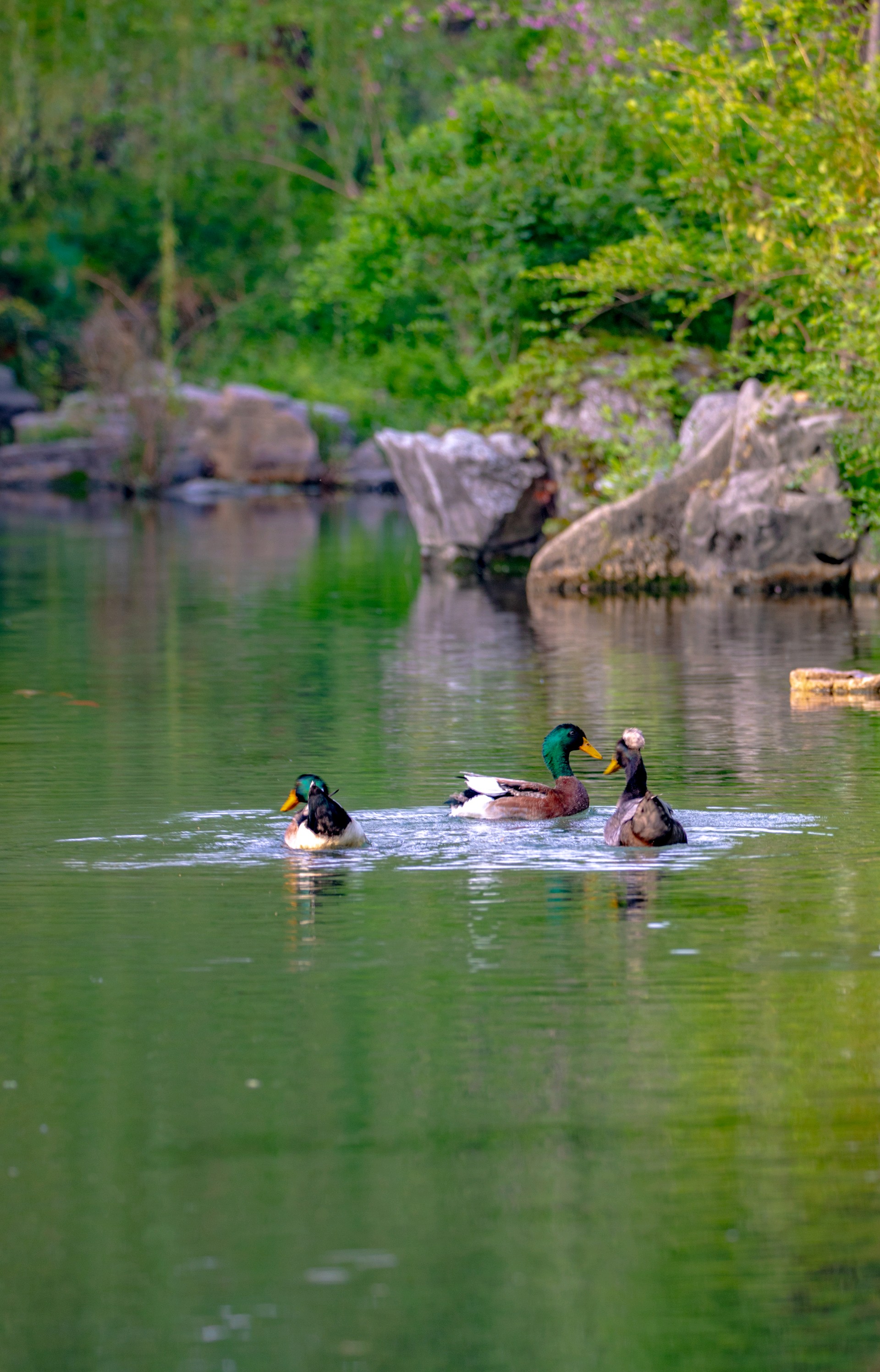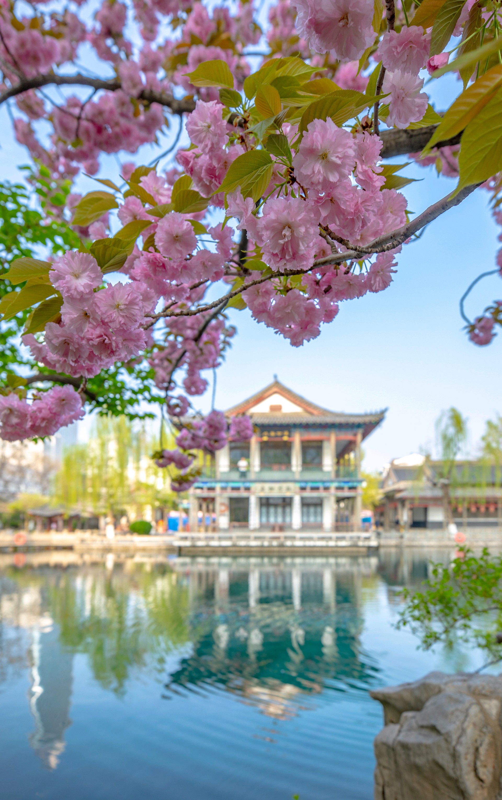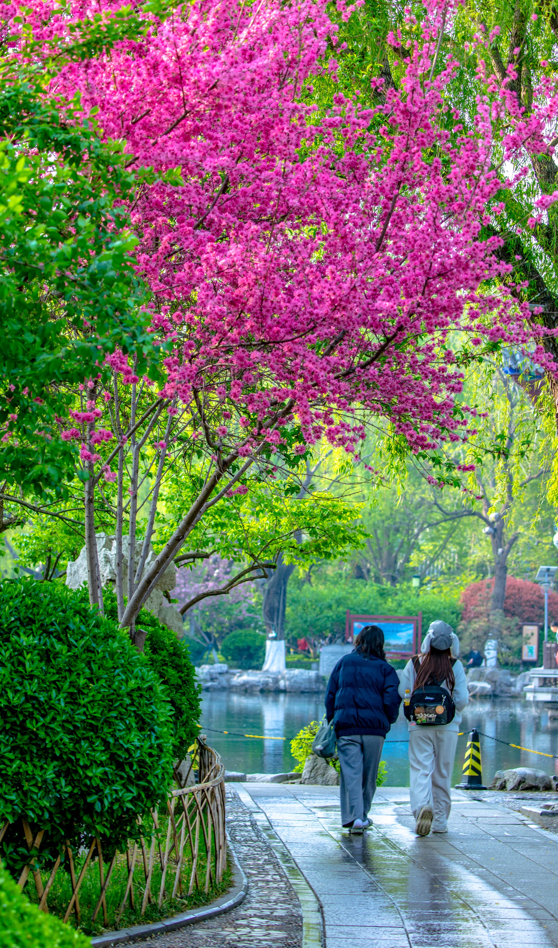五龙潭公园春光醉人,晚樱粉嫩满枝,雅致温柔。草坪上二月兰铺成紫韵,丁香清甜飘香,紫藤垂穗浪漫,棣棠金黄亮眼。澄澈泉水中,绿头鸭自在嬉戏。繁花映清泉,花香伴水声,满是灵动野趣,绘就泉城独有的温婉春日。