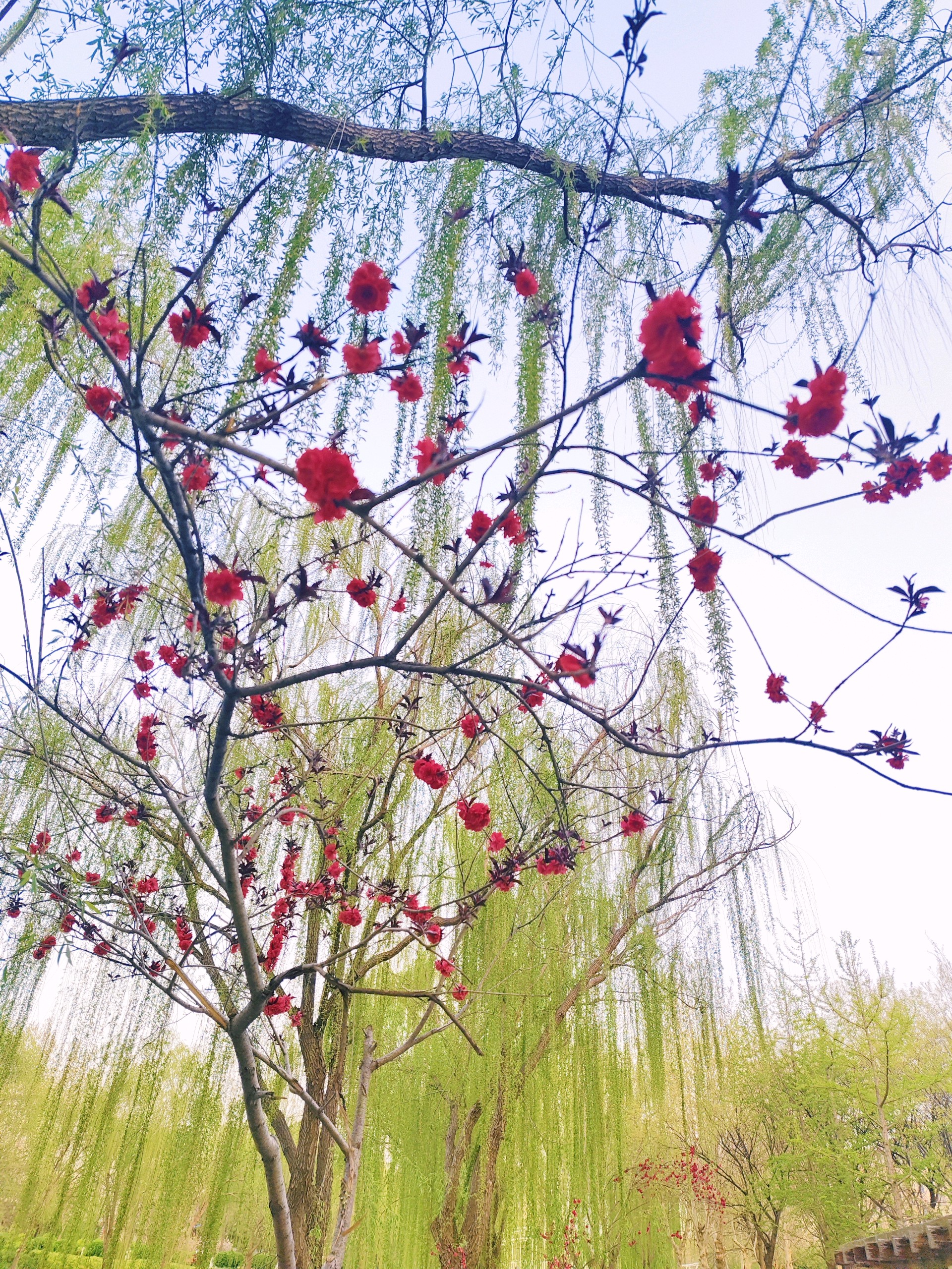 春天的枝头柳绿花红,阳光呵护着春日的风景,春在枝头美在心头。