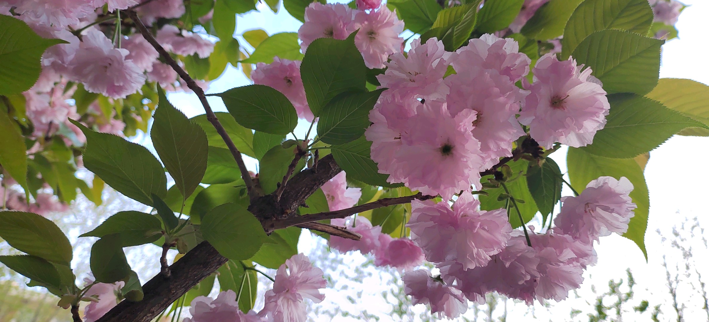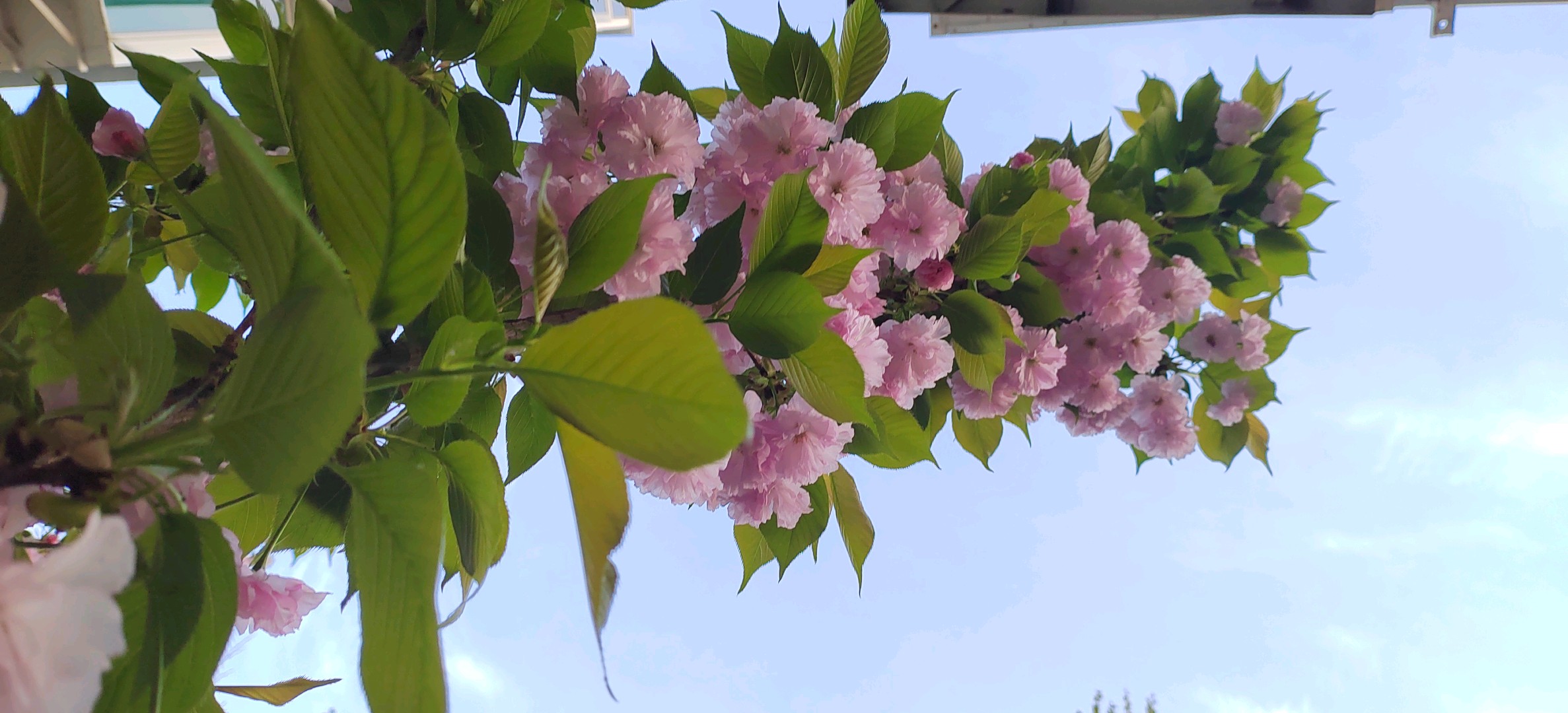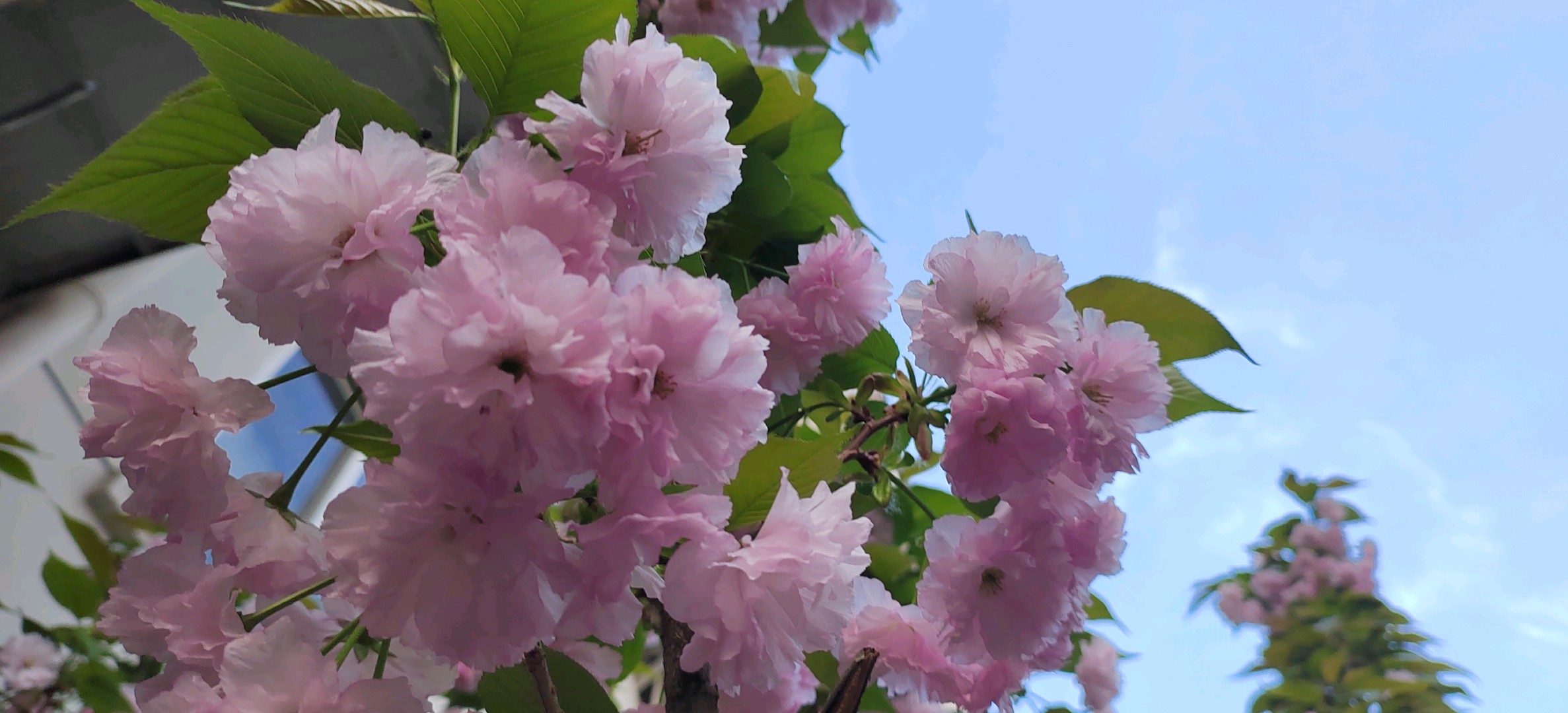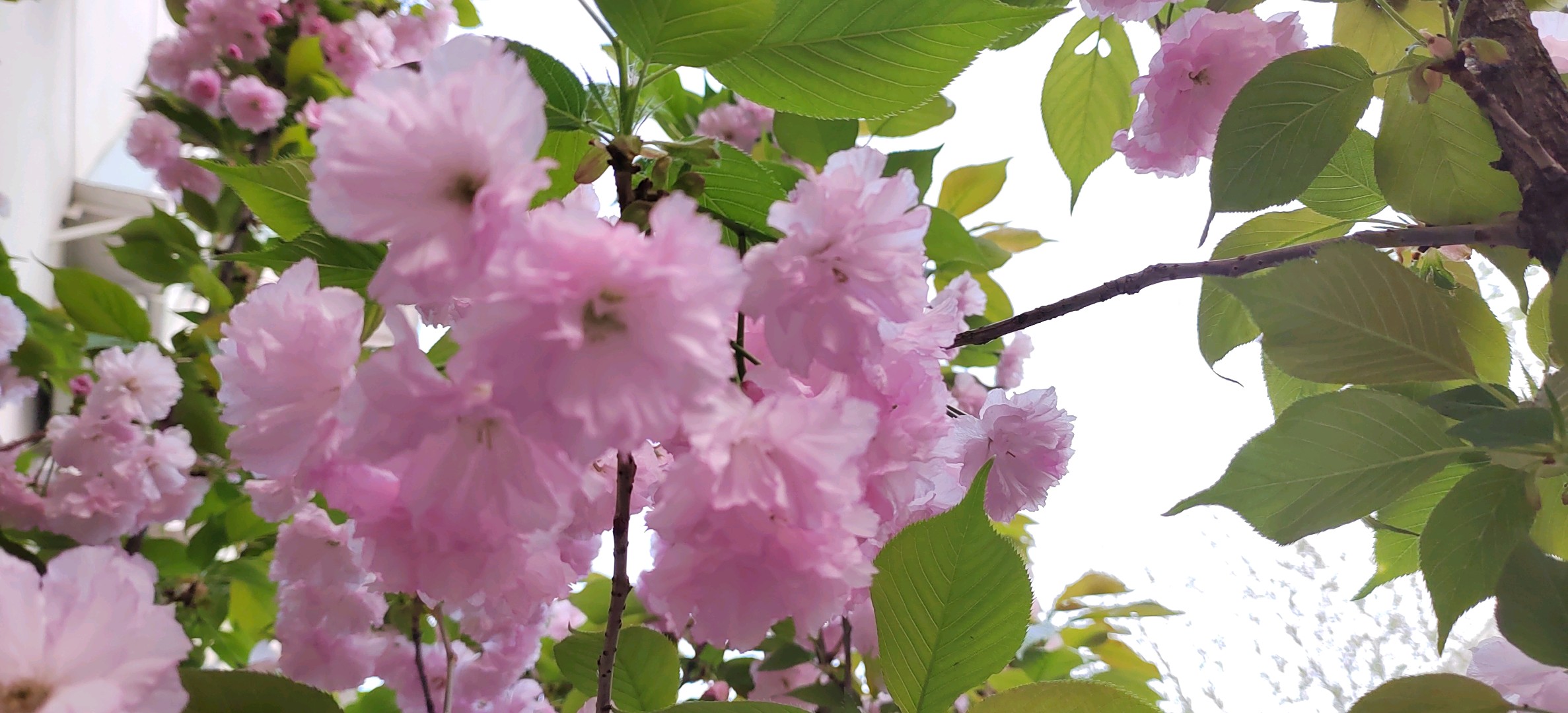 晚樱是蔷薇科李属的落叶乔木植物。小枝粗壮无毛;叶片倒卵形或椭圆形,先端长尾状渐尖,边缘有长芒状重锯齿;花总梗短,有时无总梗,伞房花序,花瓣先端凹形,粉红色或近白色;果卵形成熟时黑色有光泽;花期4月;果期5~6月。