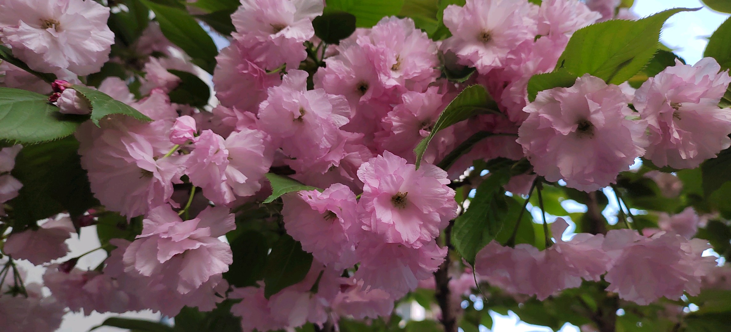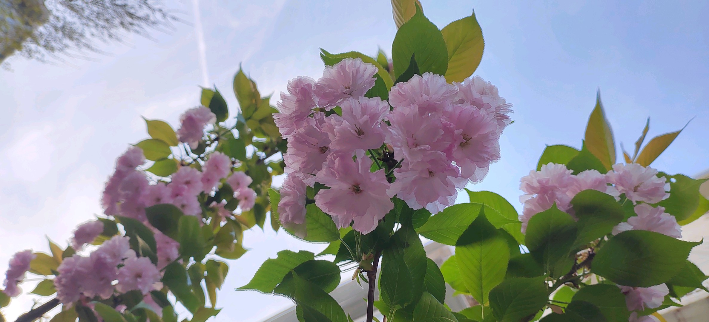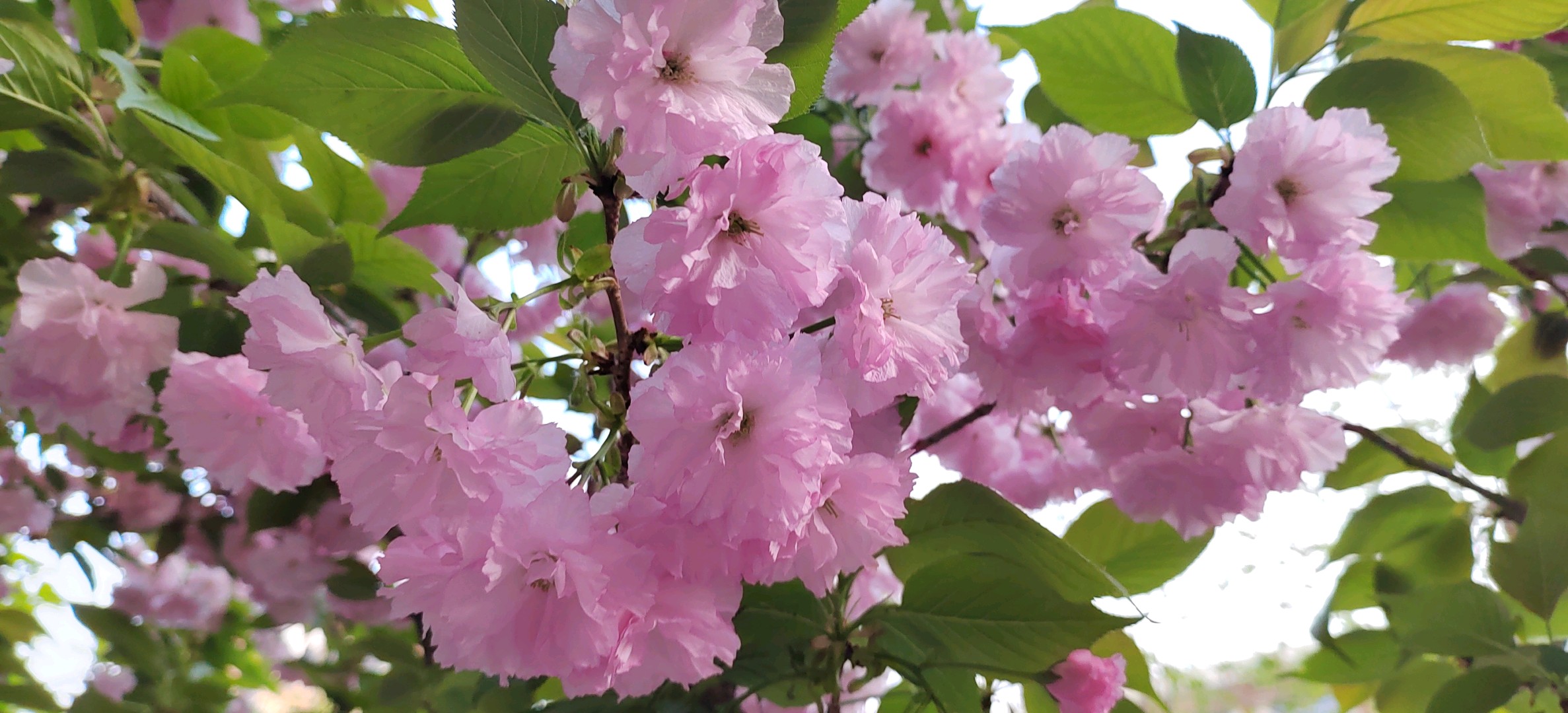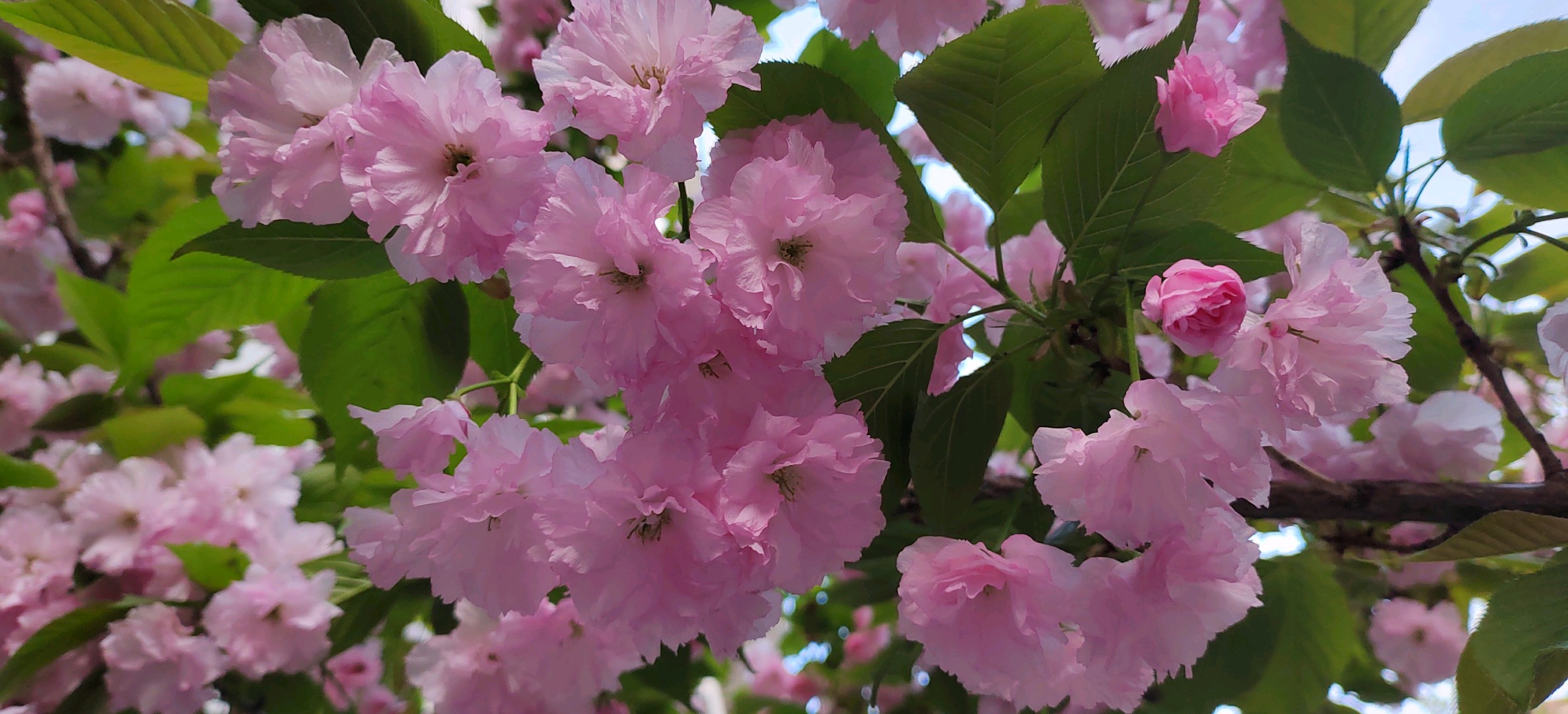 晚樱是蔷薇科李属的落叶乔木植物。小枝粗壮无毛;叶片倒卵形或椭圆形,先端长尾状渐尖,边缘有长芒状重锯齿;花总梗短,有时无总梗,伞房花序,花瓣先端凹形,粉红色或近白色;果卵形成熟时黑色有光泽;花期4月;果期5~6月。