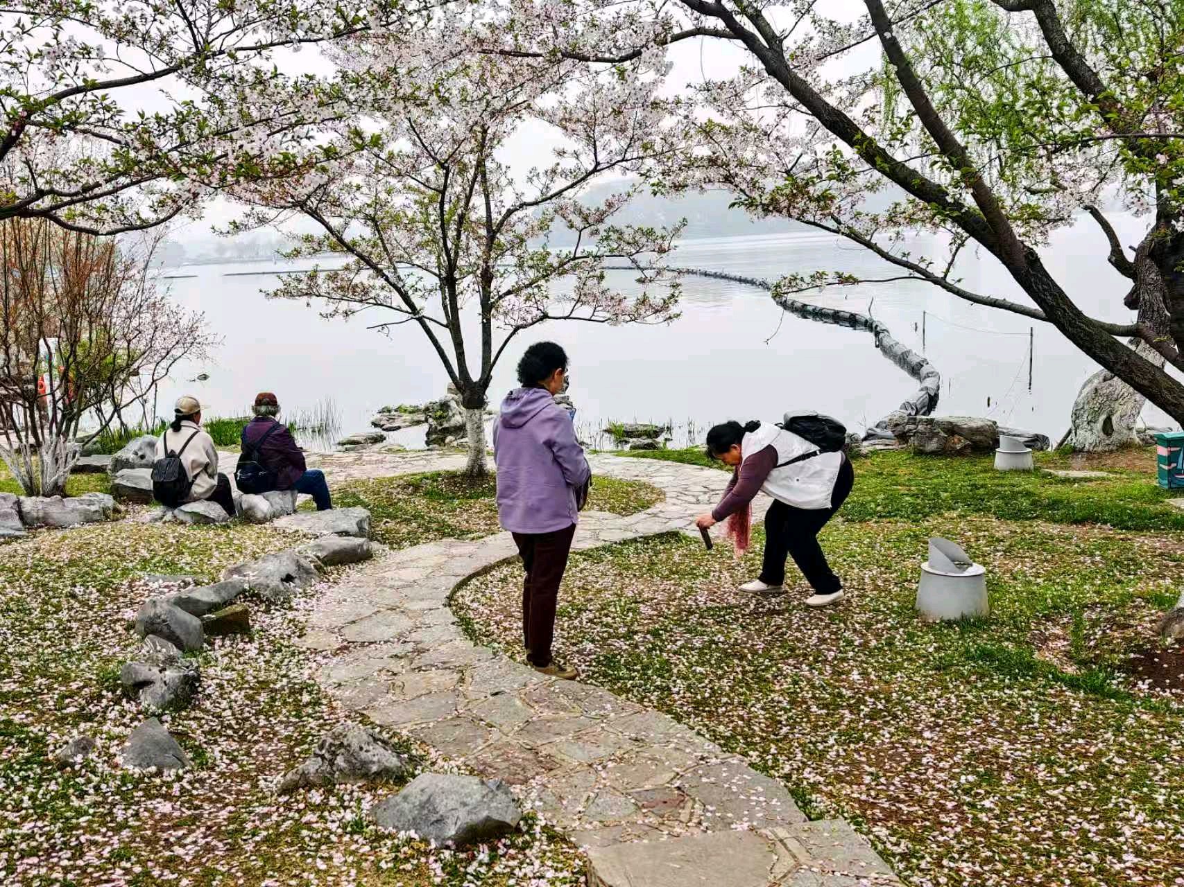 春日踏青,来到南京玄武湖。湖水伴着盛开的樱花,令人陶醉。