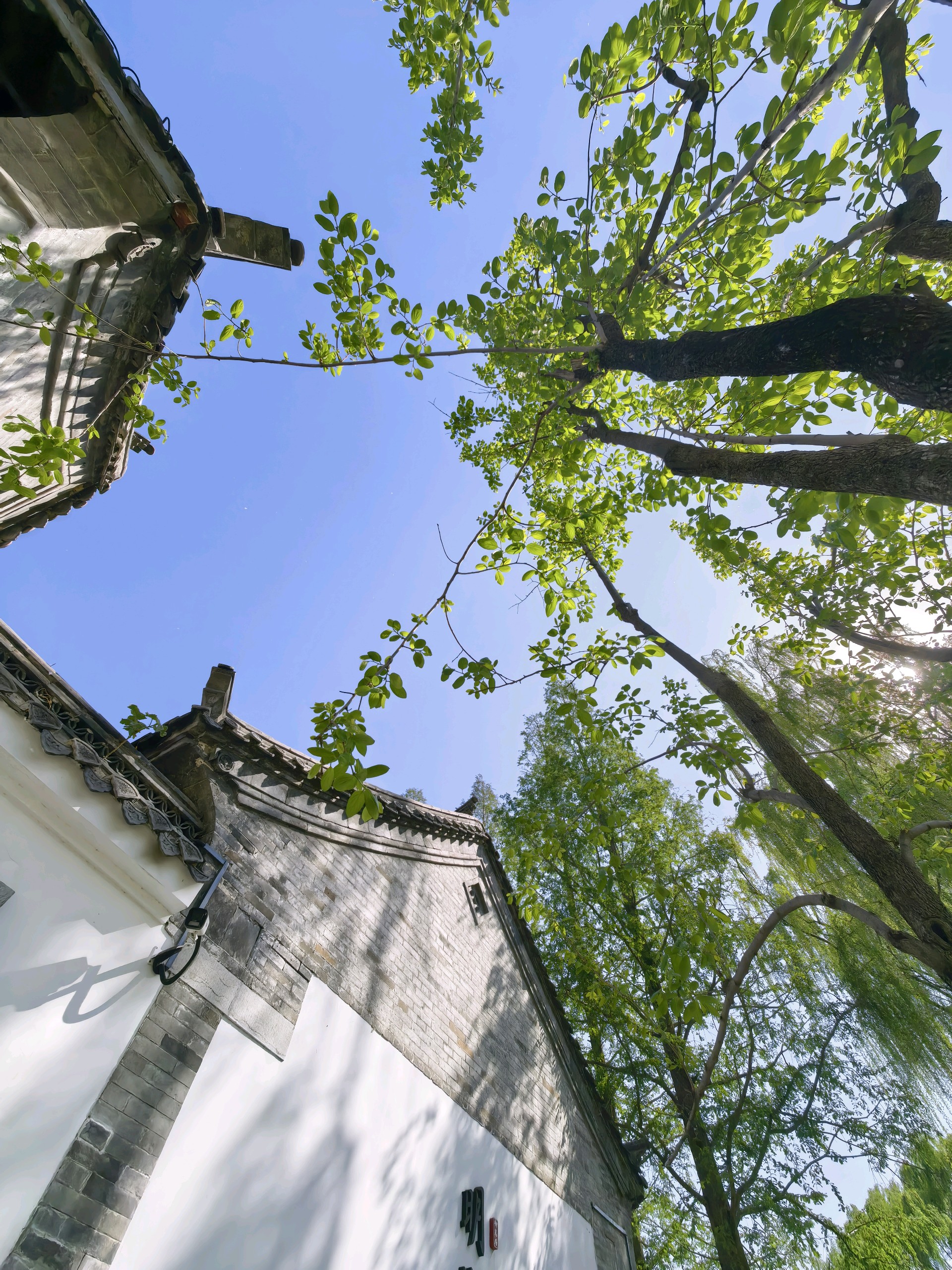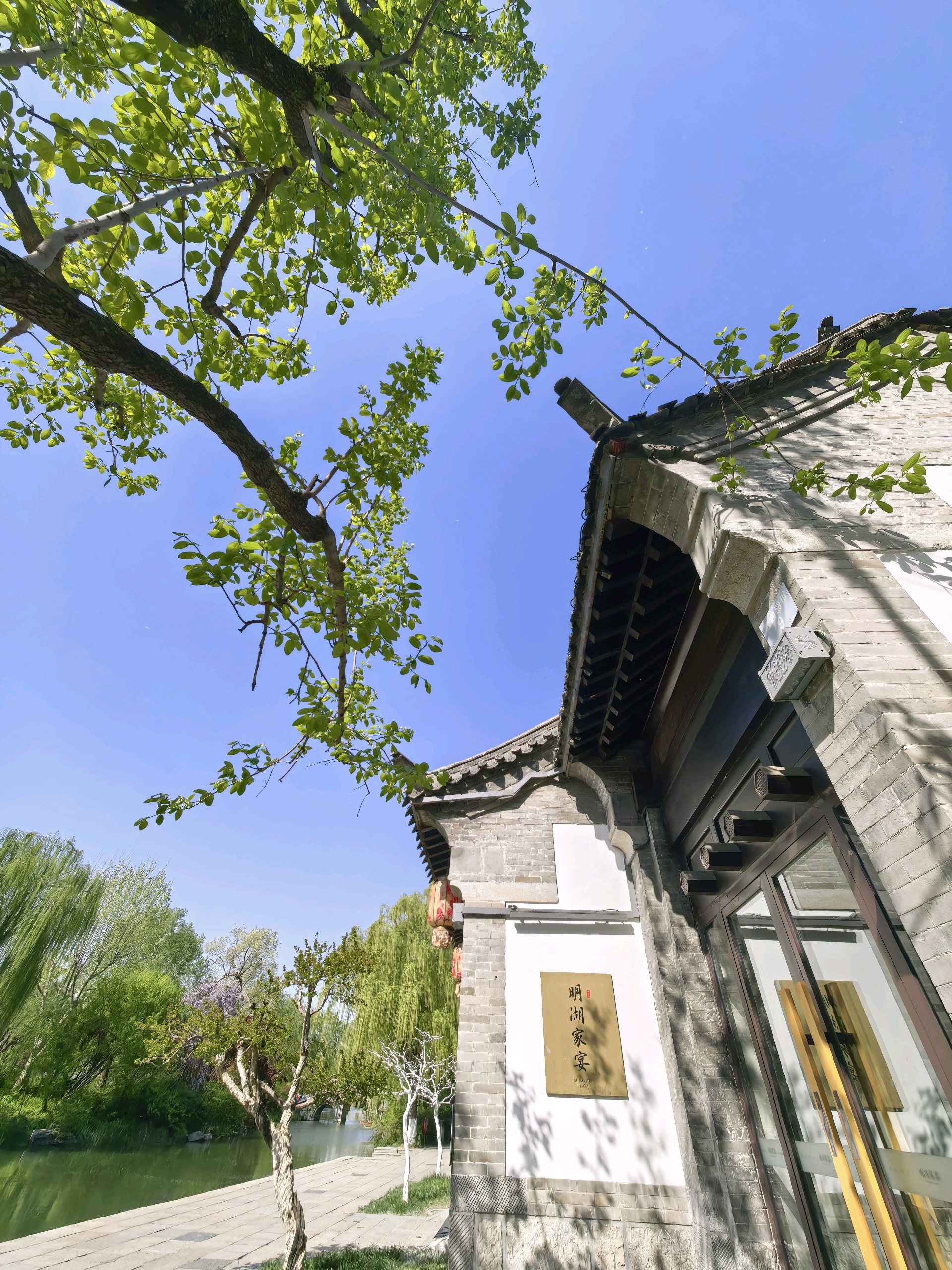 清晨,大明路秋柳路上,湖水、垂柳与老房默默相守。