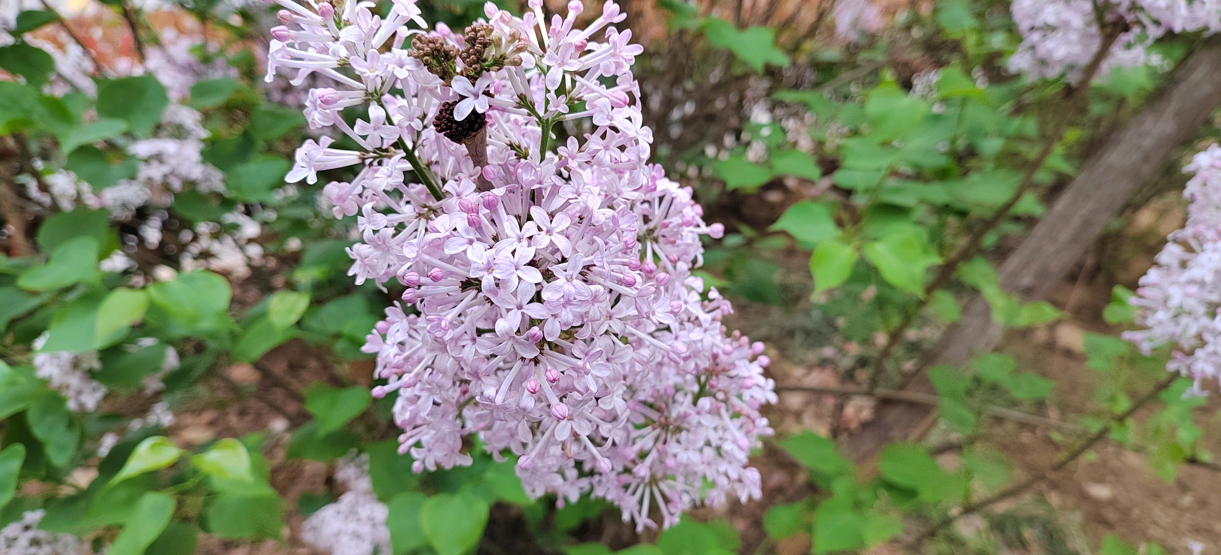 紫丁香是木樨科丁香属灌木或小乔木,高可达5米;树皮呈灰褐色或灰色。小枝、花序轴、花梗、苞片、花萼、幼叶两面以及叶柄均无毛而密被腺毛。叶片革质或厚纸质,卵圆形至肾形。圆锥花序直立,近球形或长圆形;花药黄色,位于距花冠管喉部0-4毫米处;花冠紫色,裂片呈直角开展,卵圆形、椭圆形至倒卵圆形。果倒卵状椭圆形、卵形至长椭圆形,先端长渐尖,光滑。花期为4-5月,果期为6-10月。