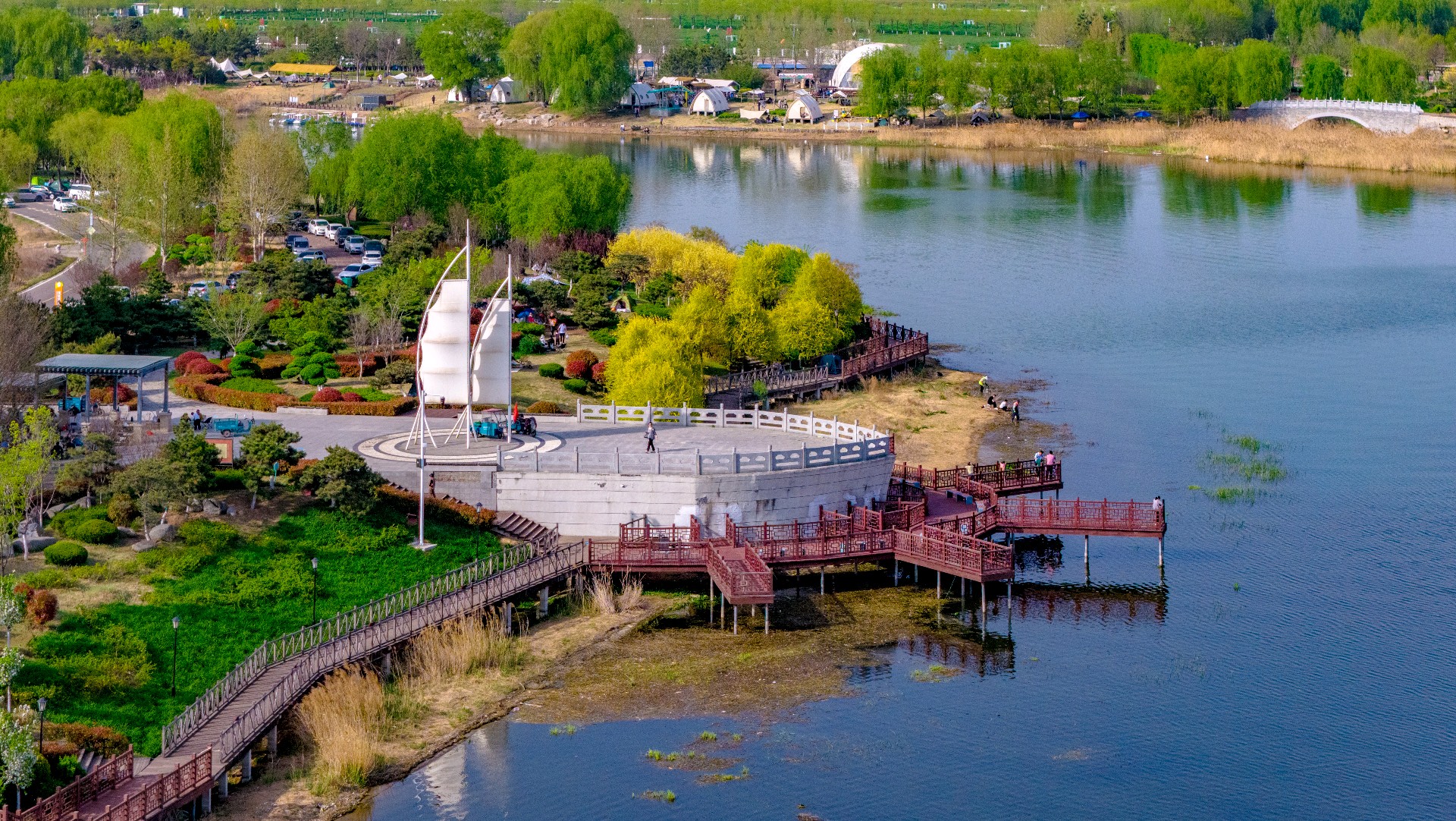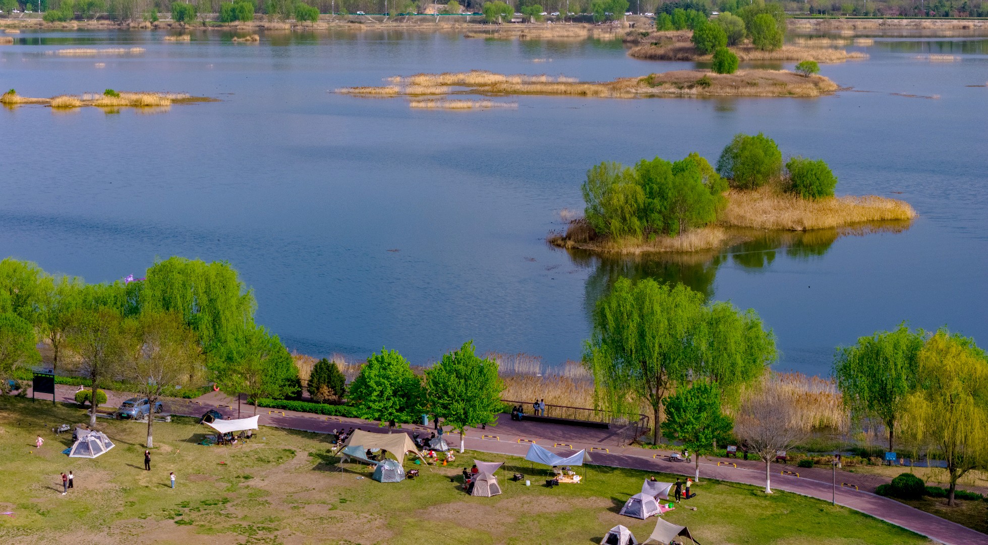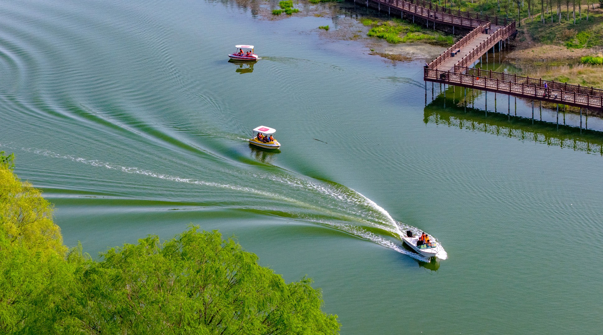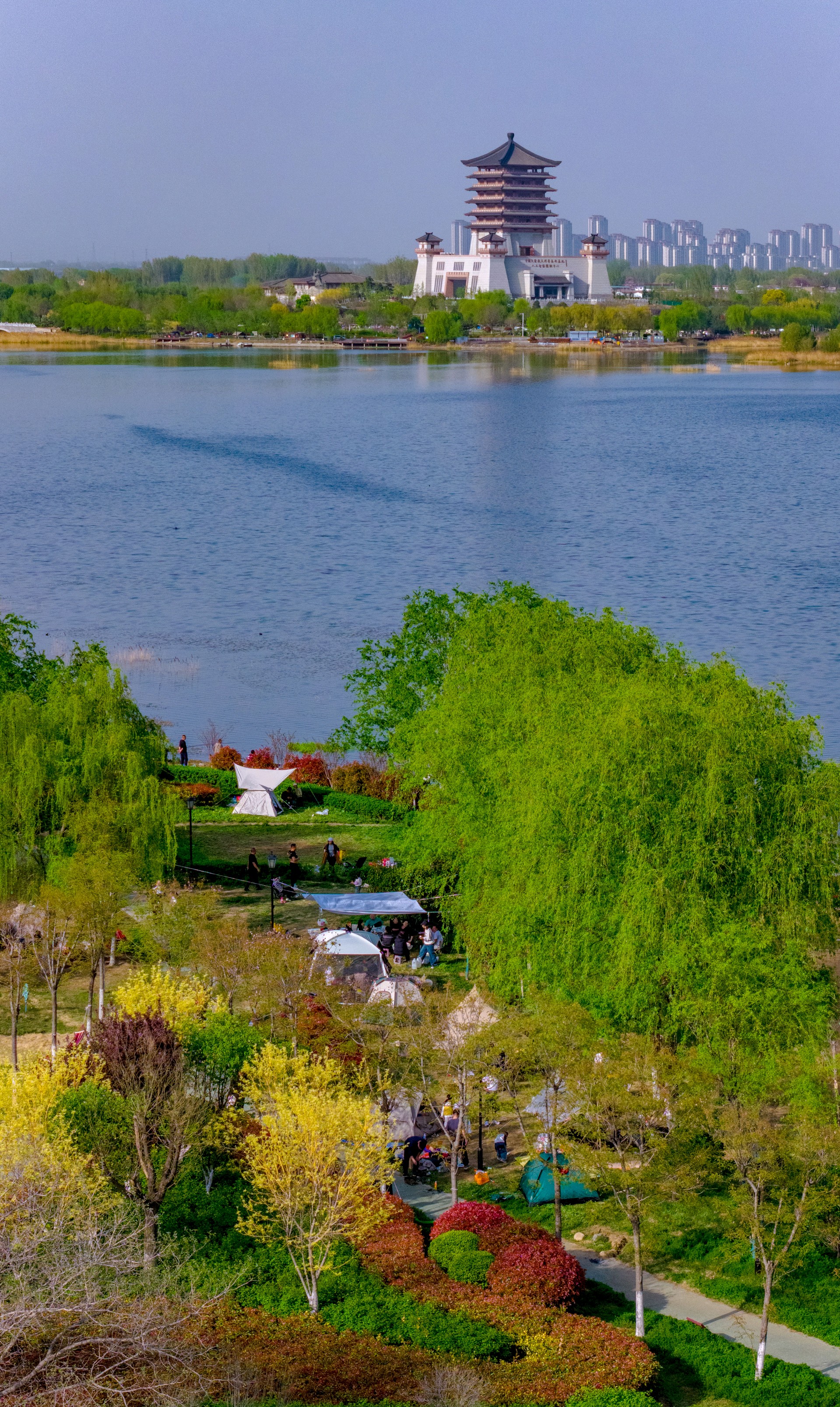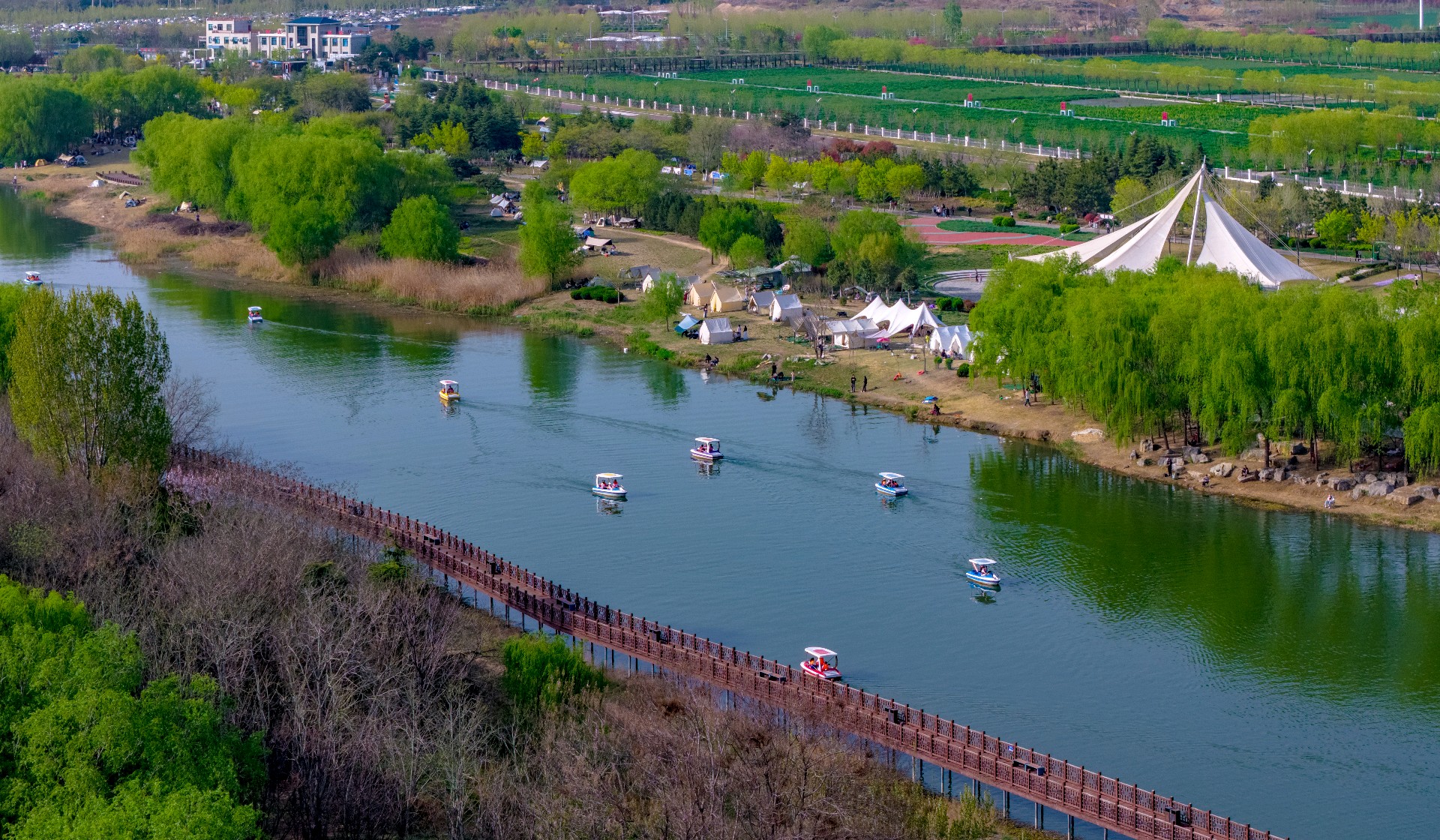 泰安汶河湿地公园春意正浓,河畔垂柳轻垂,两岸绿意绵延,市民搭起帐篷踏青休闲,悠然自得。水面轻舟慢荡、快艇疾驰,泛起层层涟漪。远处徂徕山青黛连绵,与水光春色相映,绘就一幅生机盎然、闲适恬淡的春日画卷。