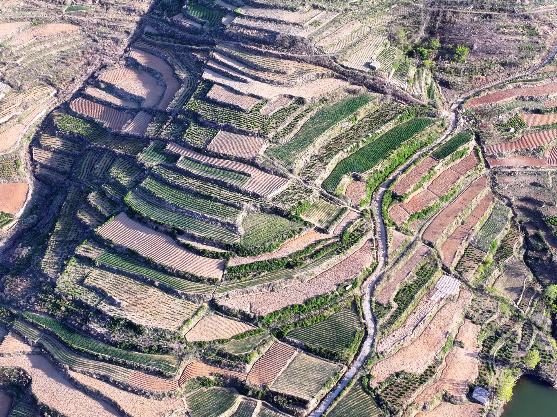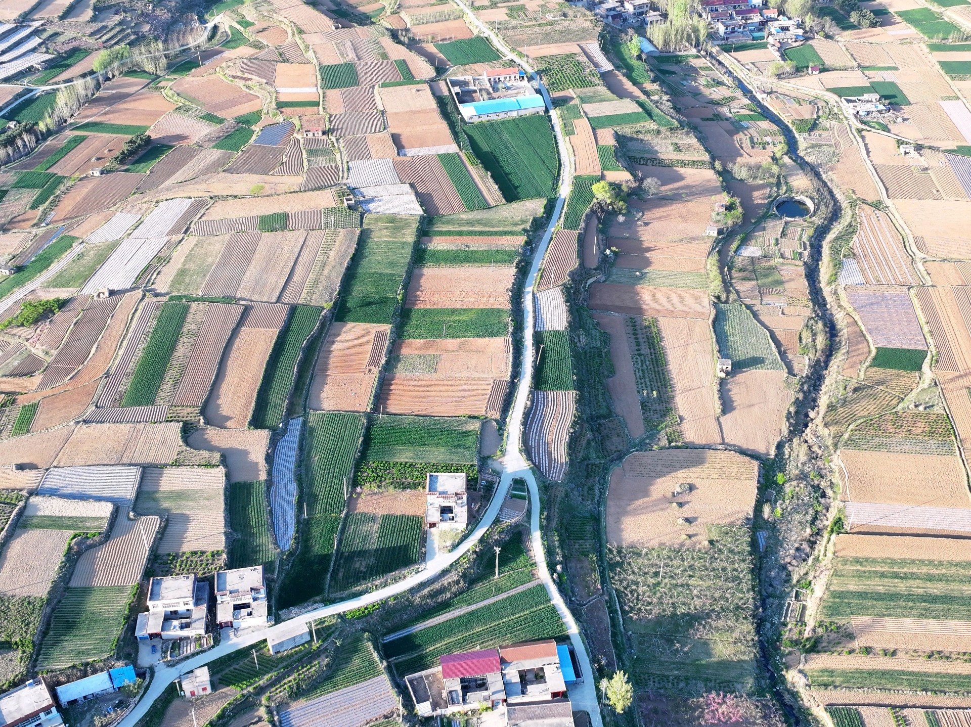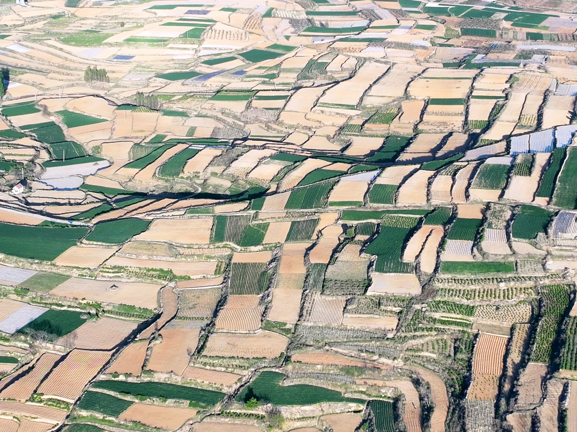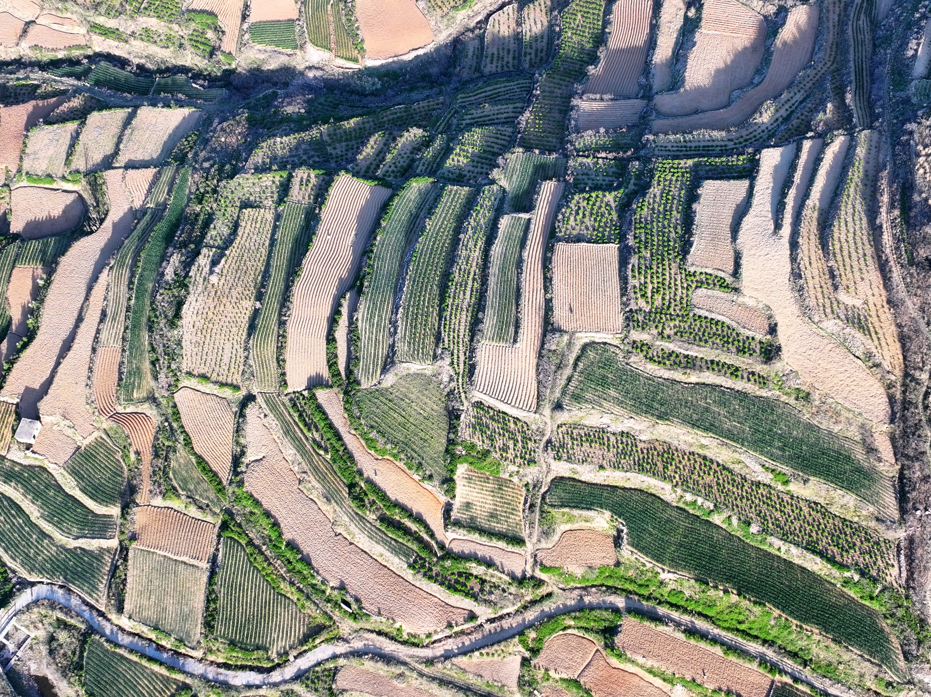 4月7日,临沂市沂蒙山梯田风景。眼下临沂市沂蒙山腹地的乡村农民正春耕播种,到处都是一派繁忙的景象。一层层梯田科学种植,麦苗青青,用地膜腹盖农作物曲线分明,科技赋能农业生产高效增收。成为沂蒙山区一幅幅亮丽的田园画卷。王东元 摄影